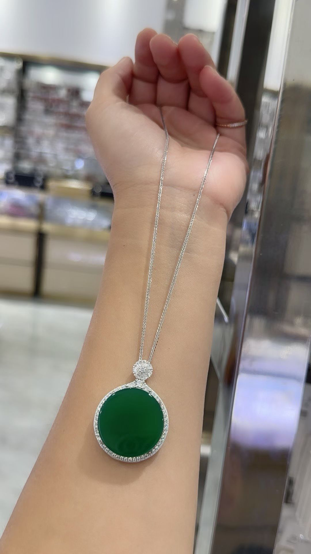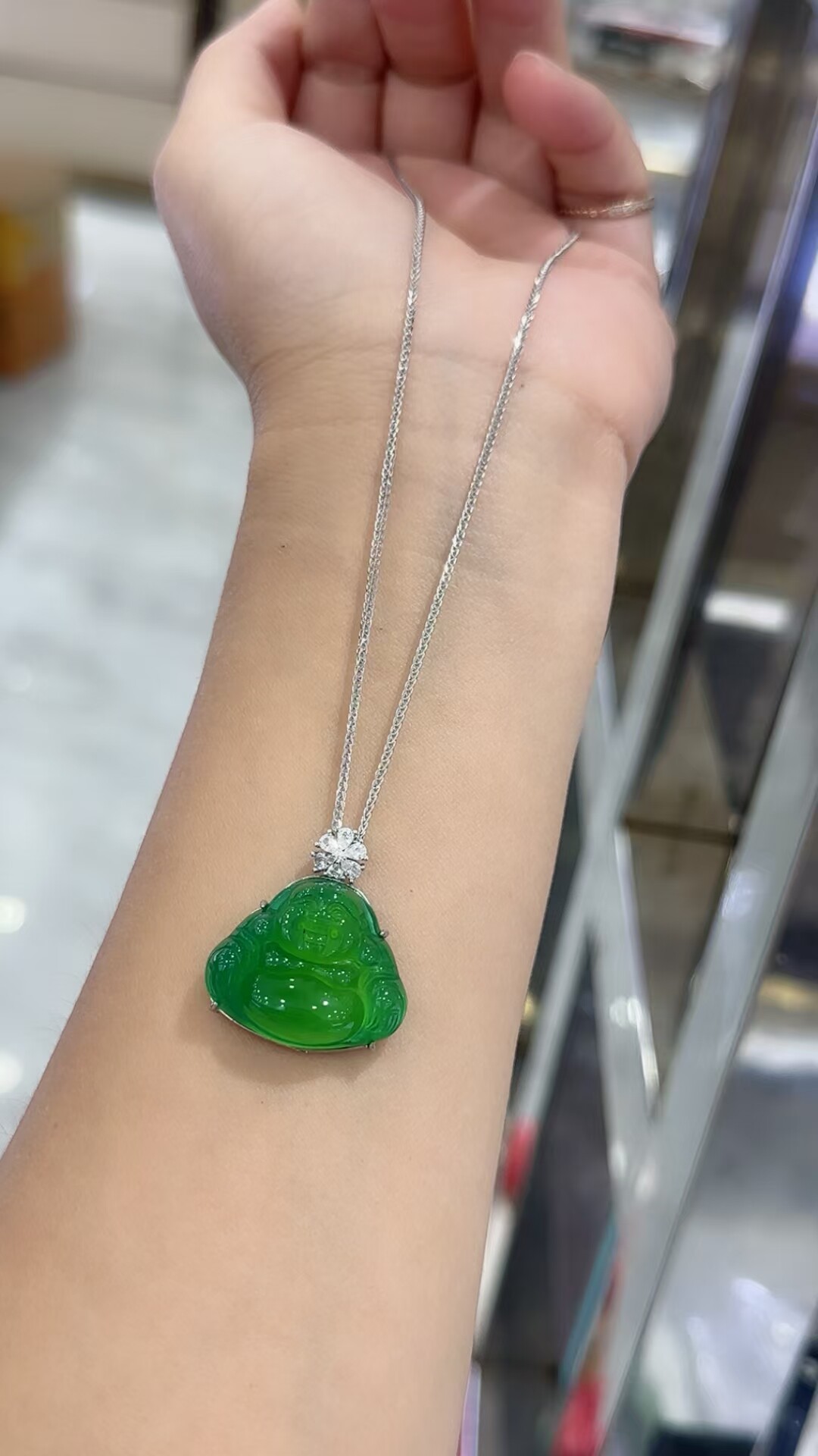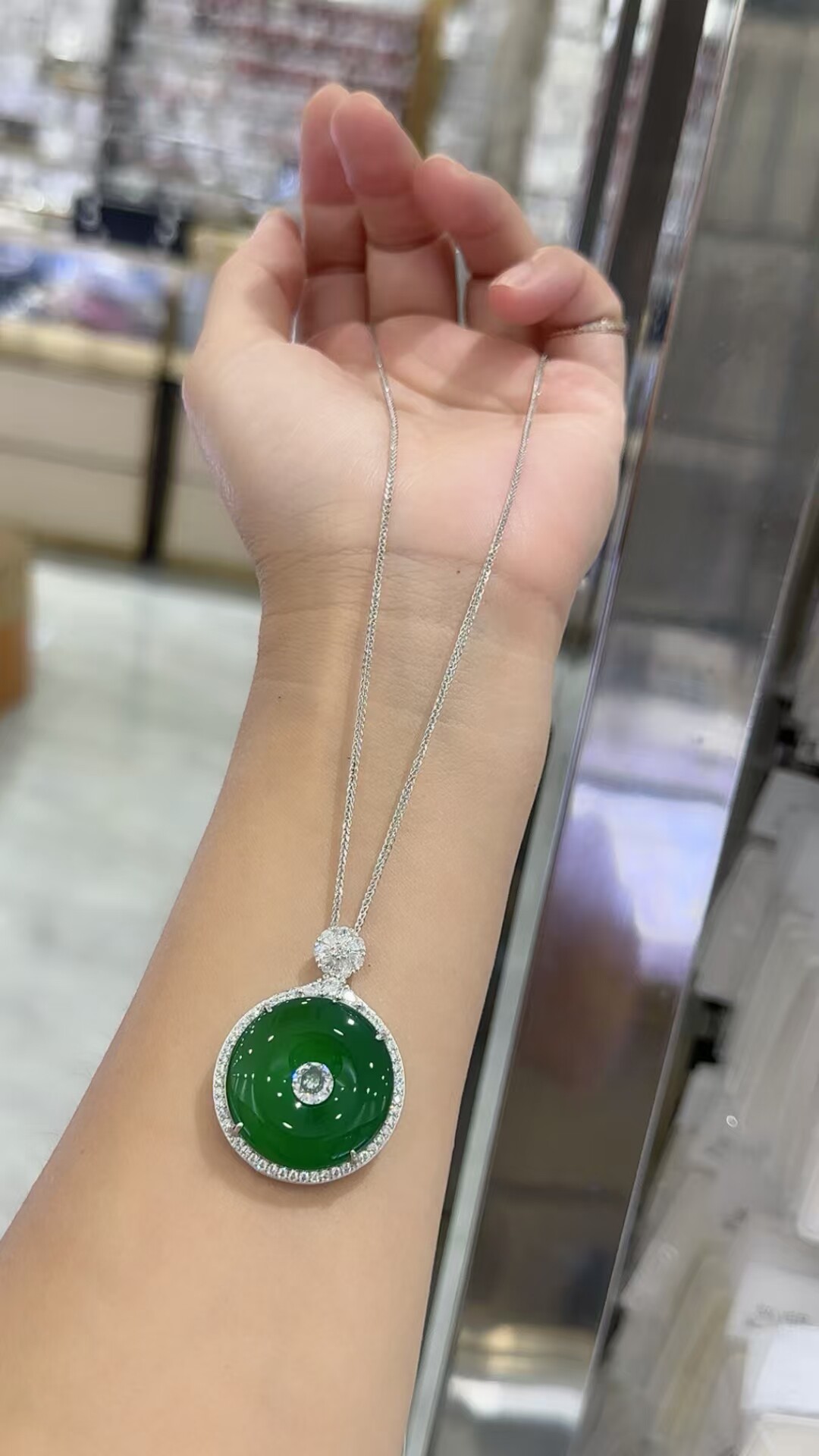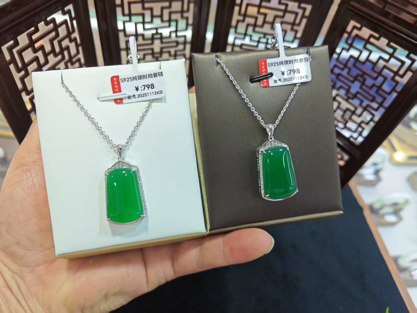 S925 Sterling Silver Inlaid with Natural Green Chalcedony Peace Amulet Ice Type Sun Green Pendant Women's Necklace Birthday Gift
