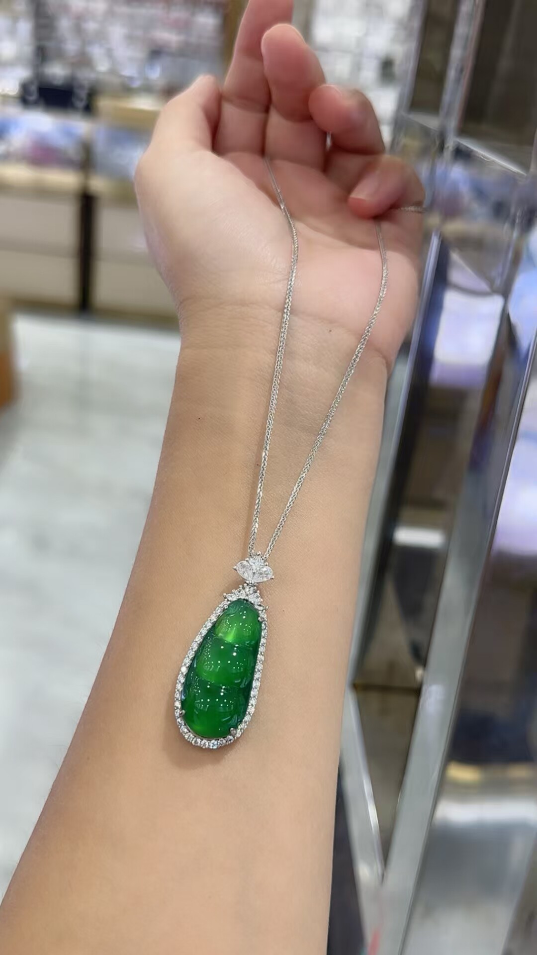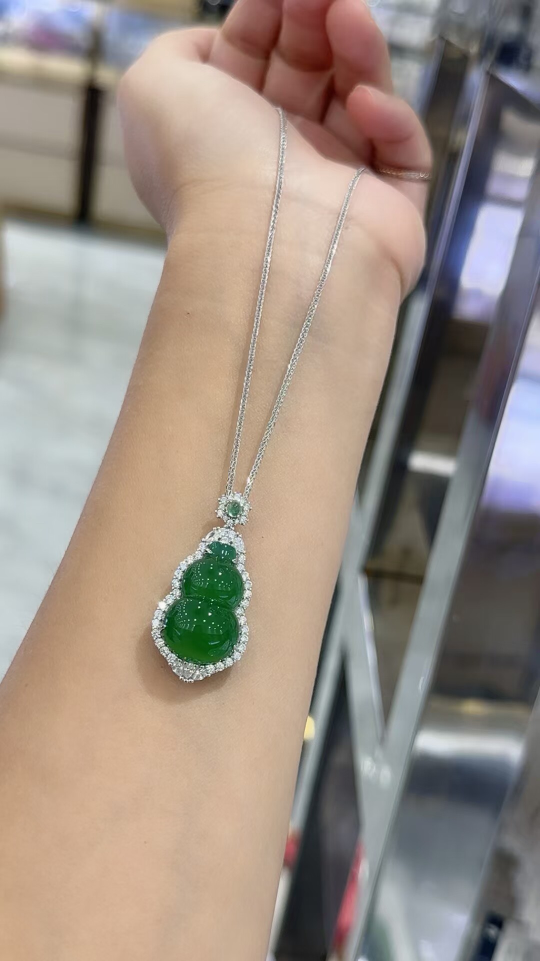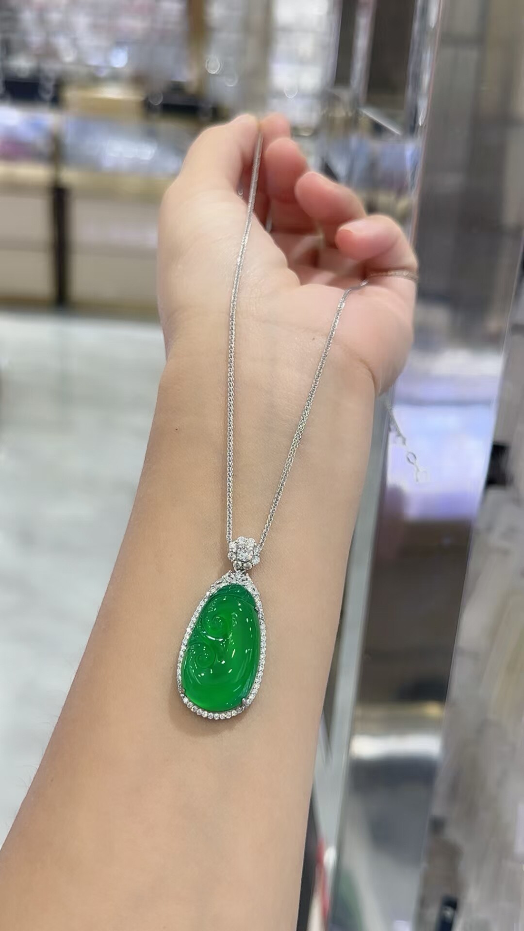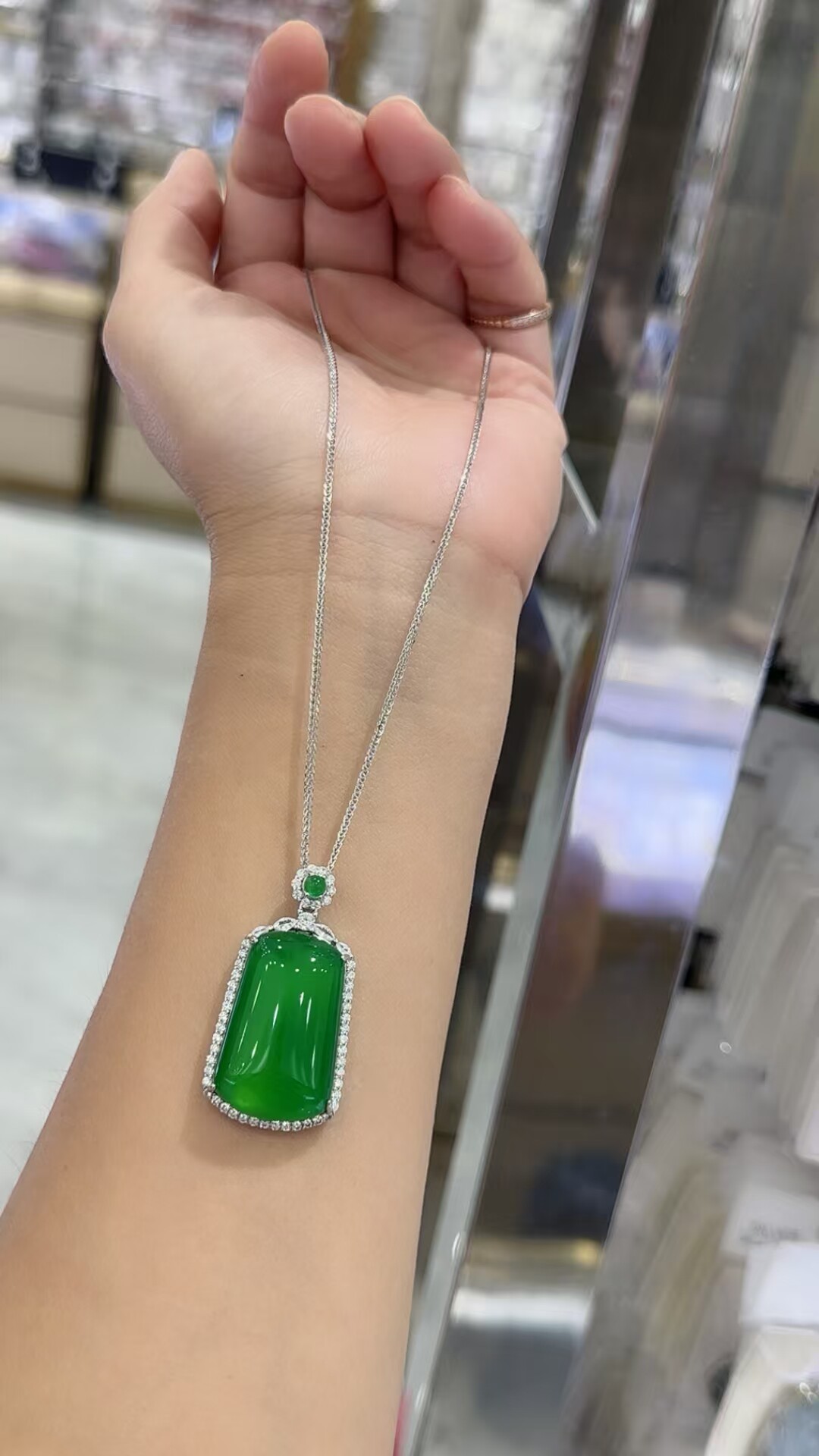 S925 Sterling Silver Inlaid with Natural Green Chalcedony Peace Amulet Ice Type Sun Green Pendant Women's Necklace Birthday Gift