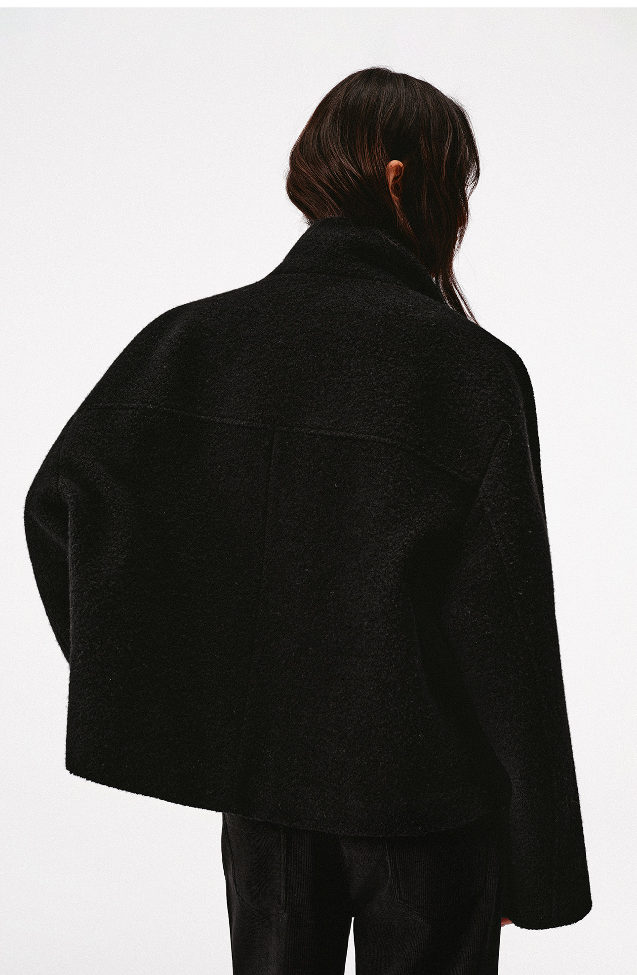 Asomesome Wool Stand-Up Collar Short Black Woolen Outwear for Women in Autumn and Winter Thickeneded Windproof and Warm Silhouette Outwear