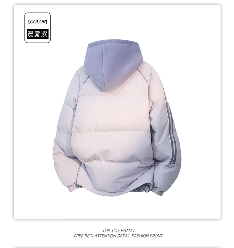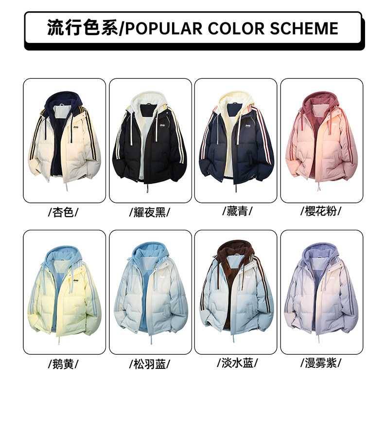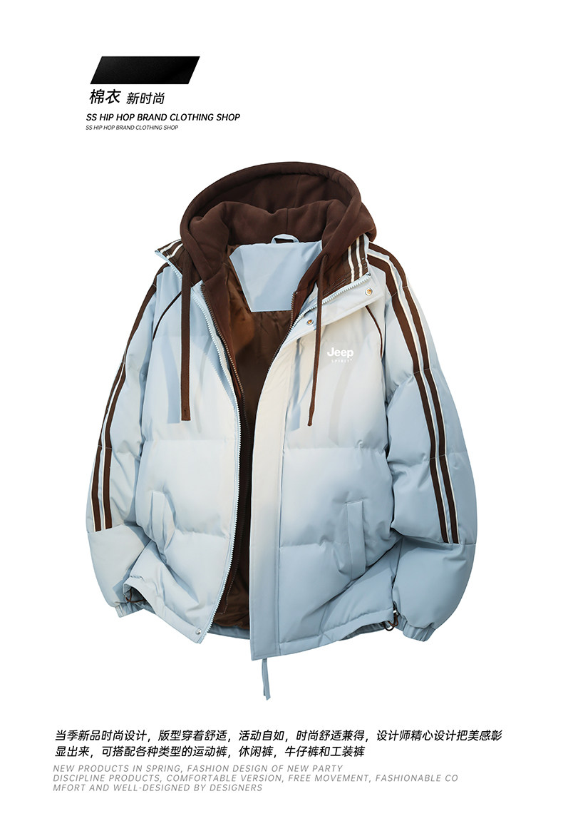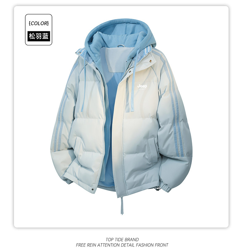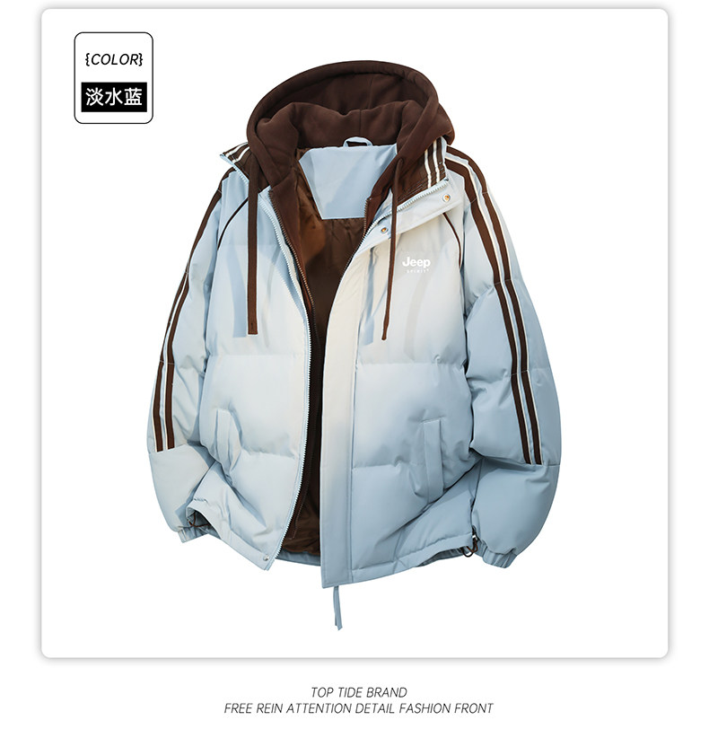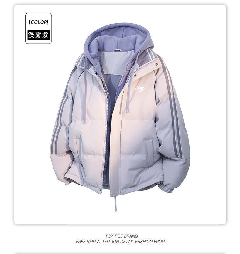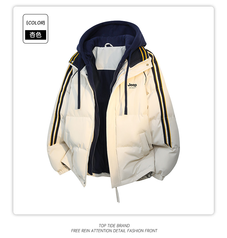 Jeep Pink down Cotton Jacket for Women, Winter 2025 New Thickened Striped Cotton Coat, Fake Two-Piece Hooded Cotton Jacket
