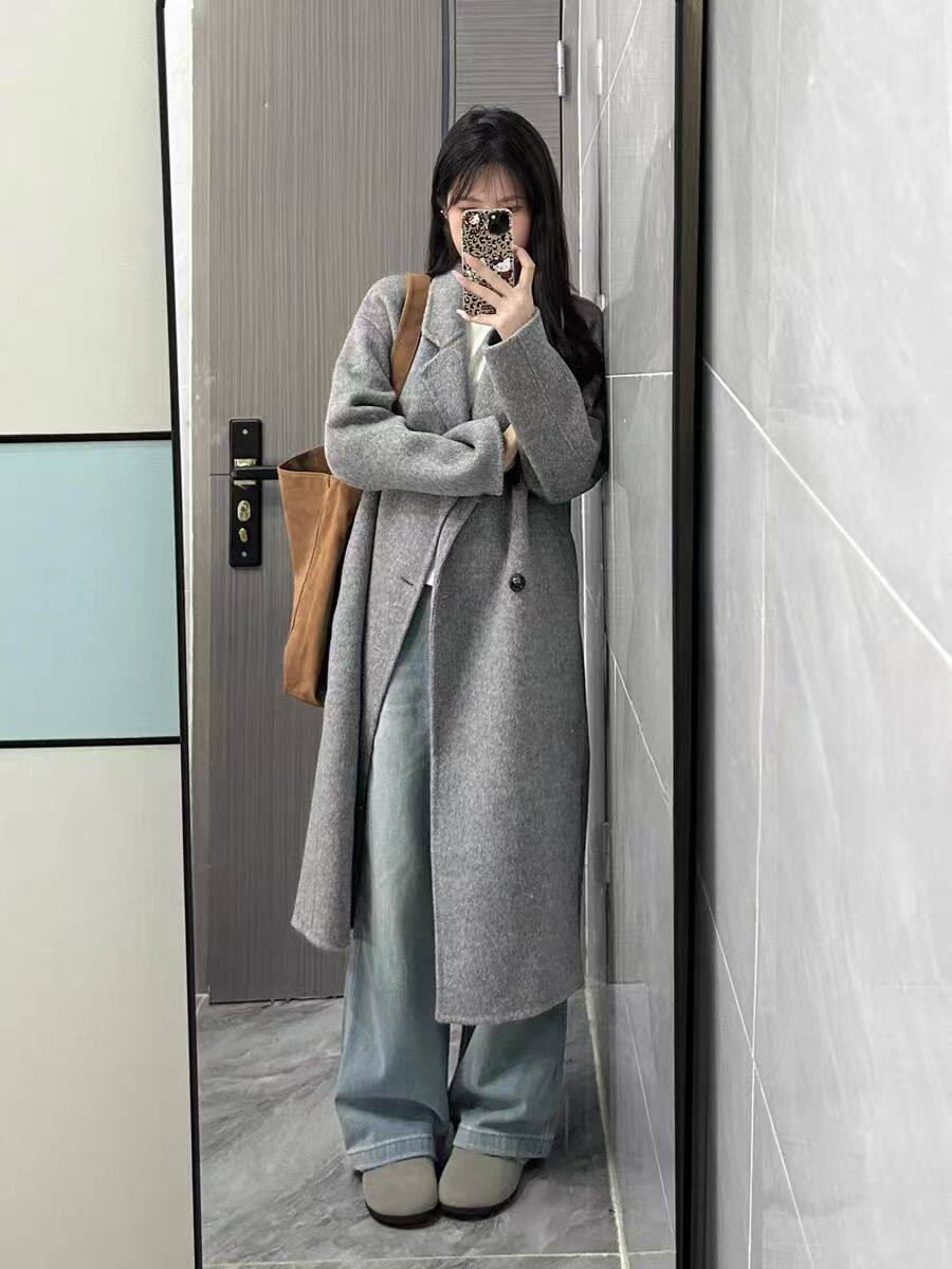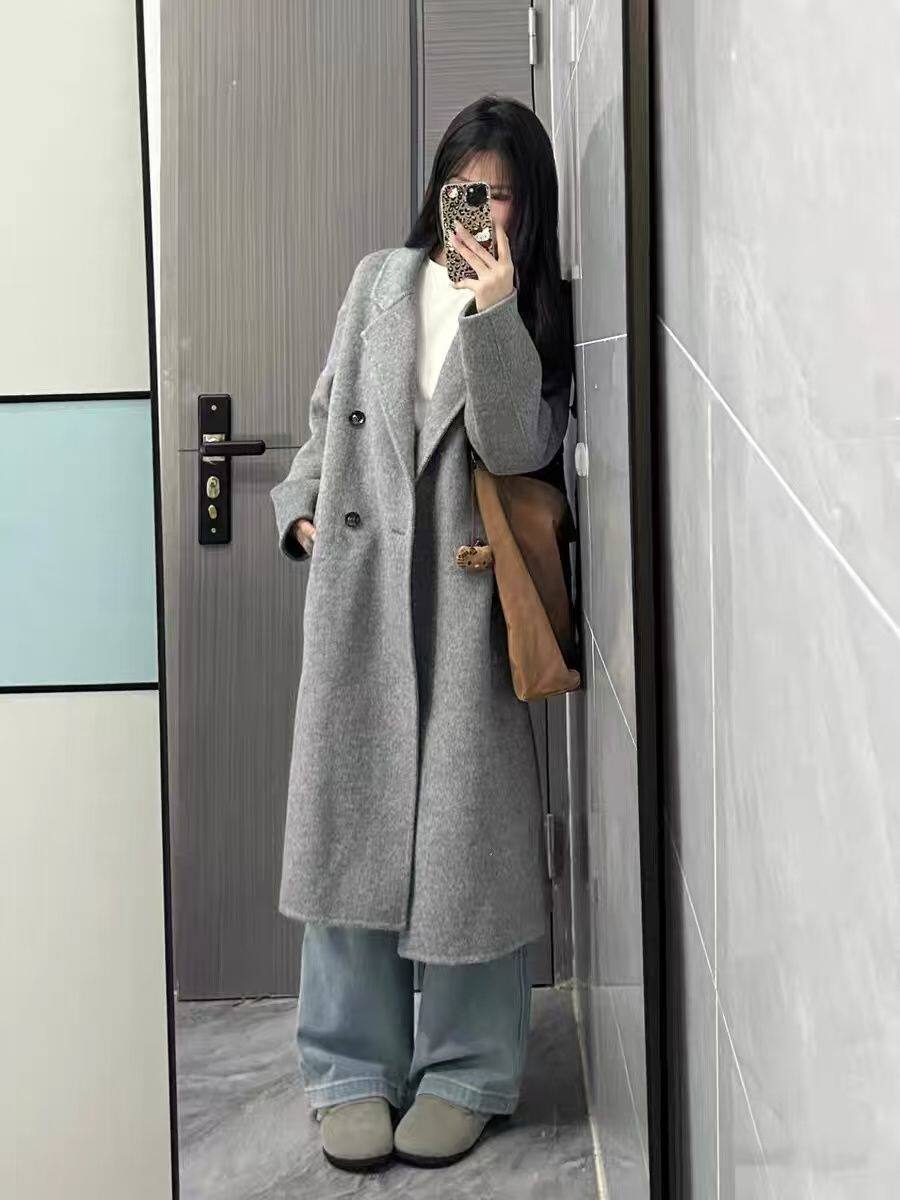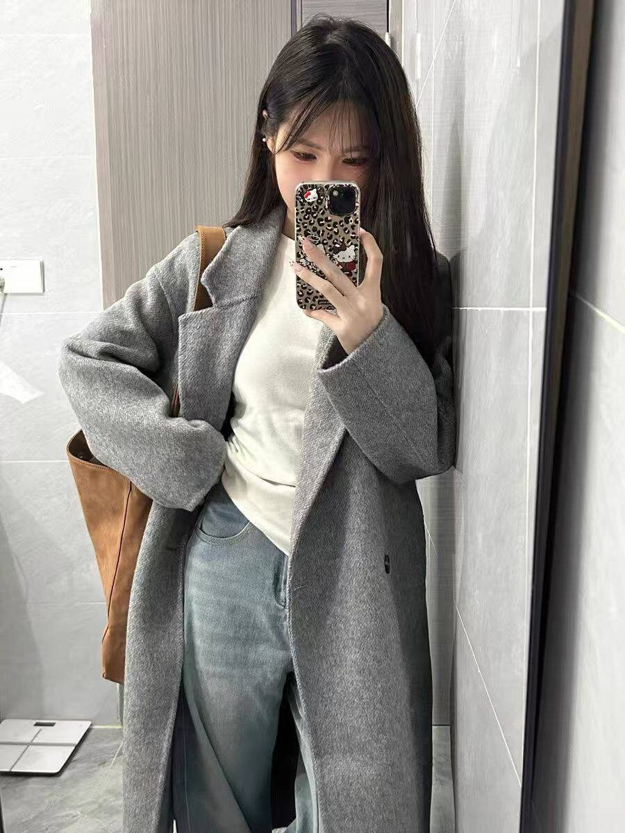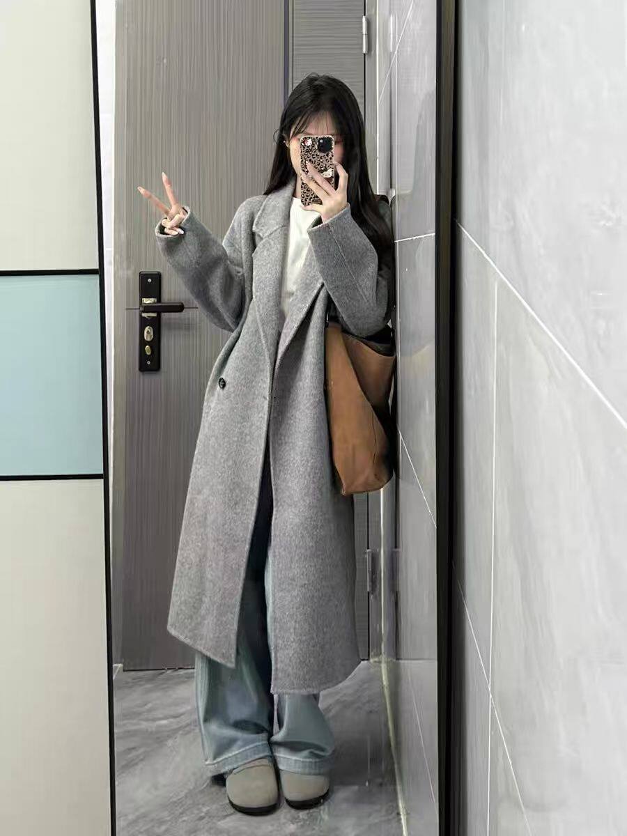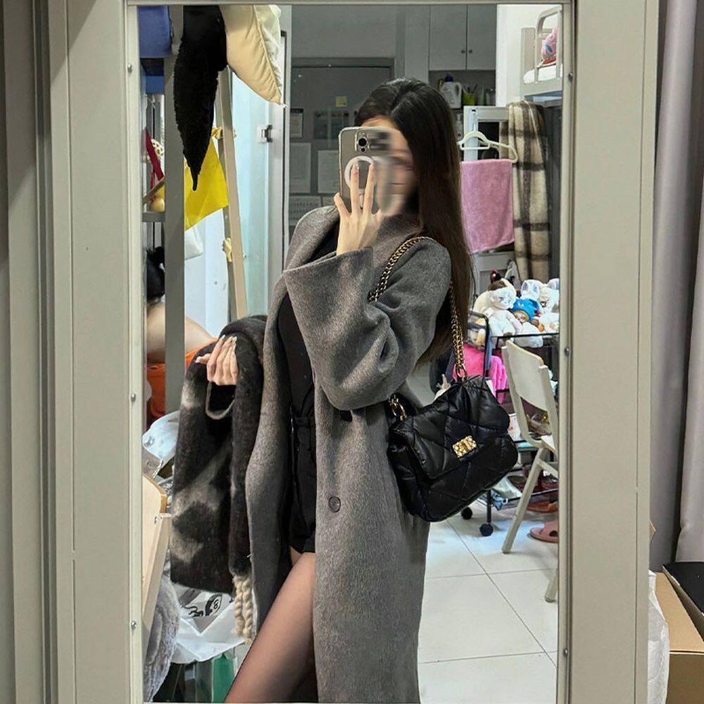 Sweet Style Korean Style Woolen Coat for Women, New Autumn and Winter Korean Style Loose and High-End Long Gray Coat