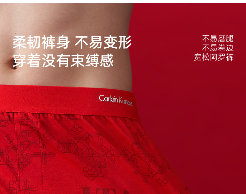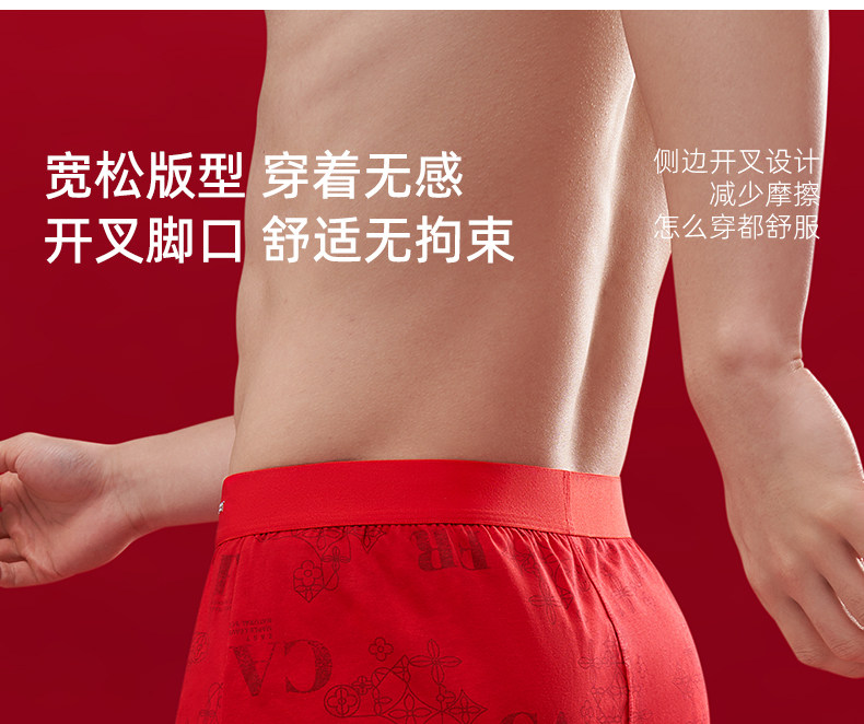 Carbinkoneer Men's Underwear for the Year of the Zodiac, Men's Pure Cotton Loose-Fitting Red Boxer Shorts for Home Use