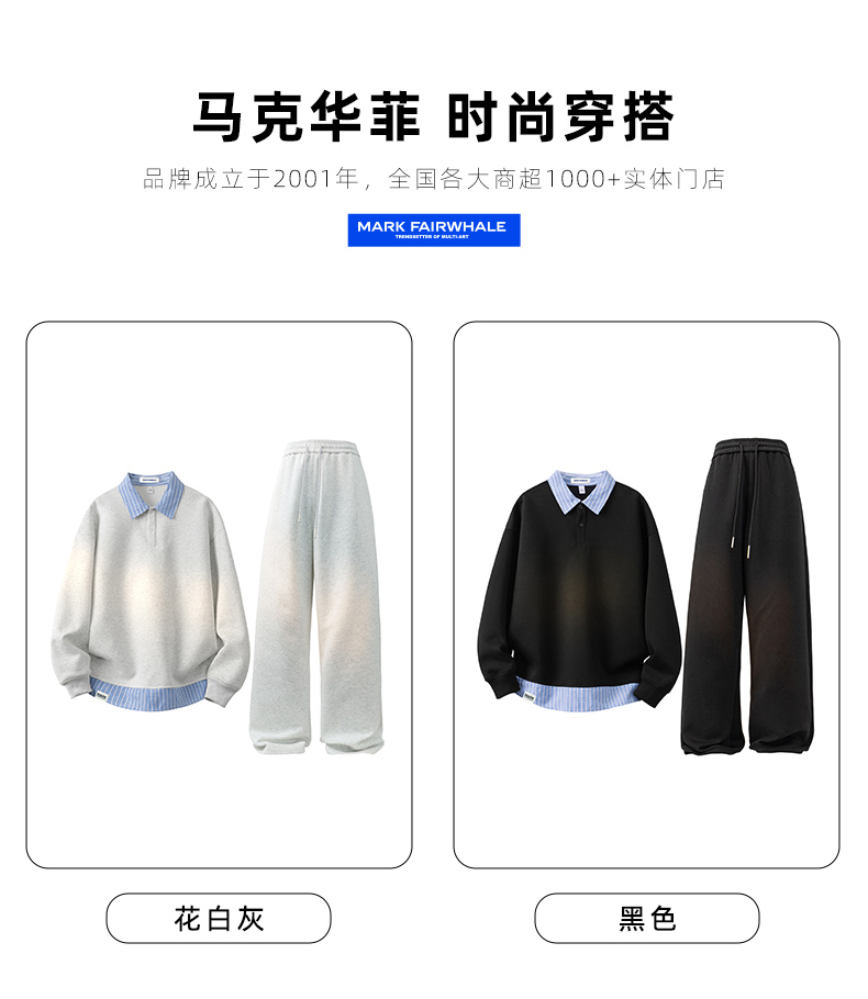 Mark Hua Fei American-Style Versatile Two-Piece Shirt-Collar Sweatshirt Set for Men, 2025 Autumn and Winter Casual Color-Blocked Sportswear
