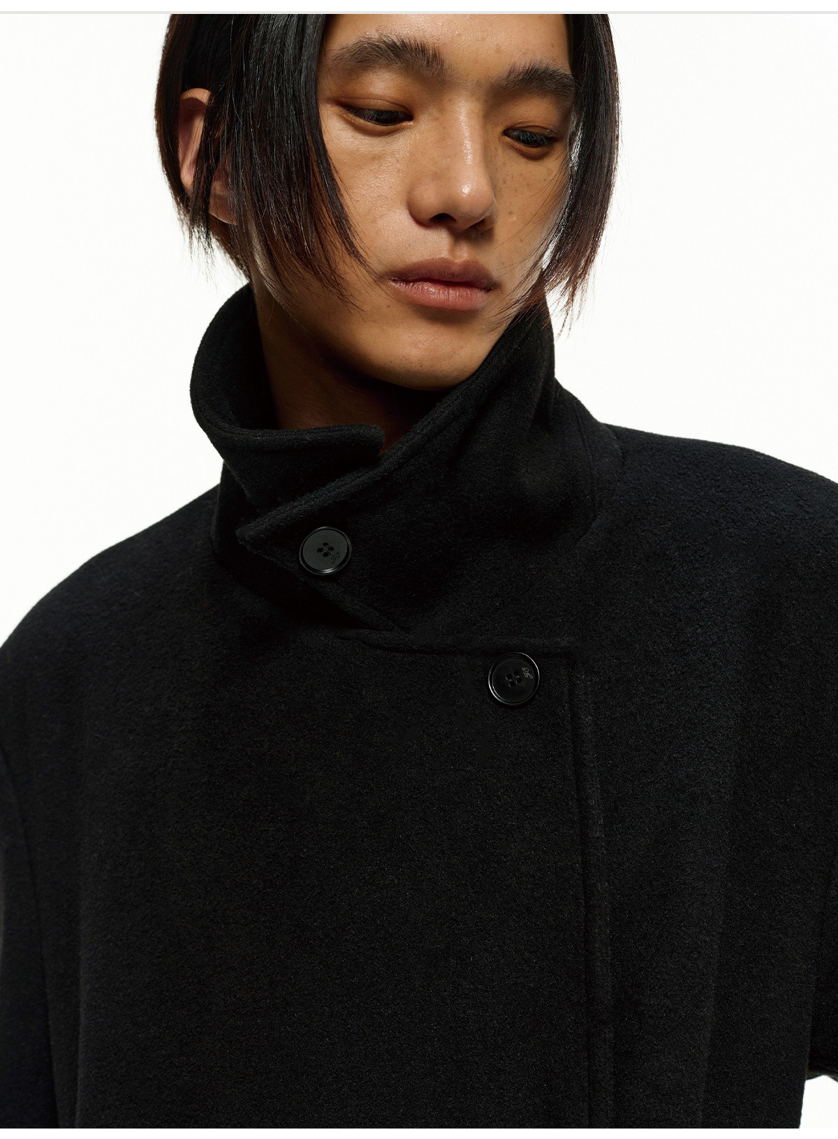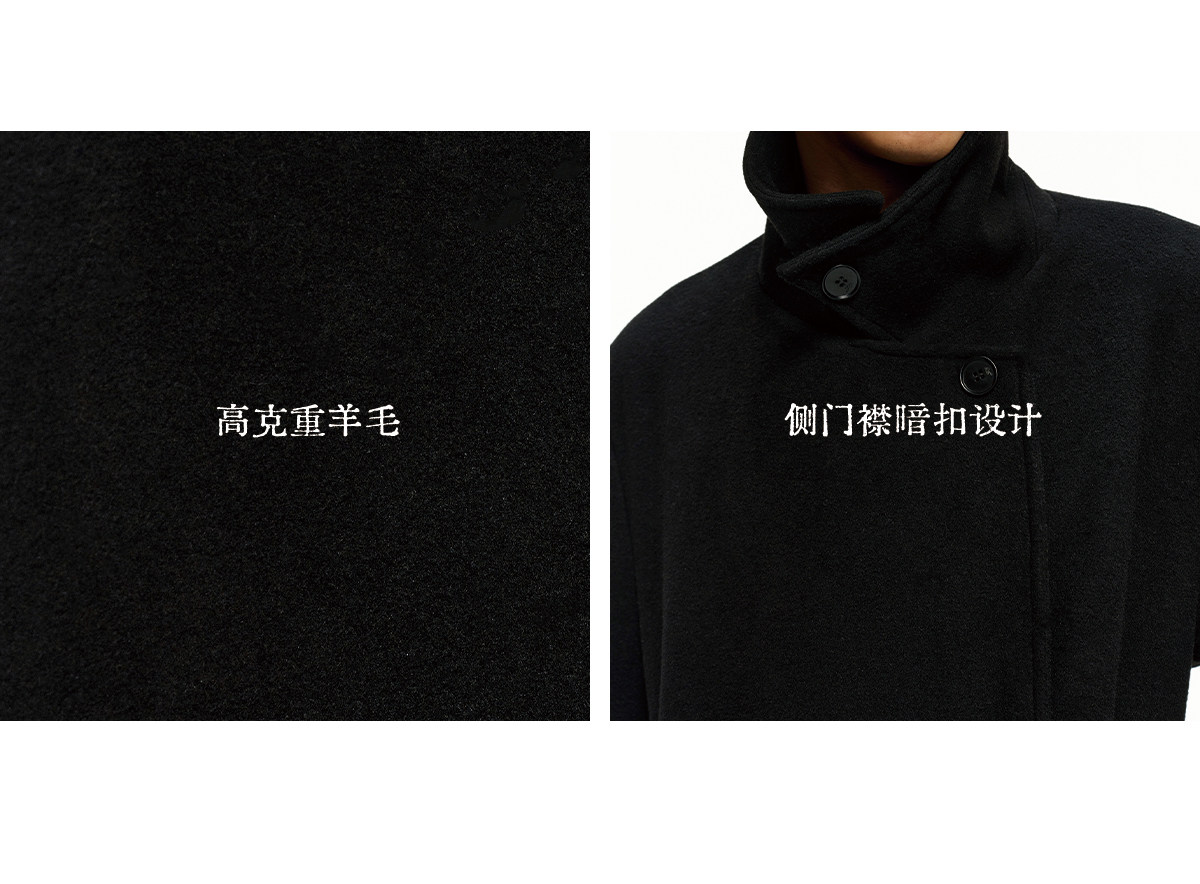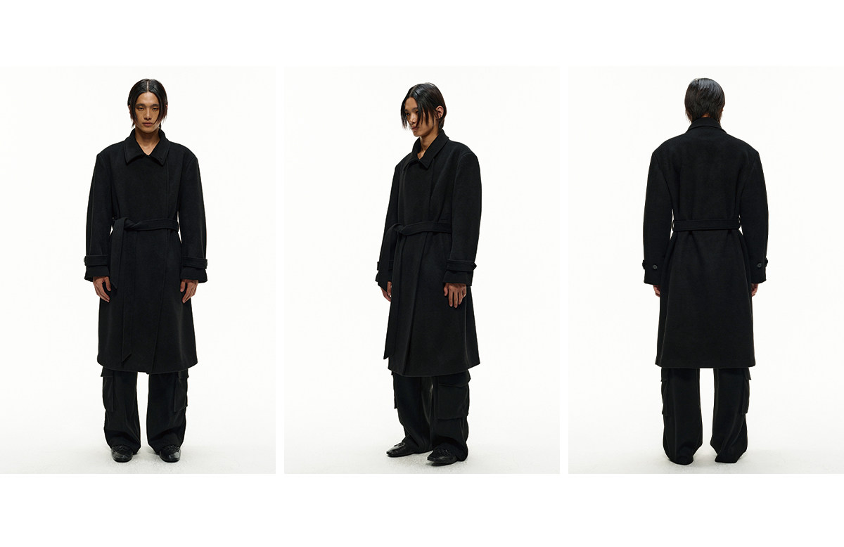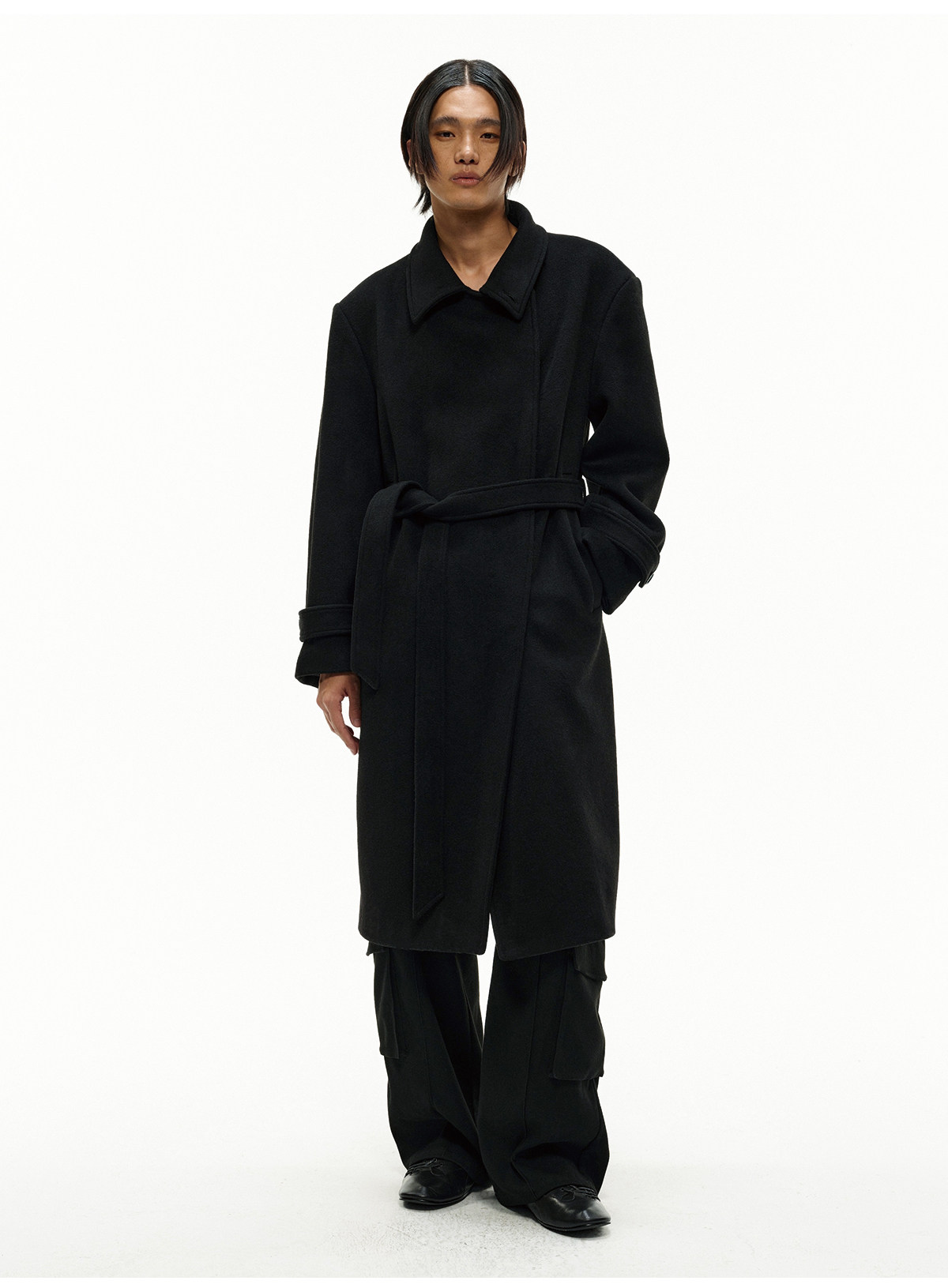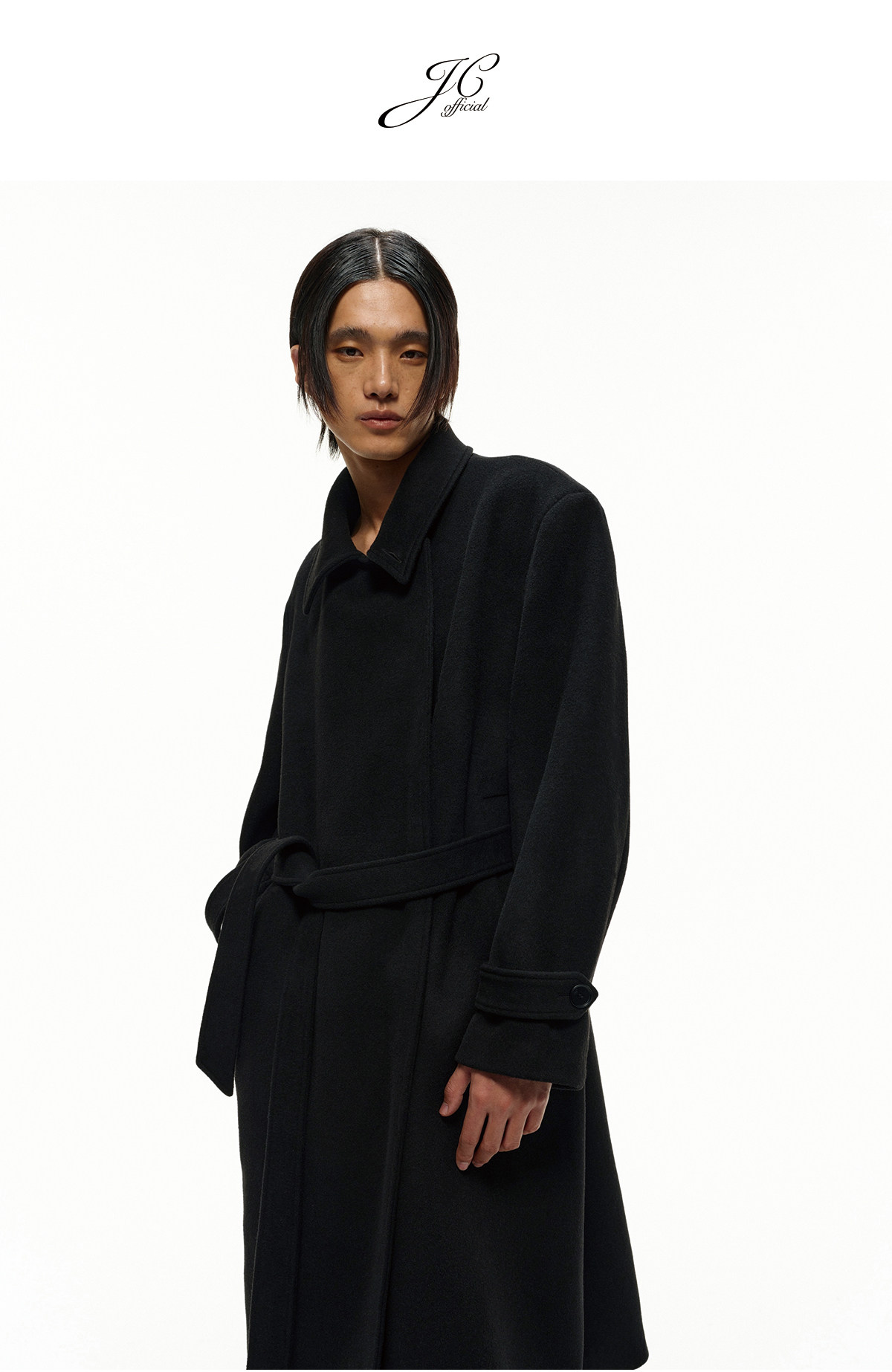 Jcaesar Lace-Up Coat, Regular Shoulder Lace-Up Coat, High-Weight Wool, Side Placket with Hidden Buttons, Fitted