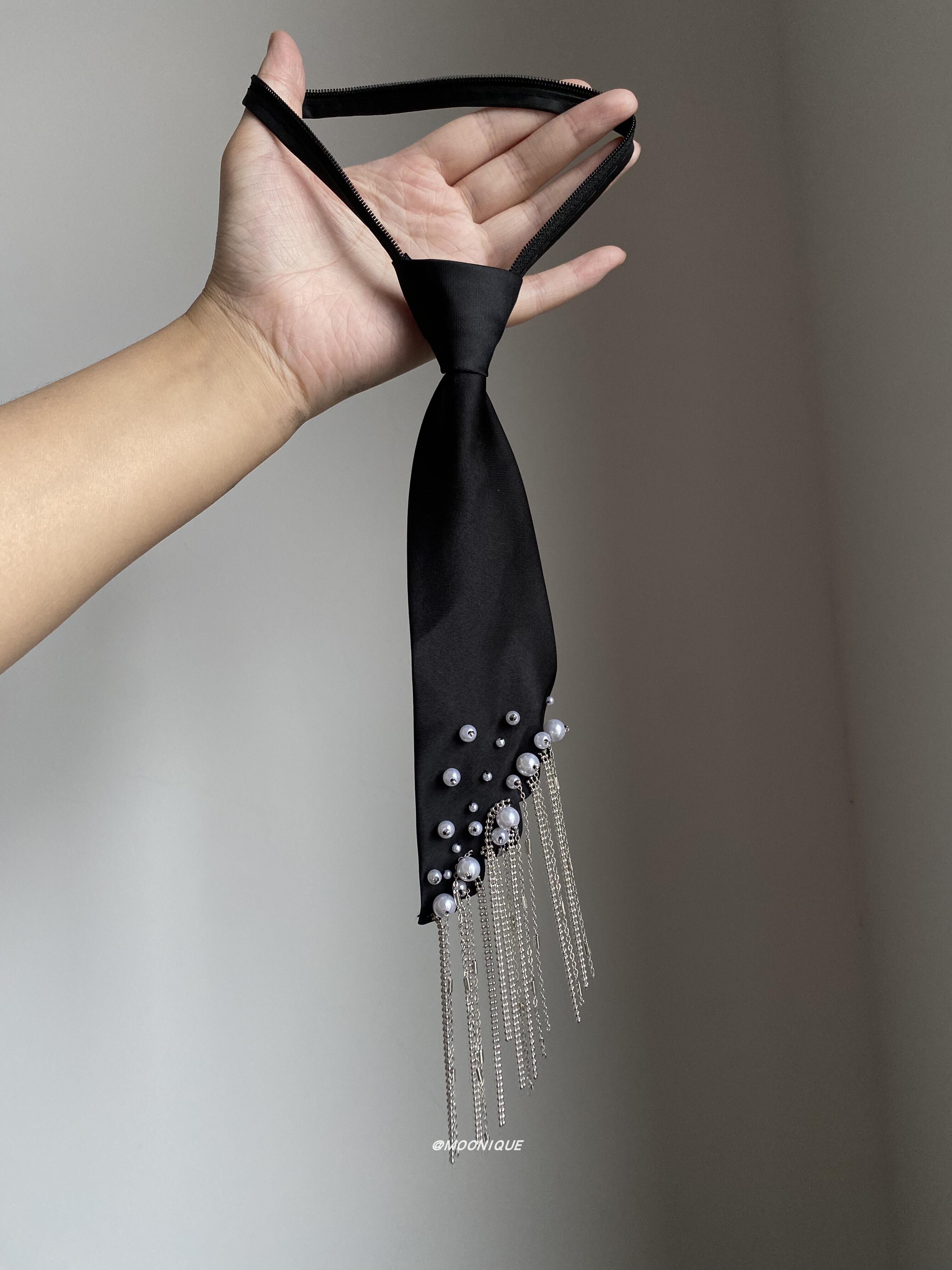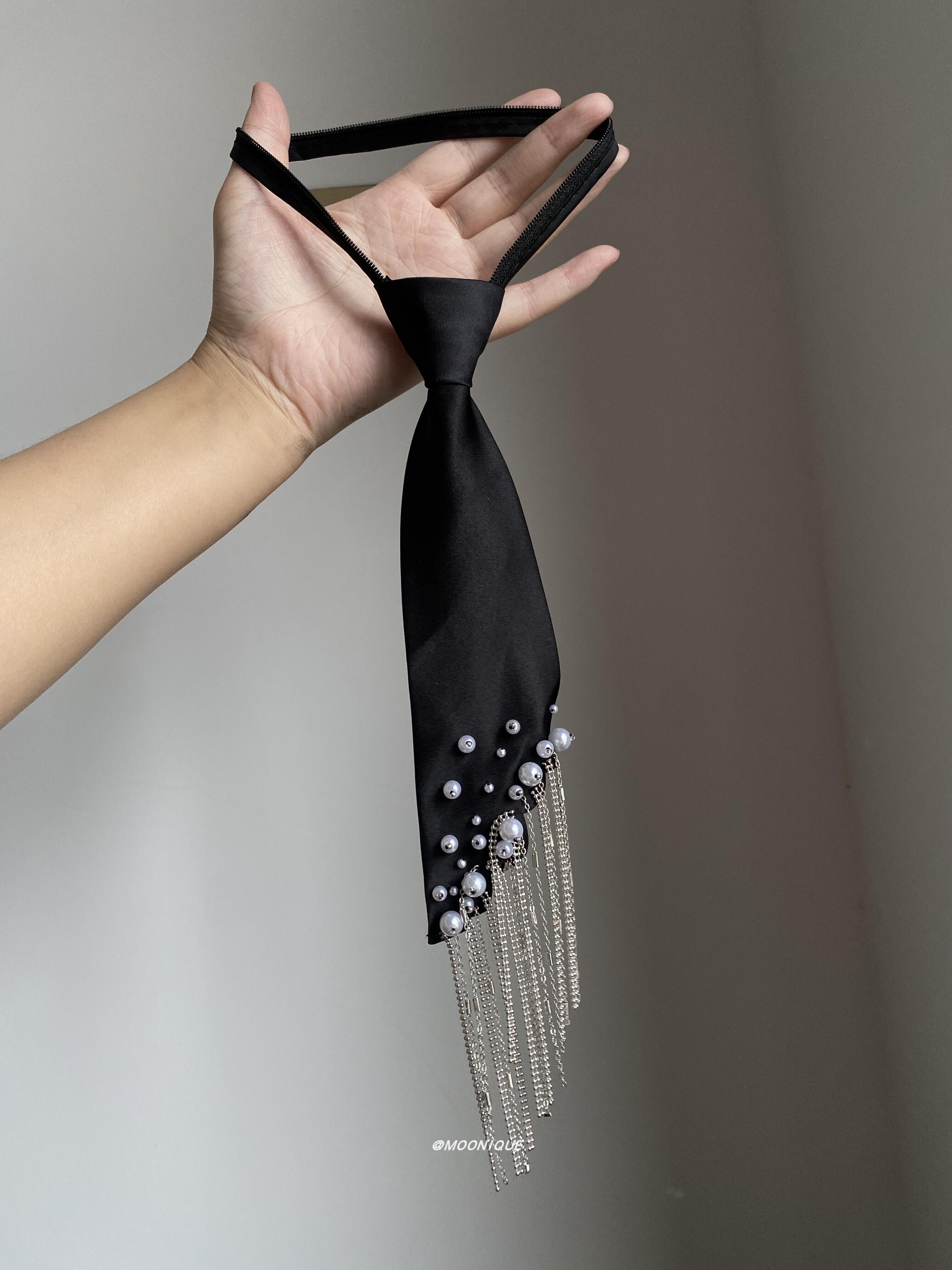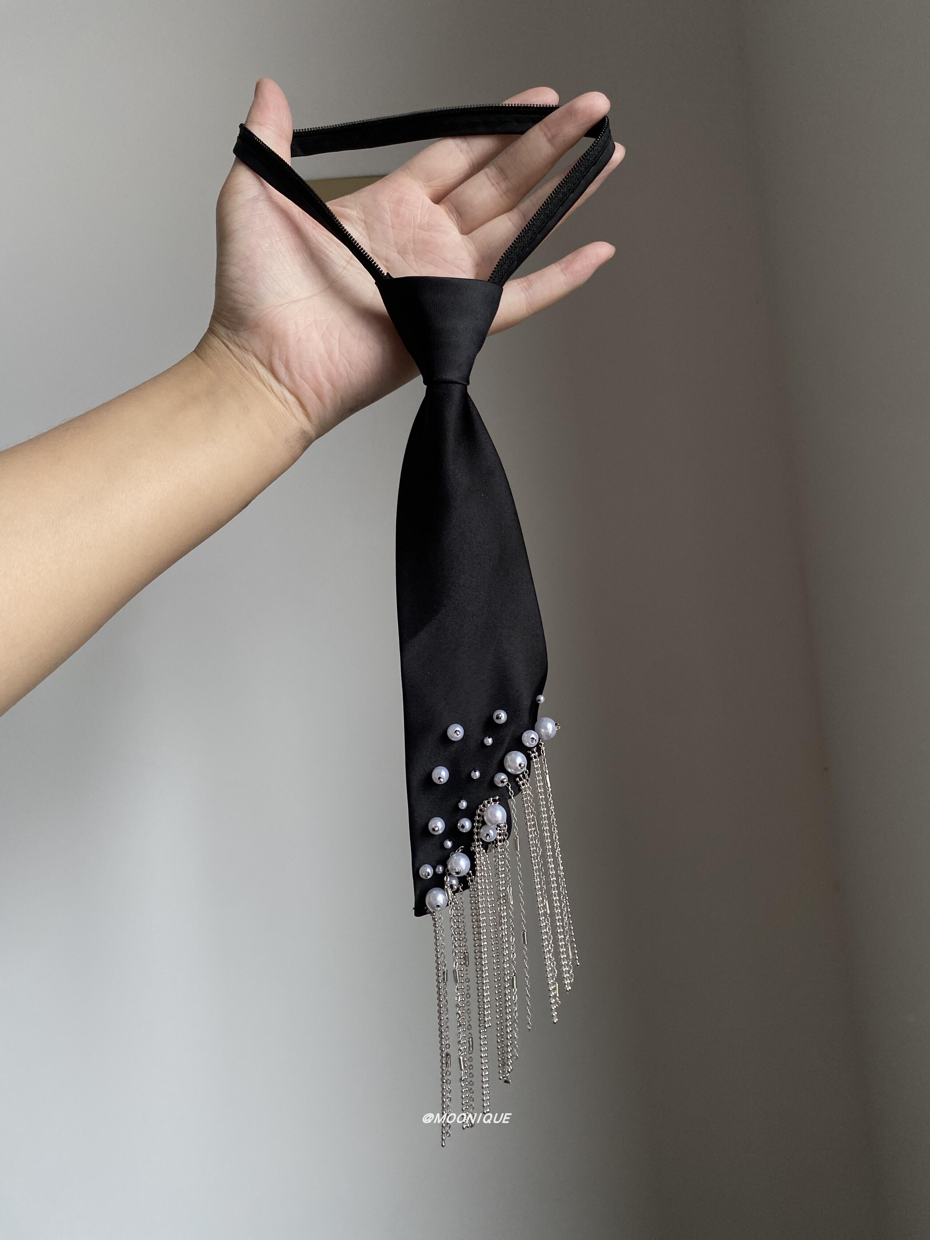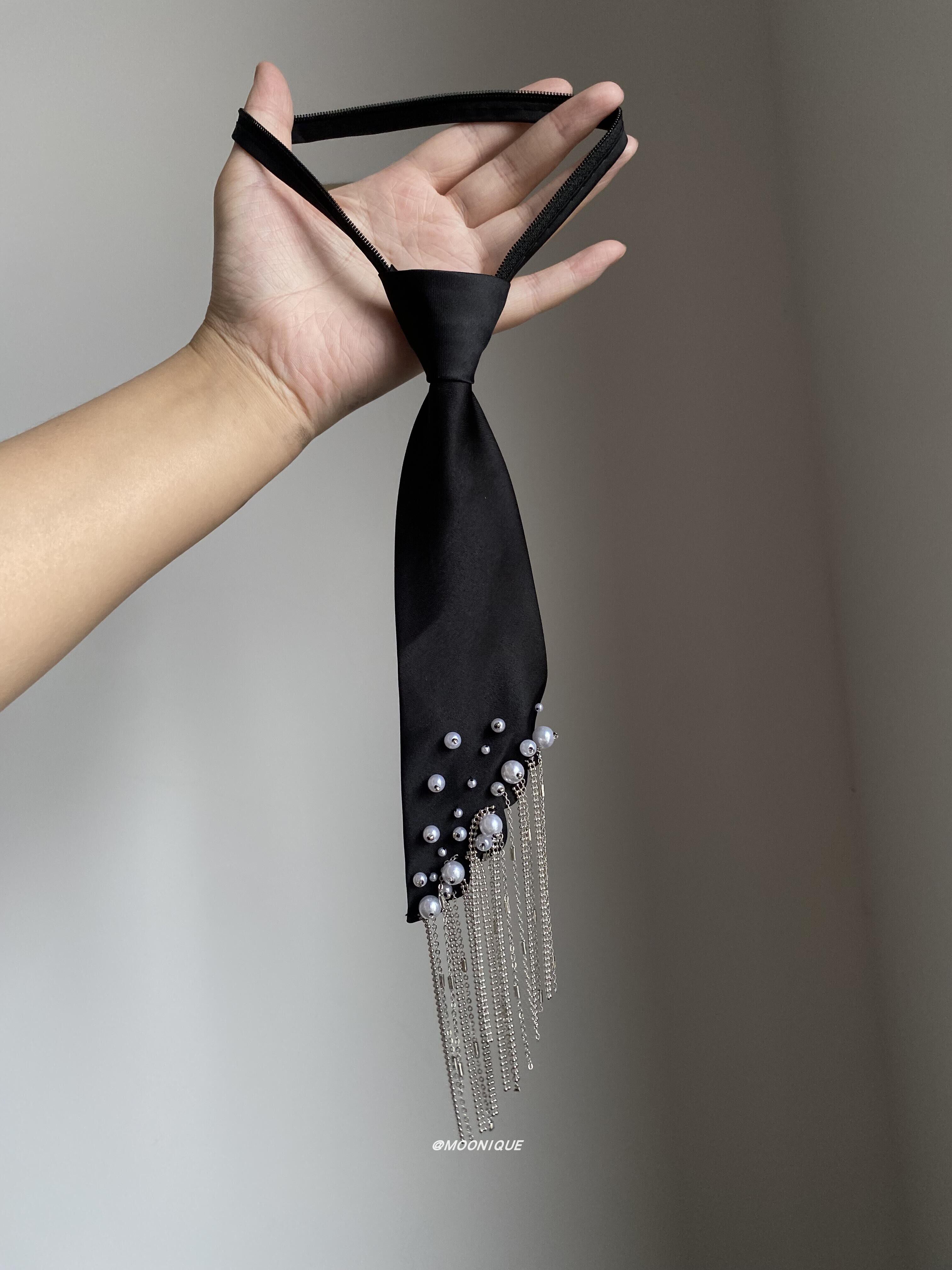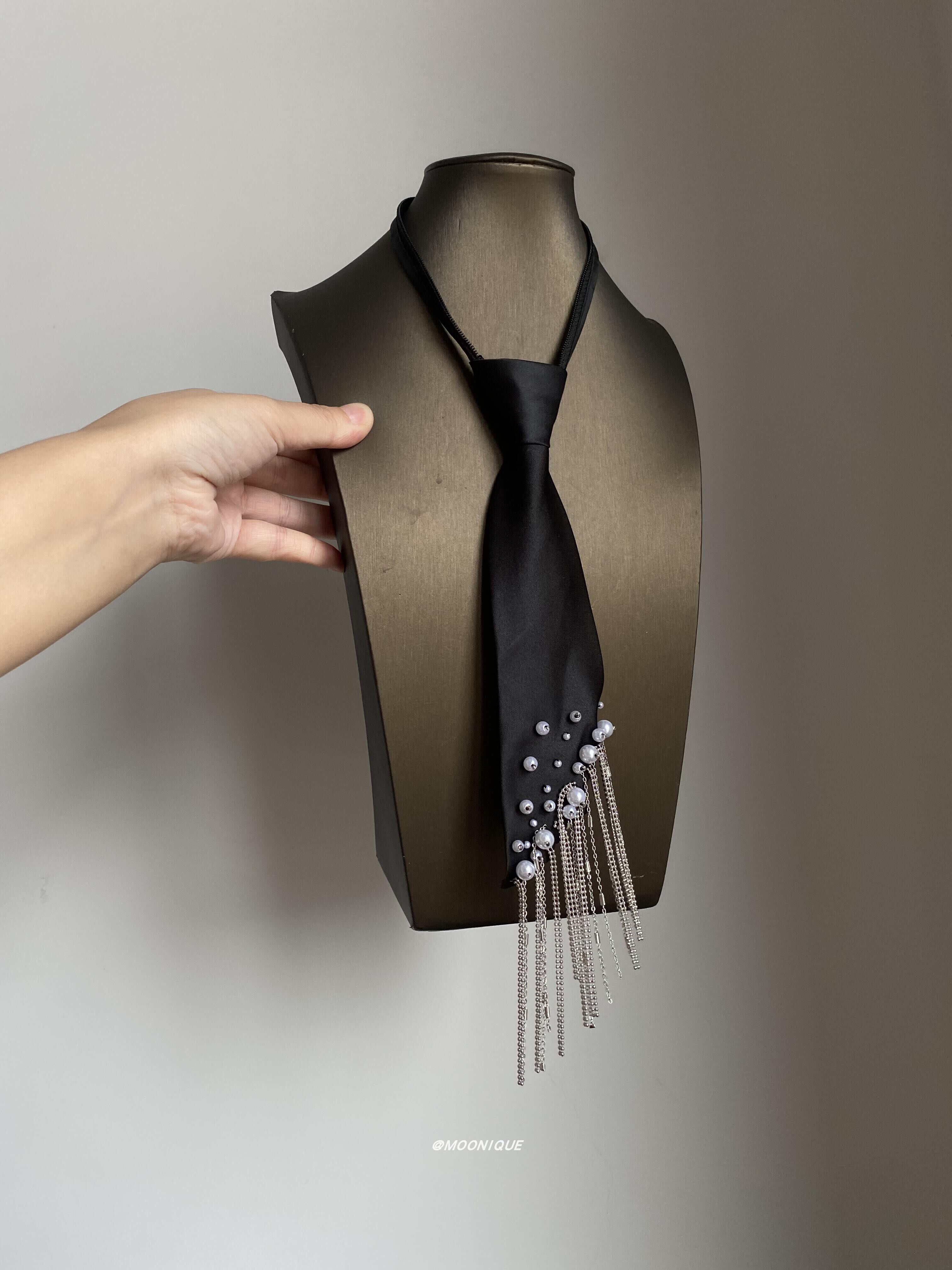 High-End 2026 Heavy-Duty Design Pearl Tassel Tie for Women, Korean Style Rhinestone Lazy Tie, No Need to Tie, Suitable for Pairing with Shirts