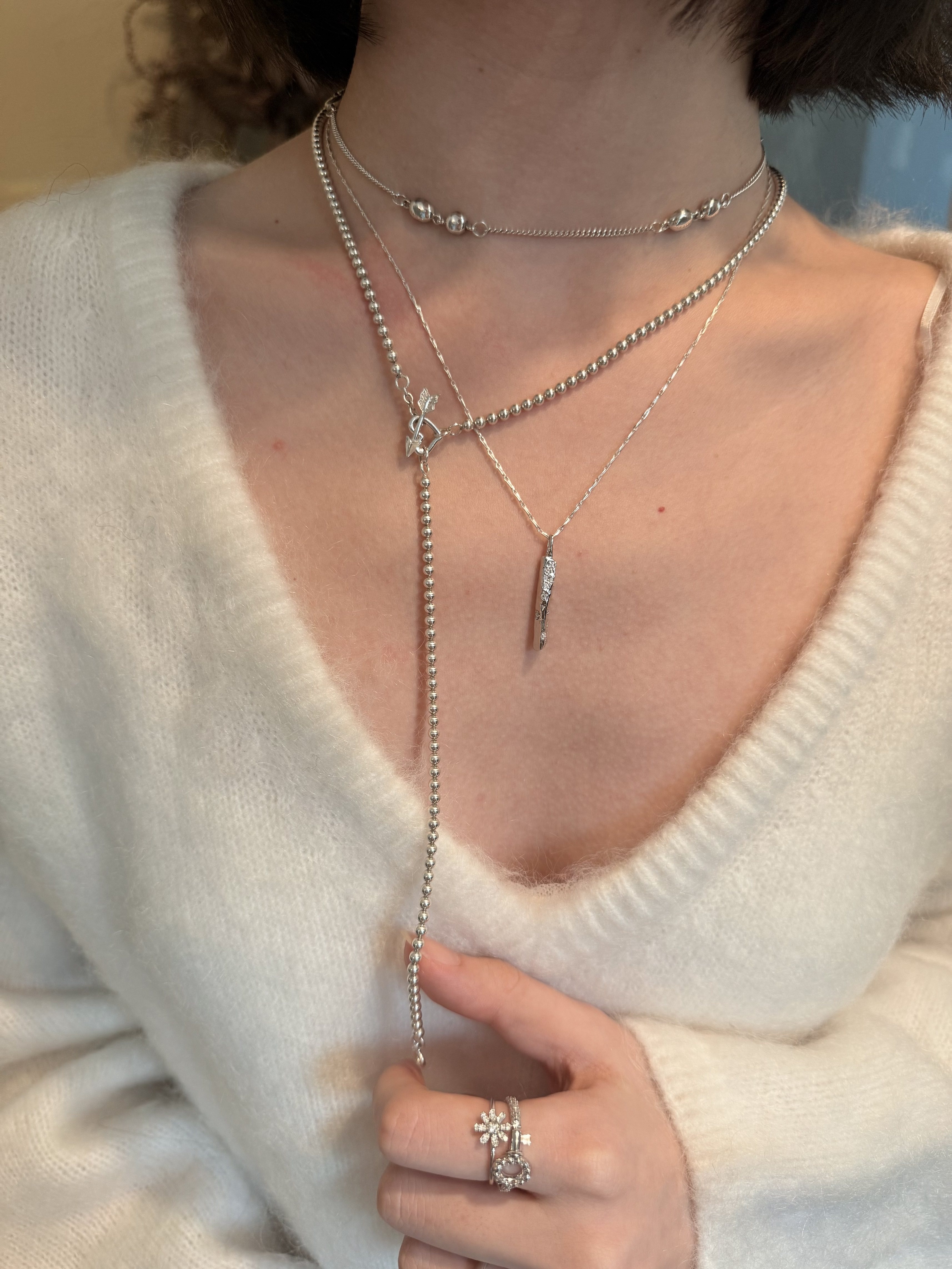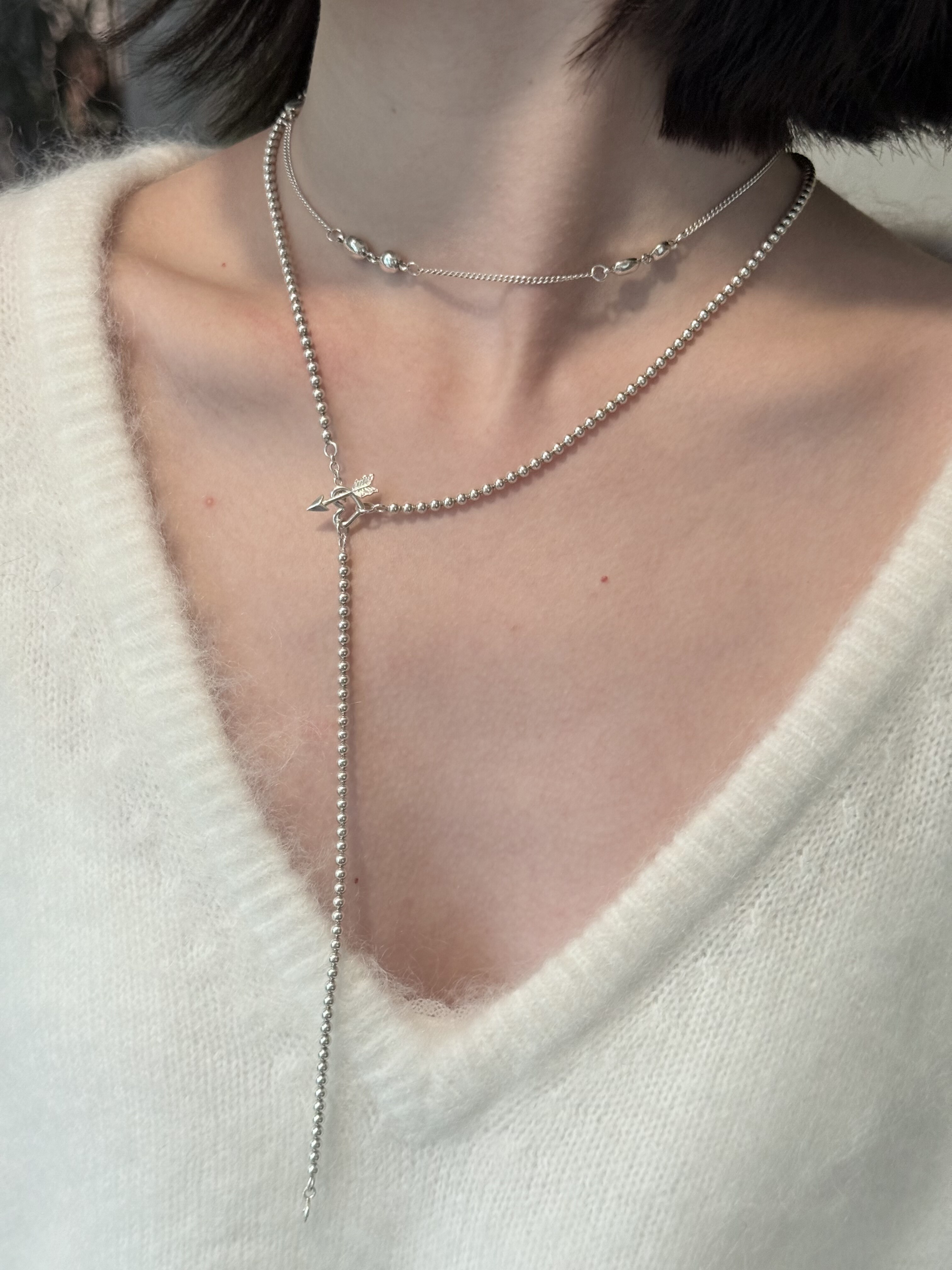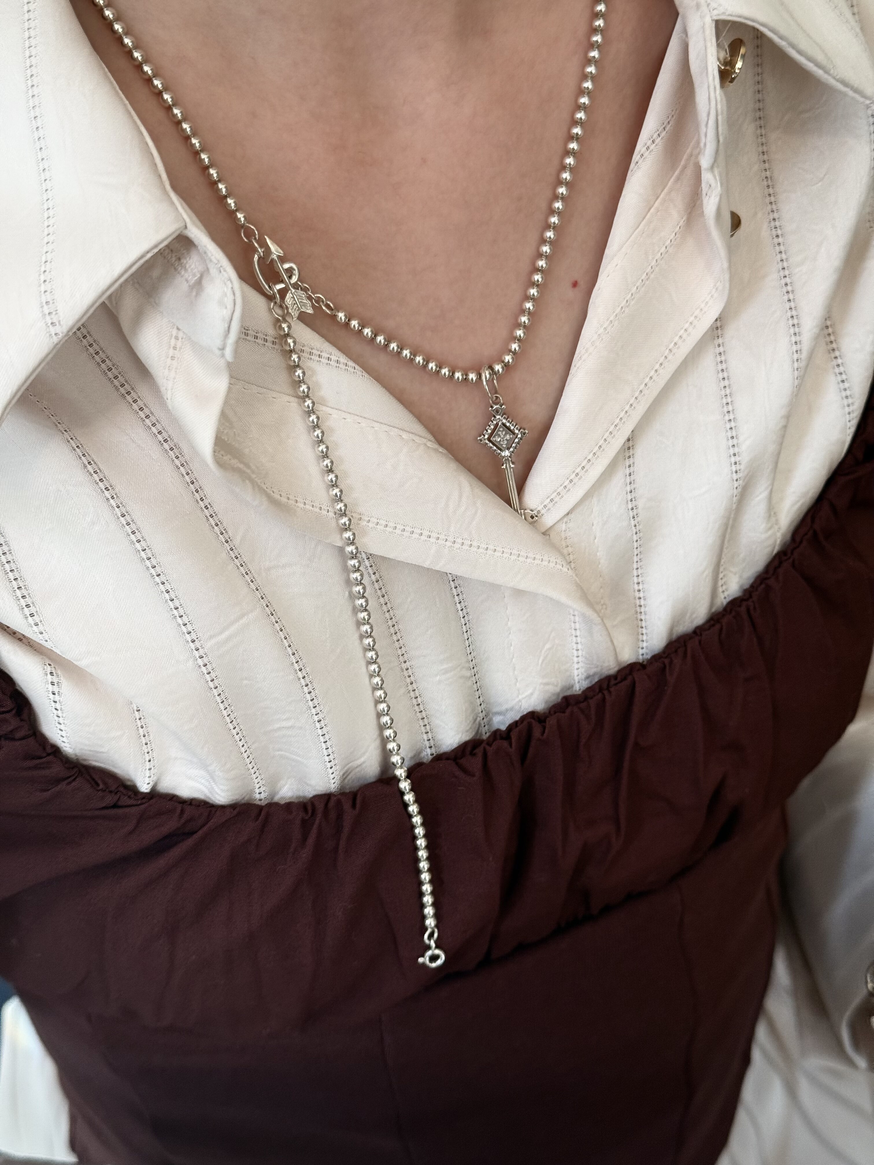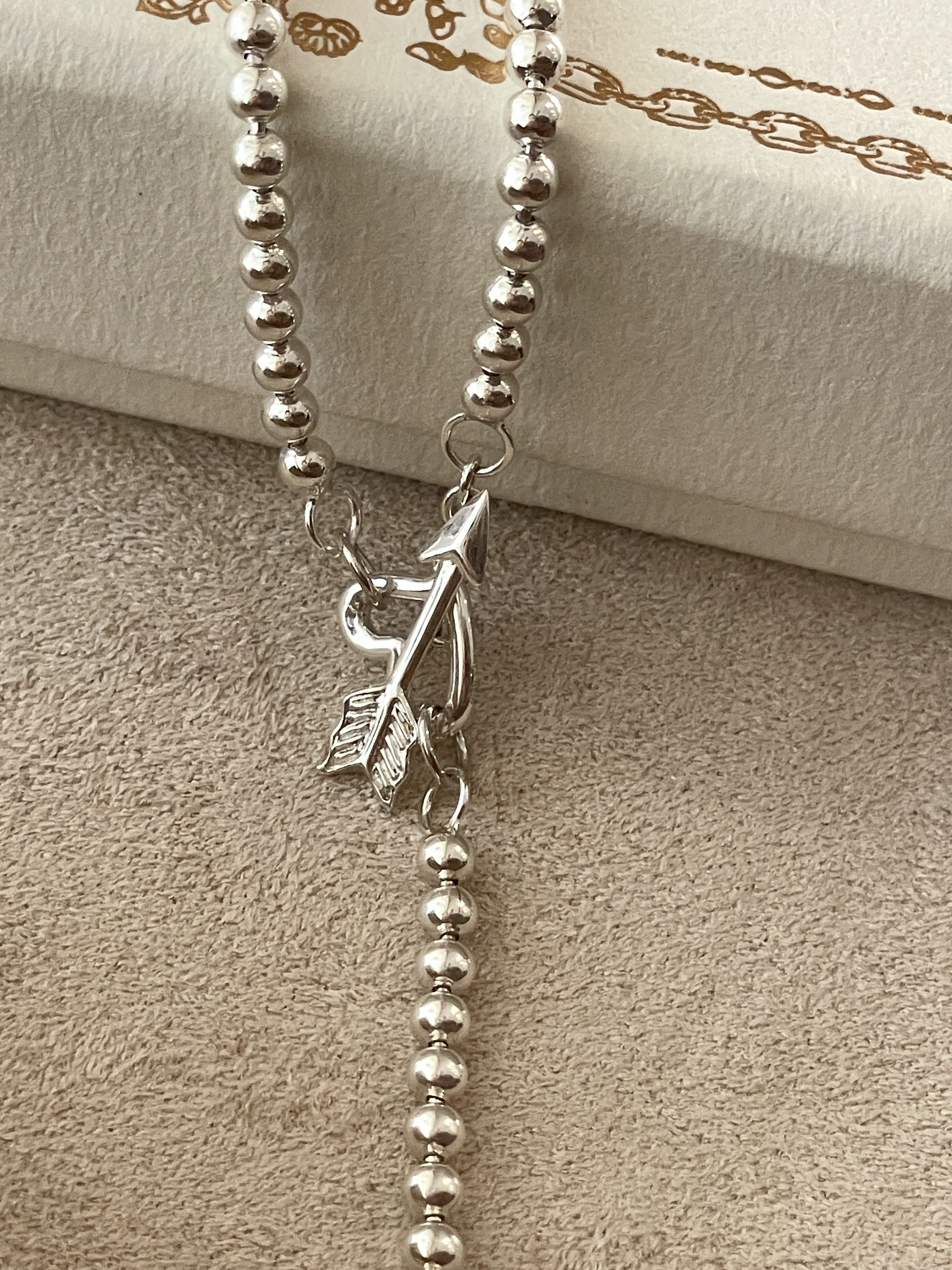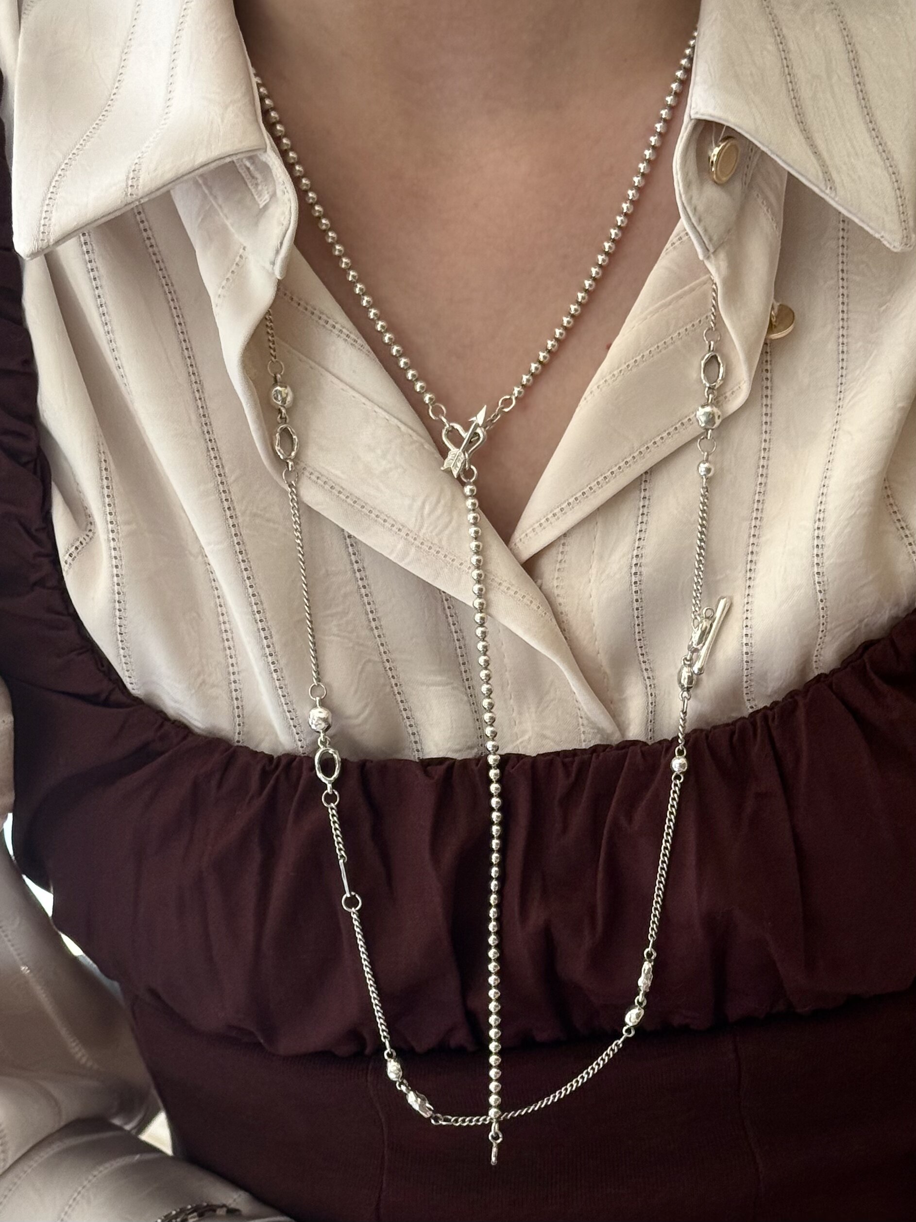 Fftown Yongyou Town Original Vintage Heart & Arrow Ot Clasp Sterling Silver Bead Long Necklace Multi-Wear