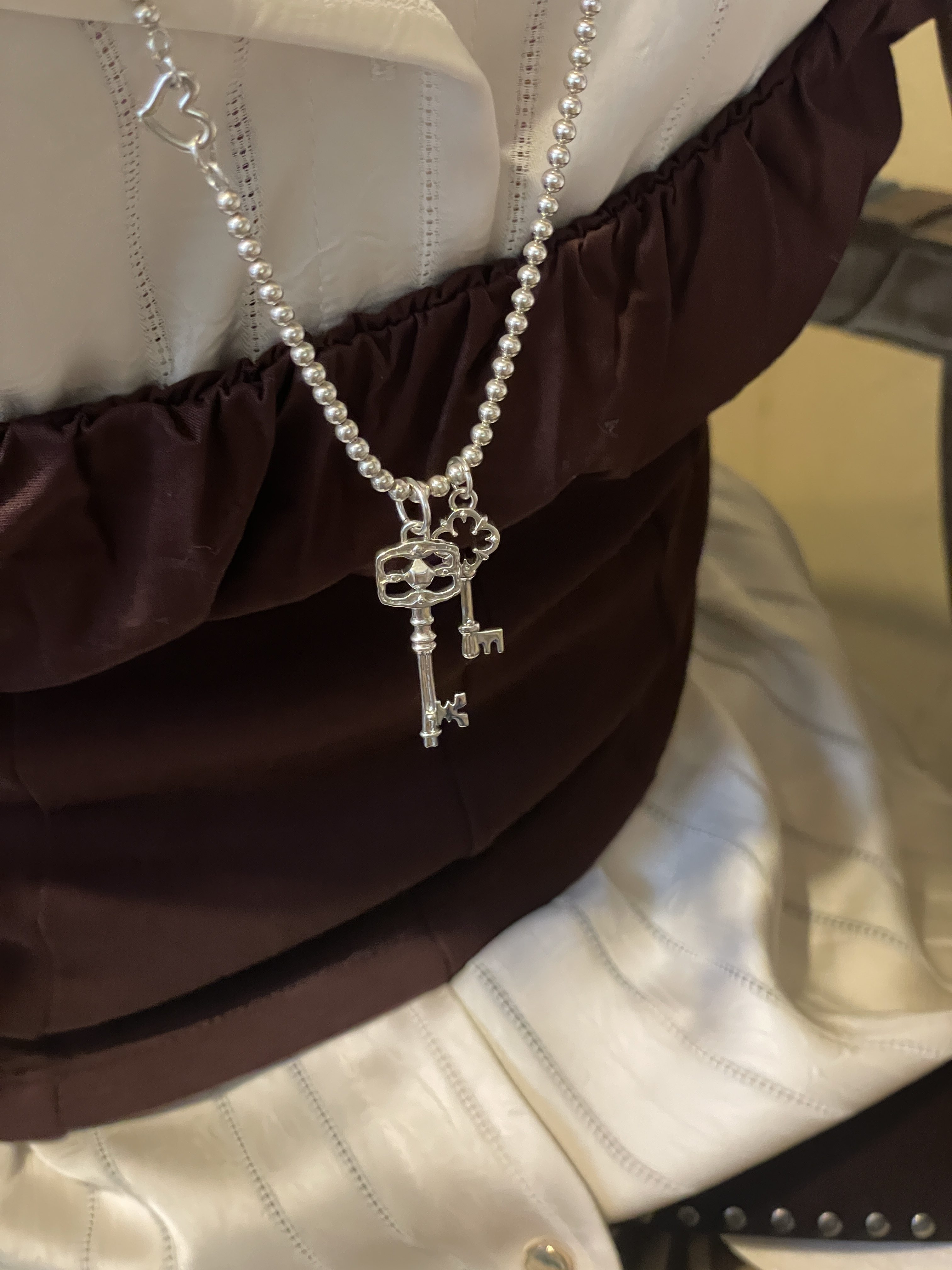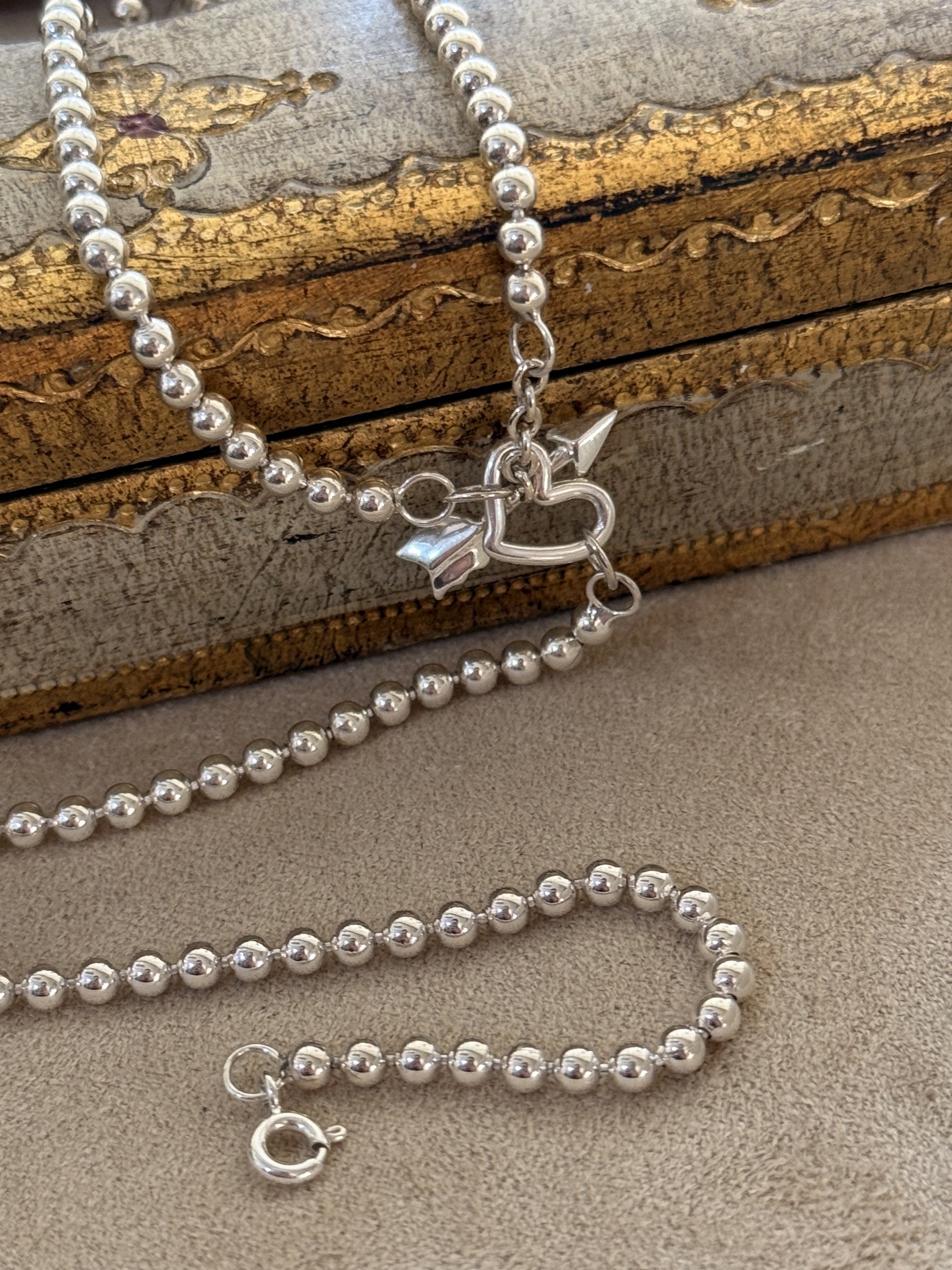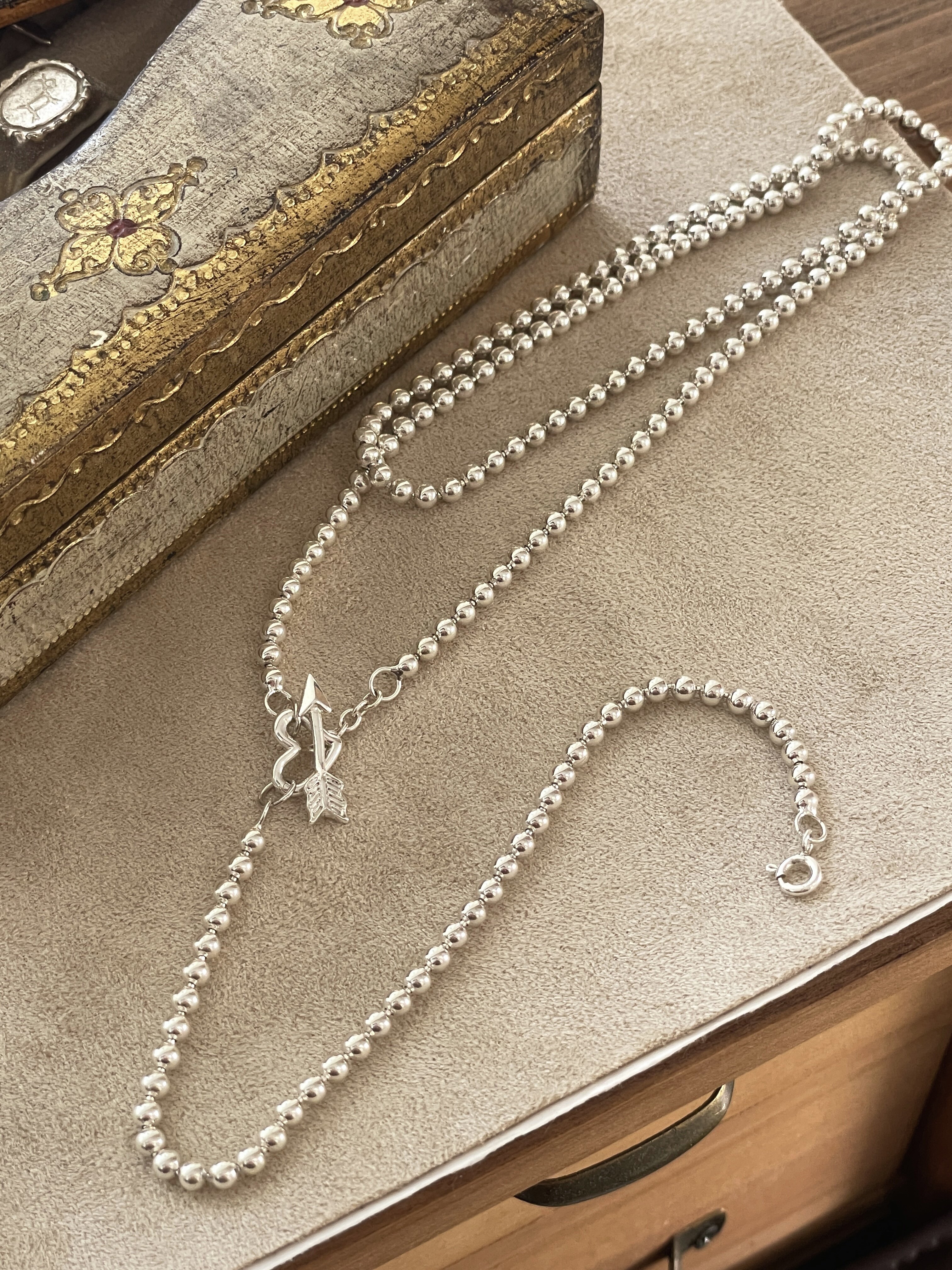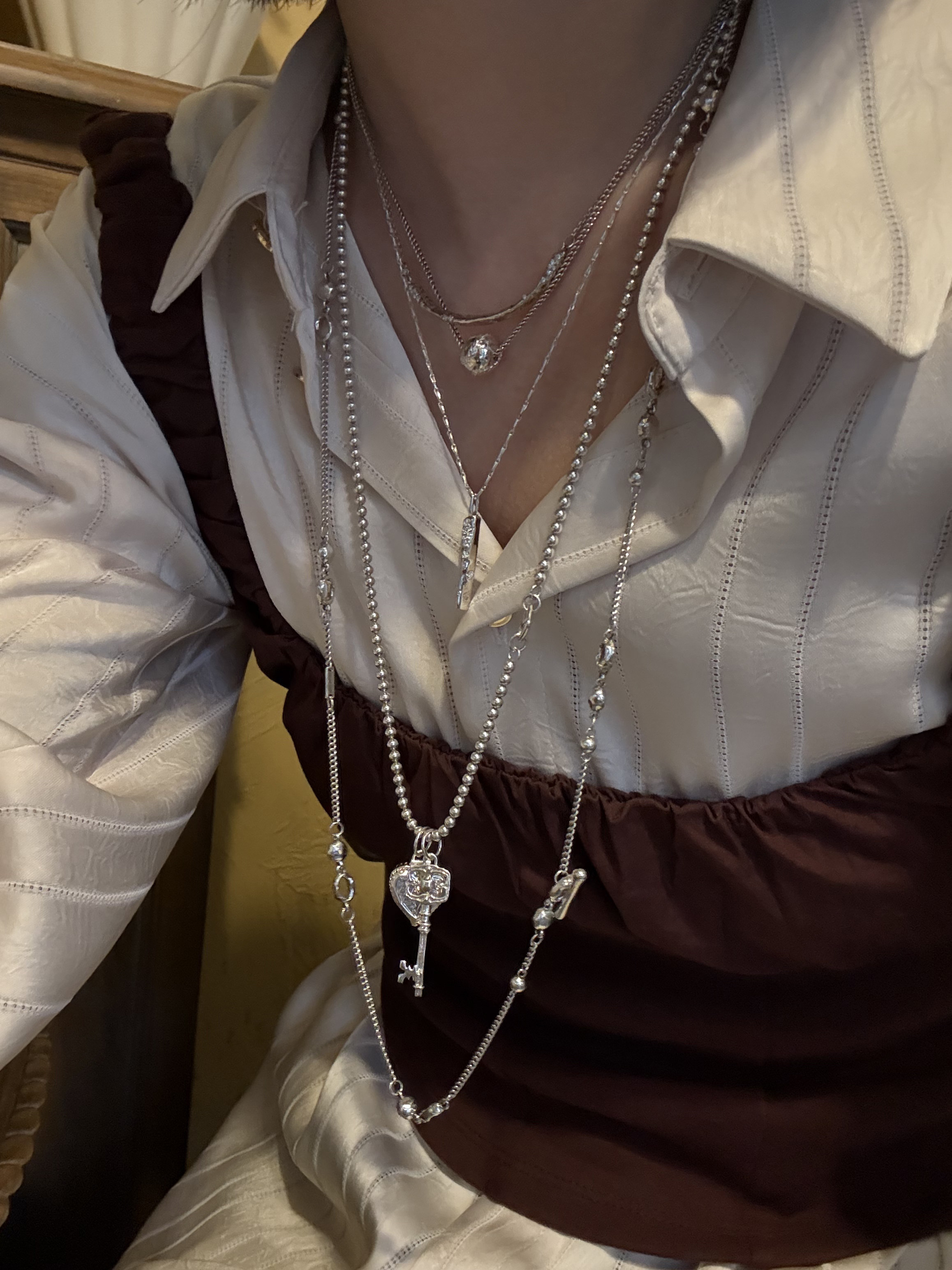 Fftown Yongyou Town Original Vintage Heart & Arrow Ot Clasp Sterling Silver Bead Long Necklace Multi-Wear