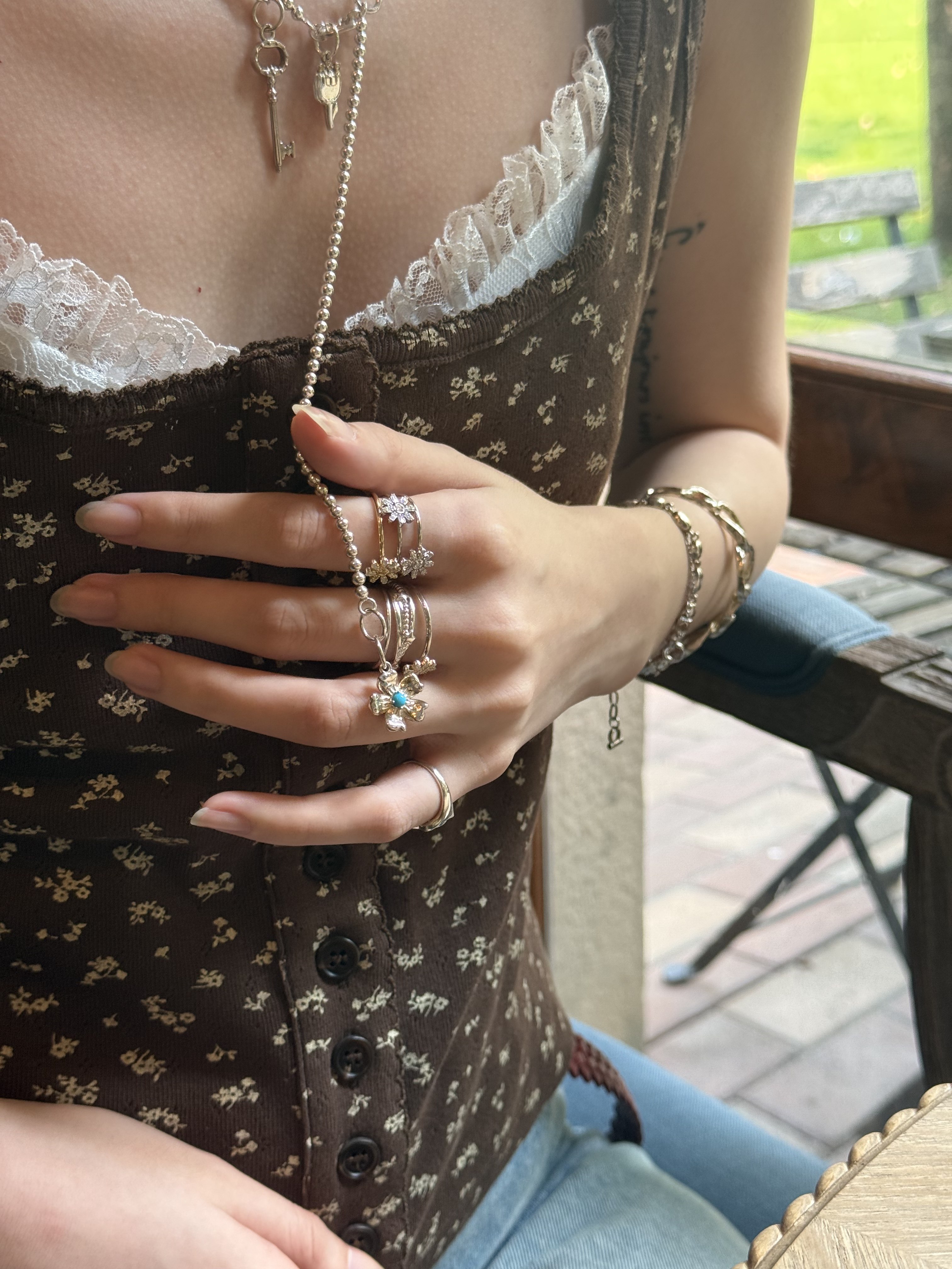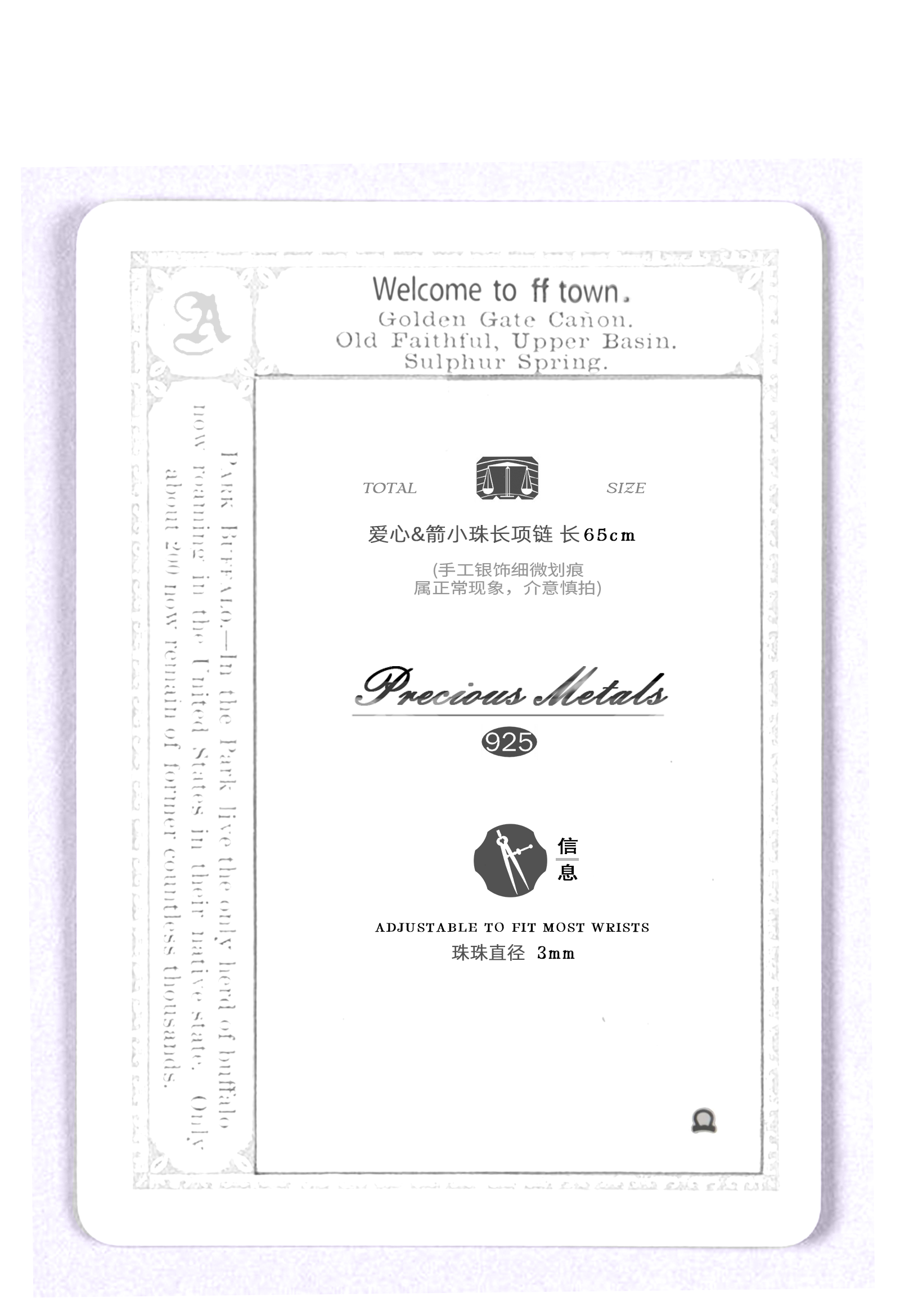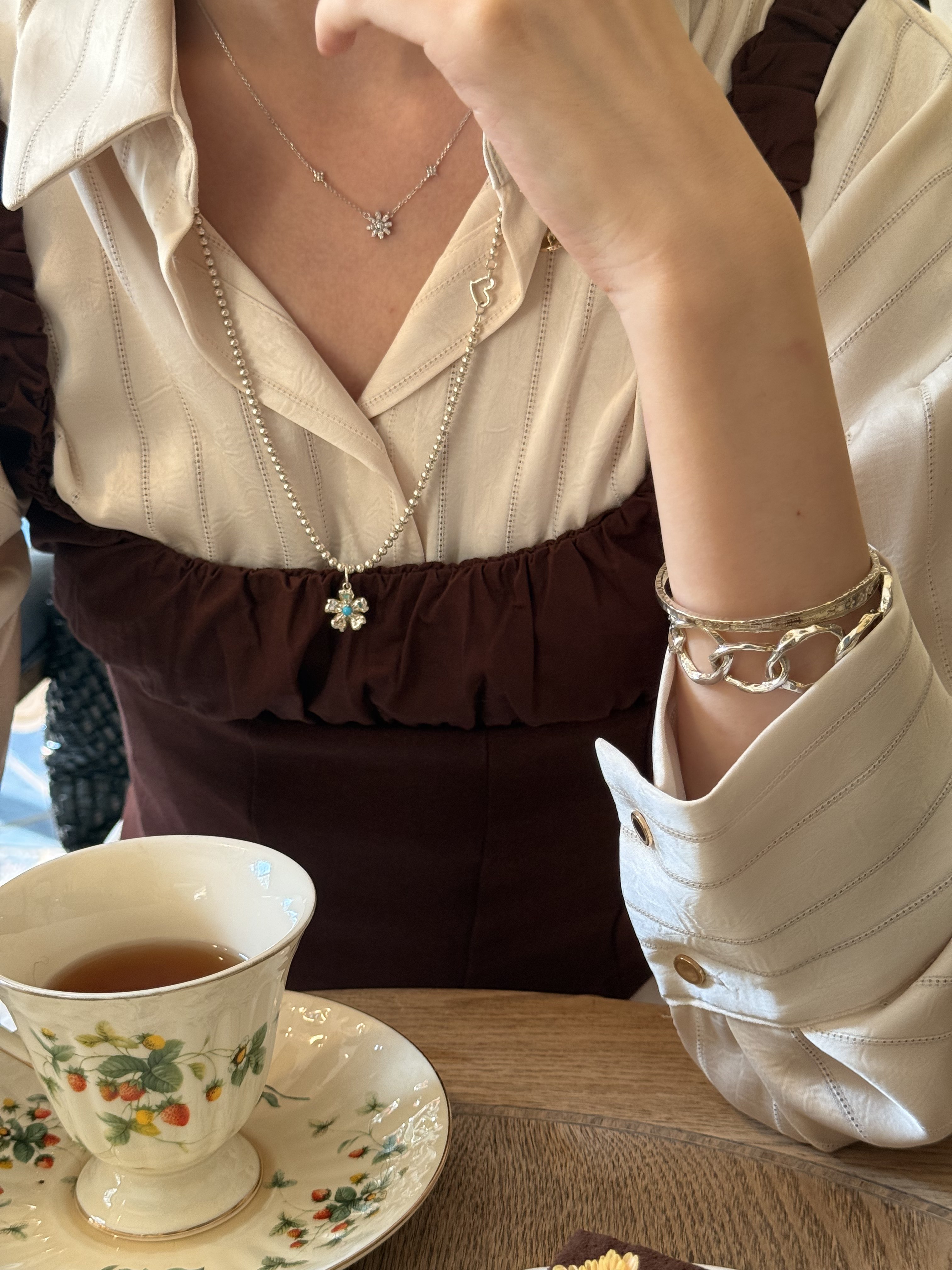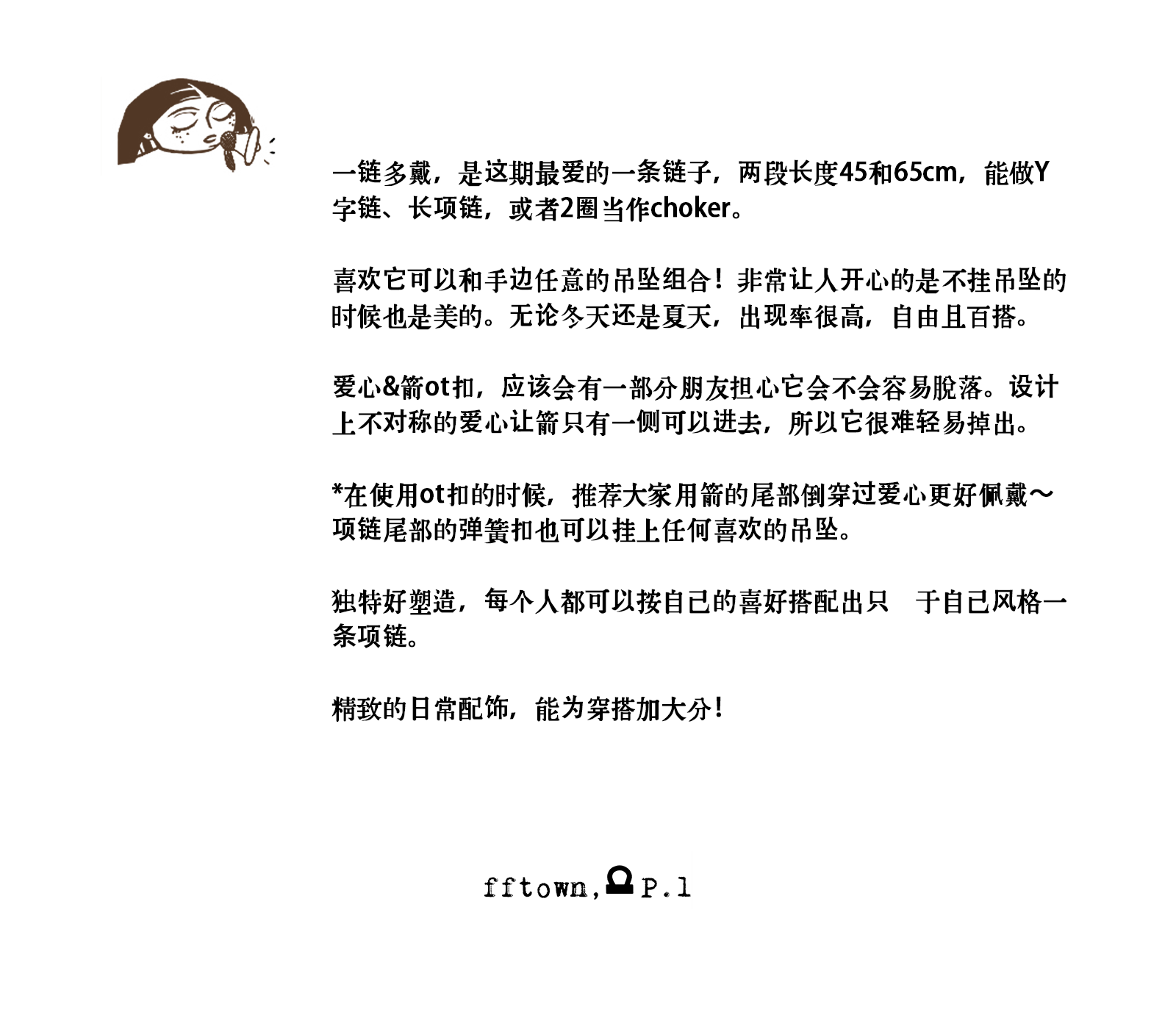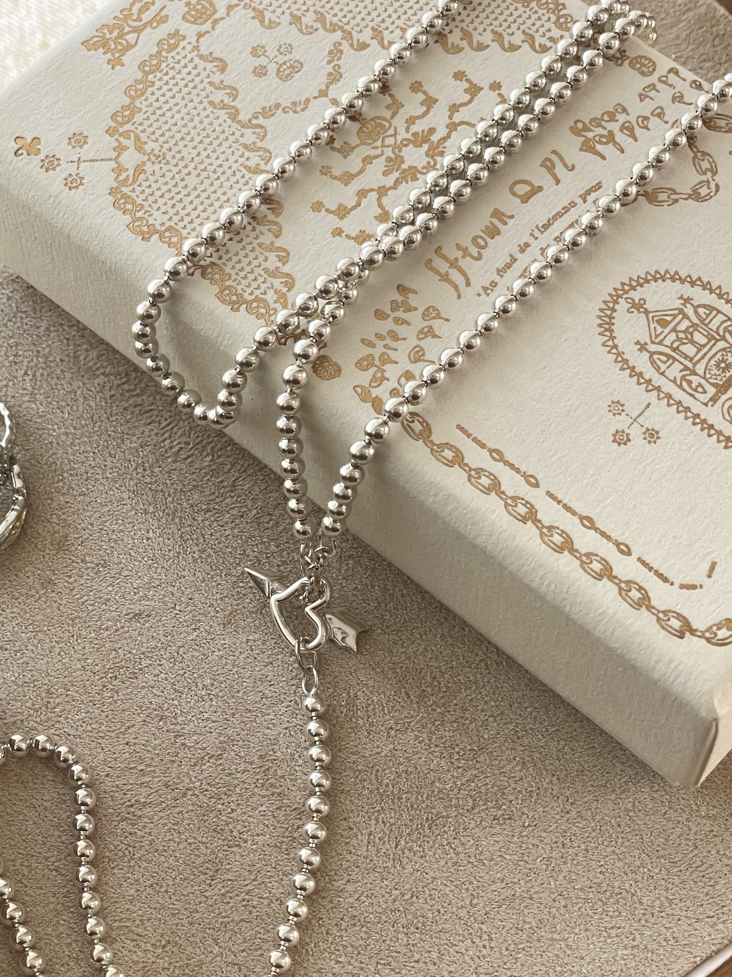Fftown Yongyou Town Original Vintage Heart & Arrow Ot Clasp Sterling Silver Bead Long Necklace Multi-Wear