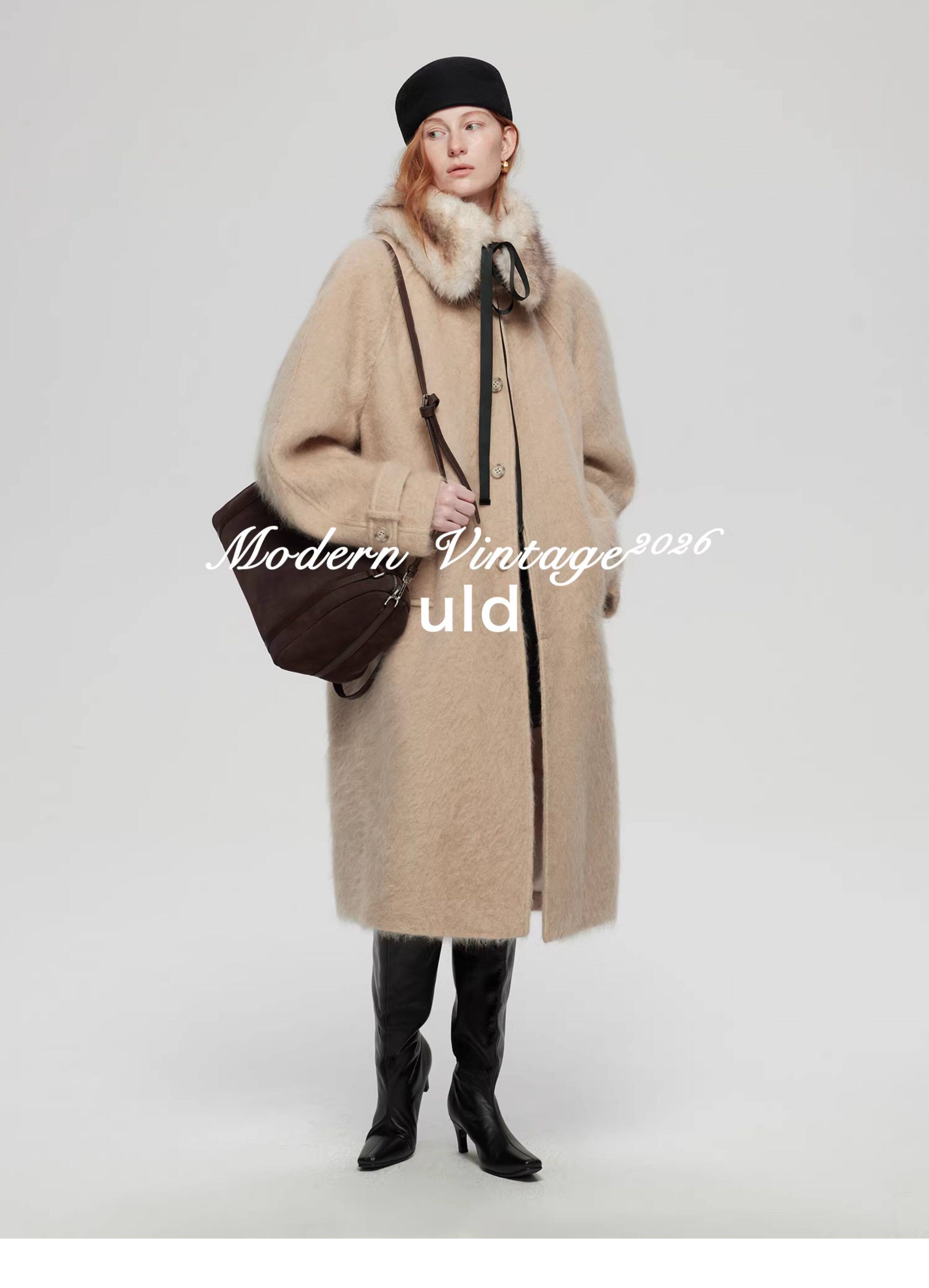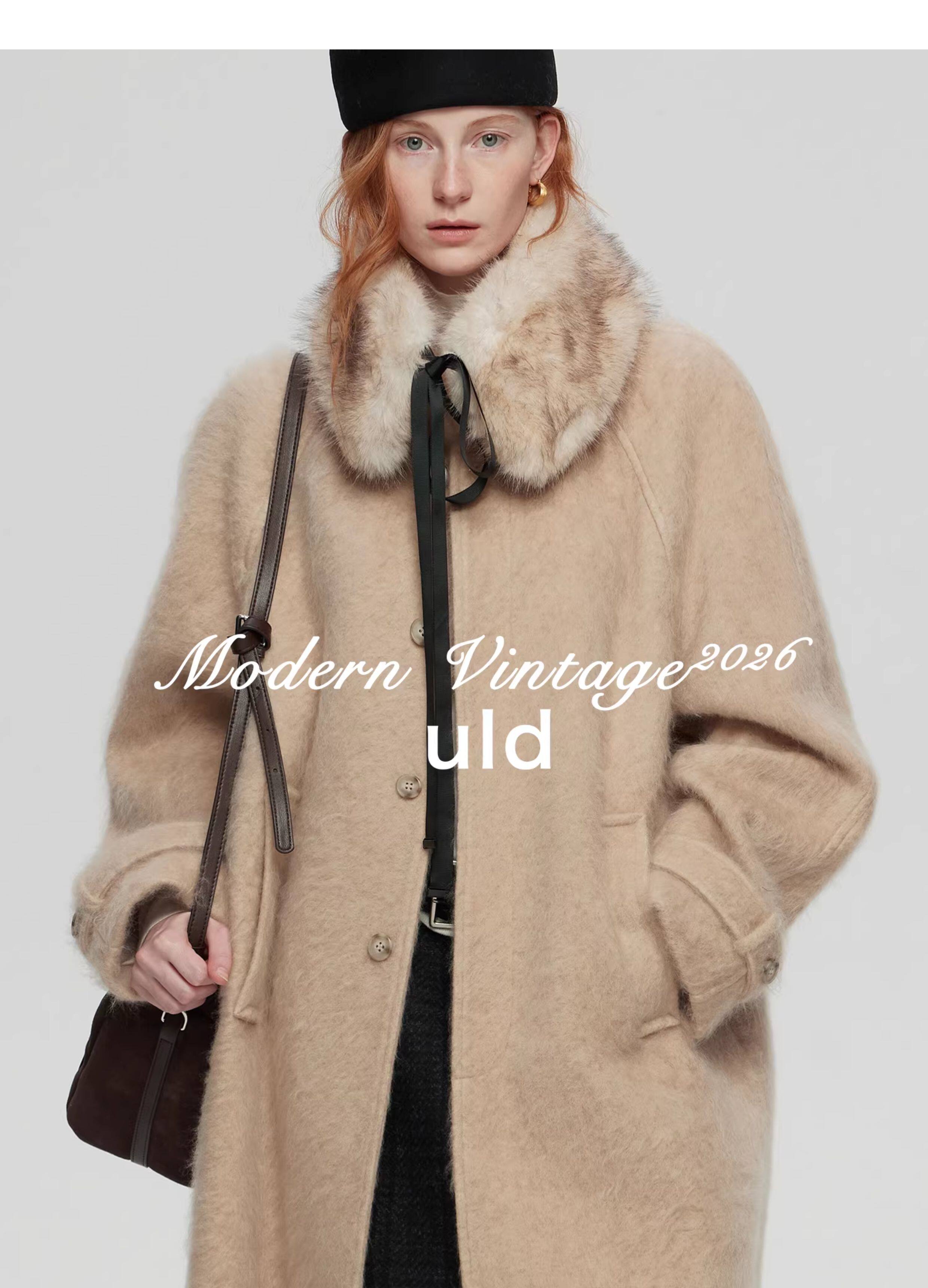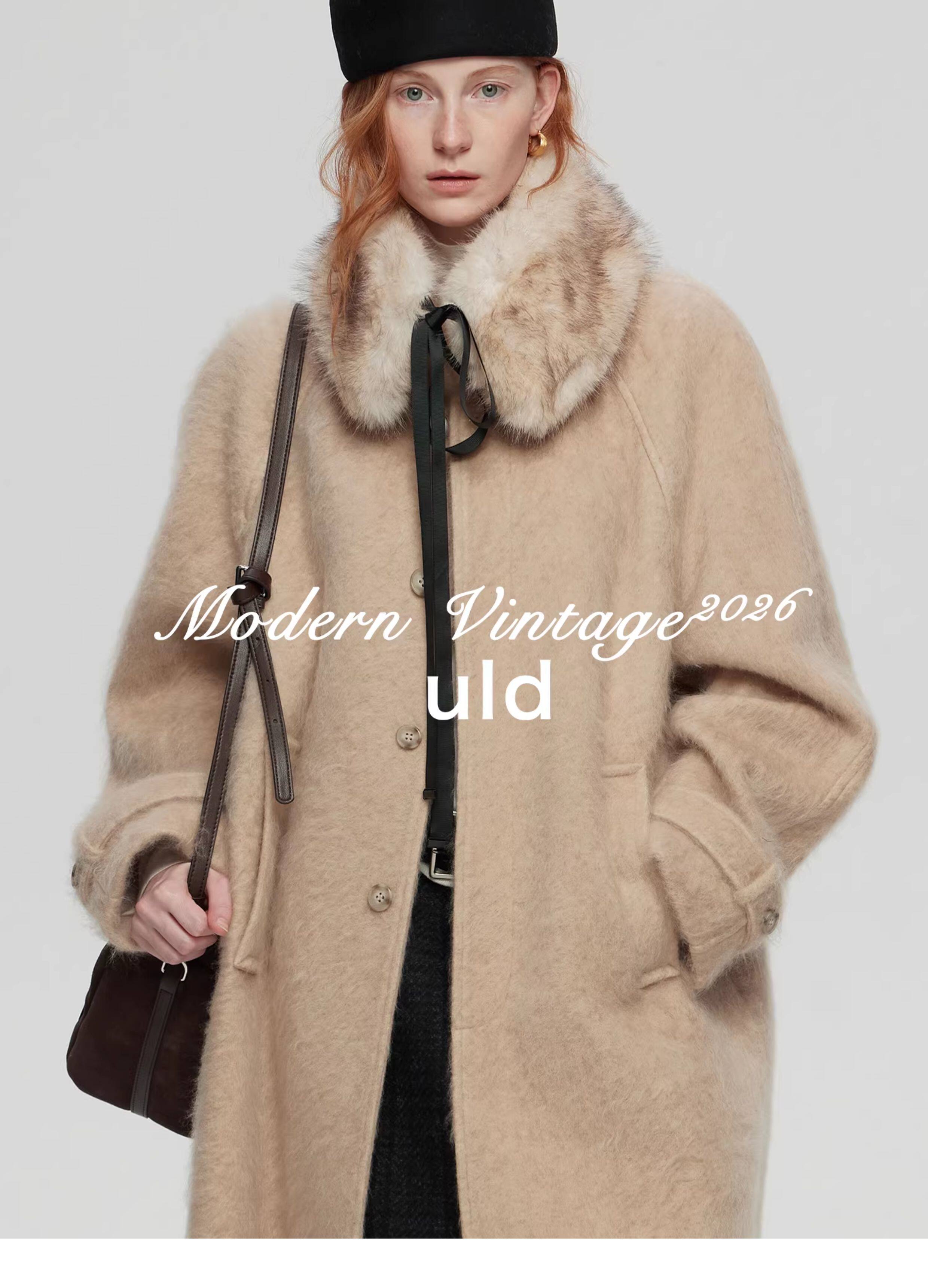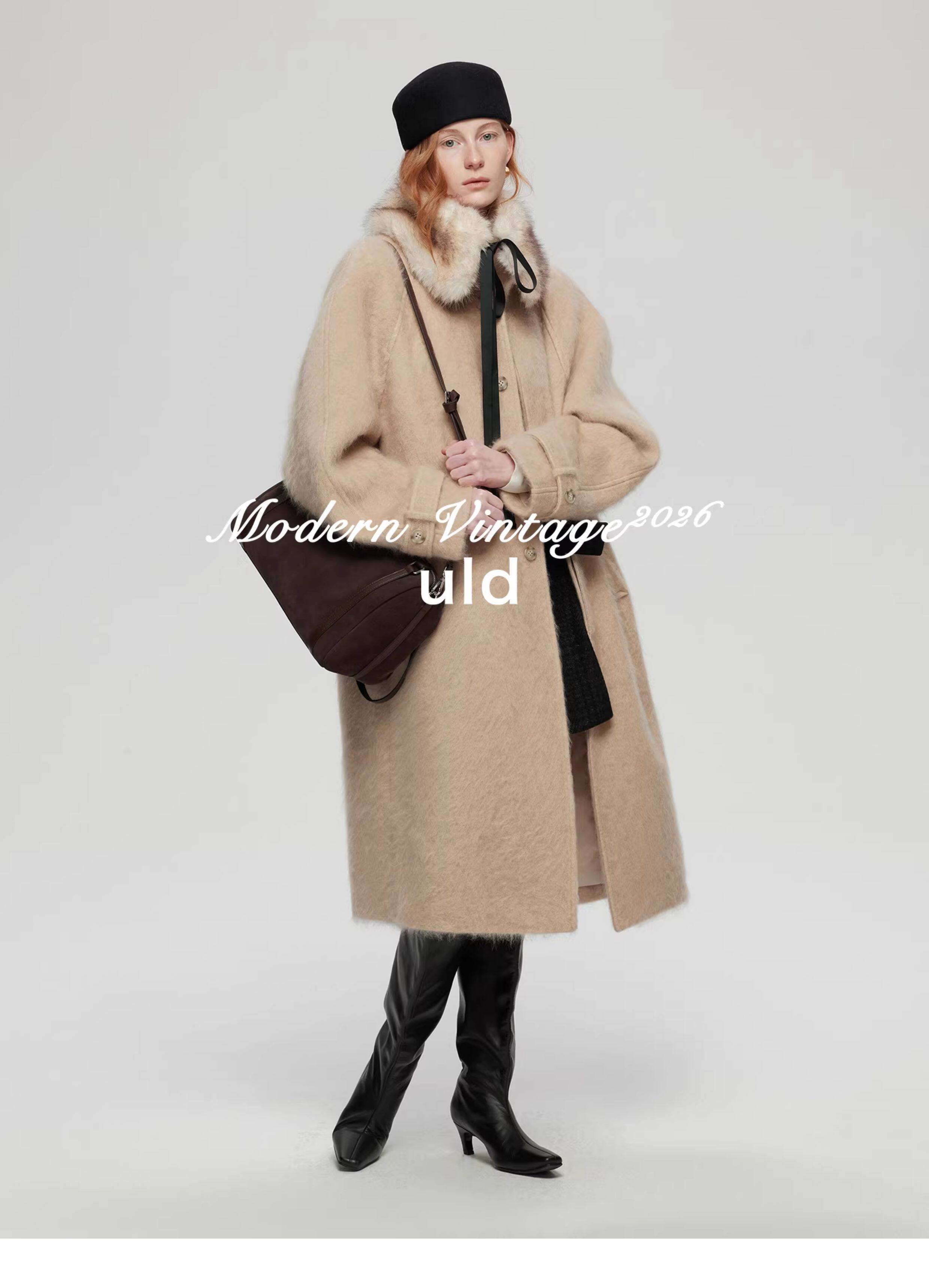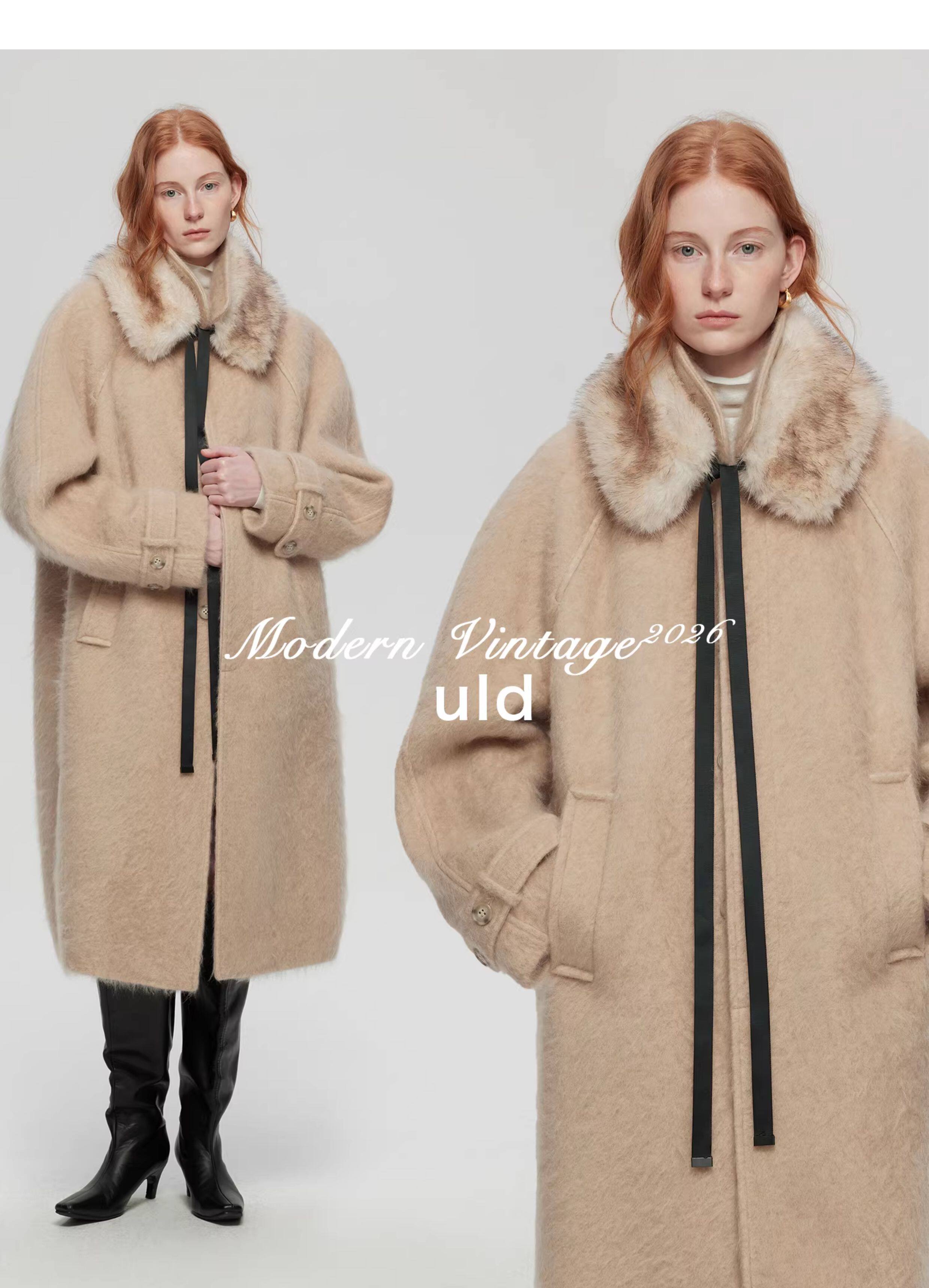 Uld/Black Label Ofg Finland Snow Forest Festive Loop Wool Handmade Color-Blocking Cloud-Like Detachable Fur Collar Coat