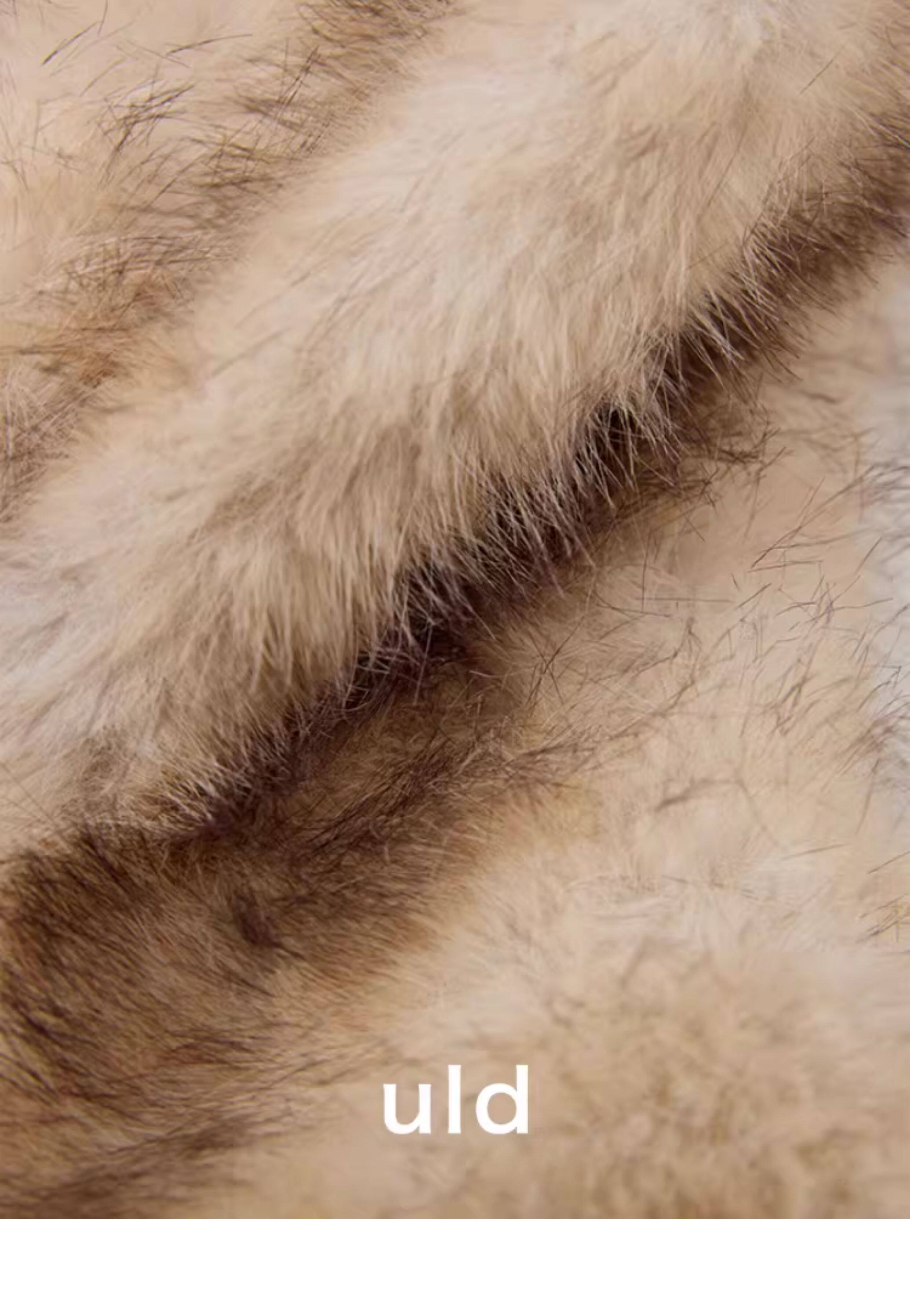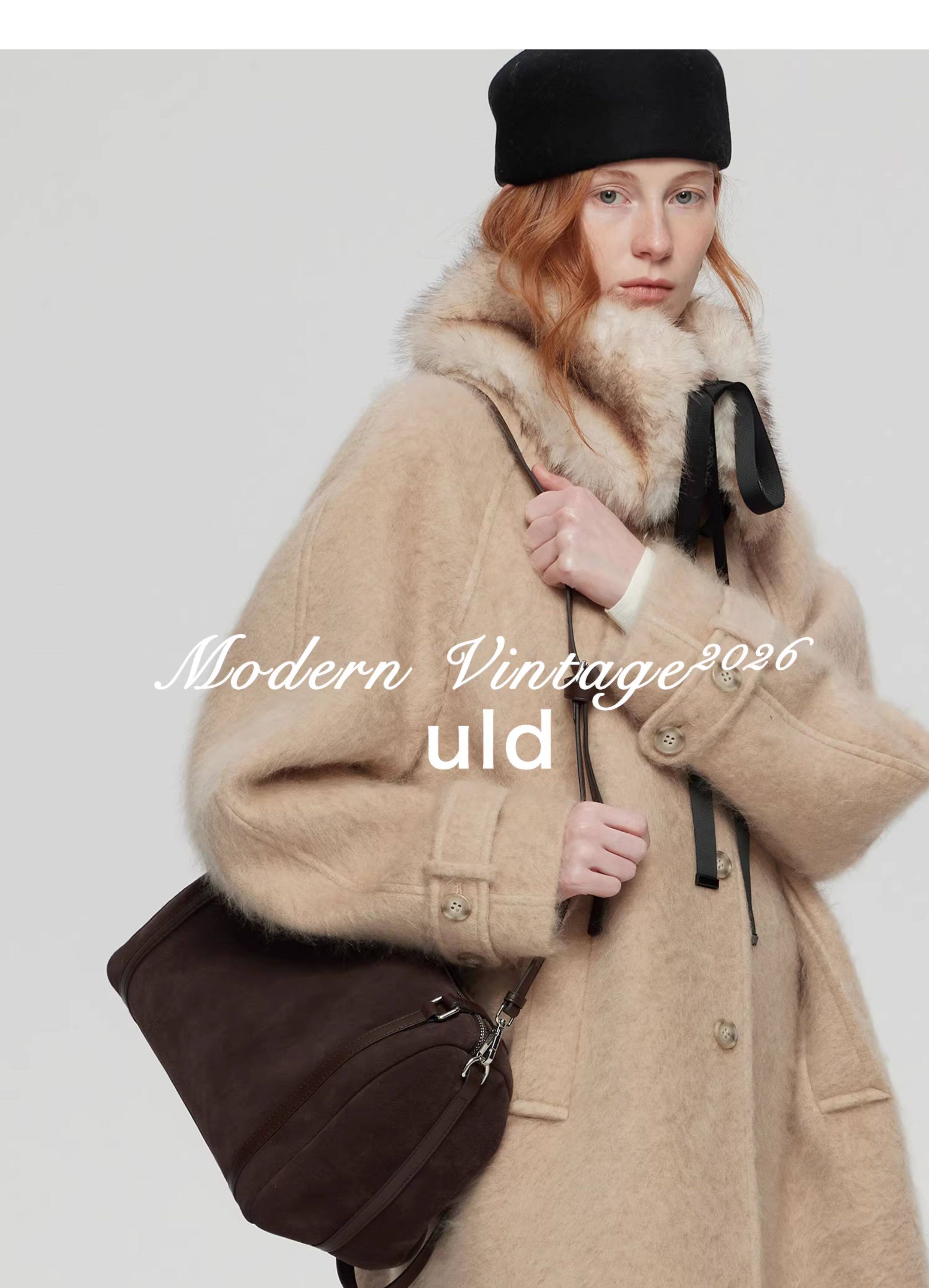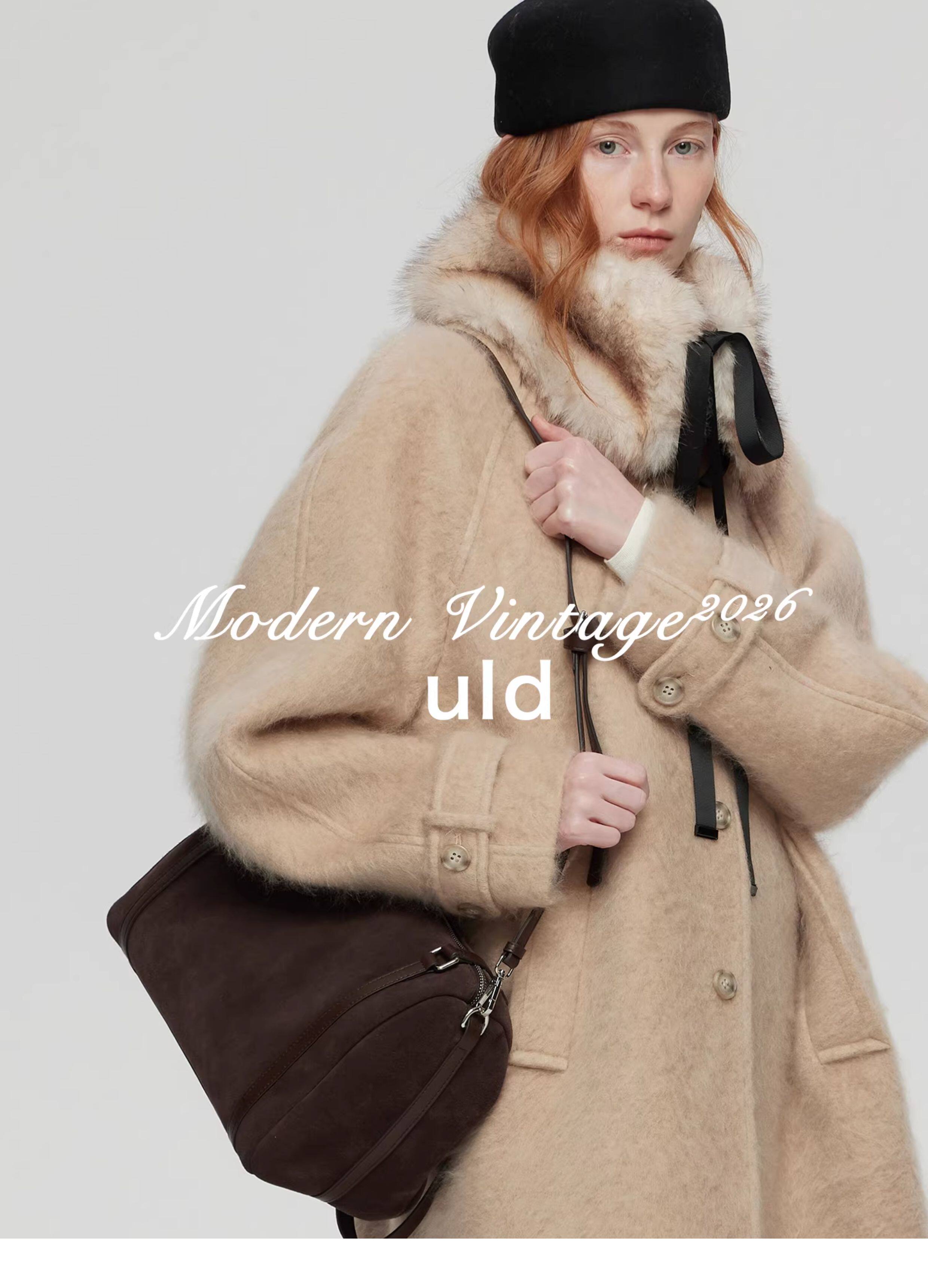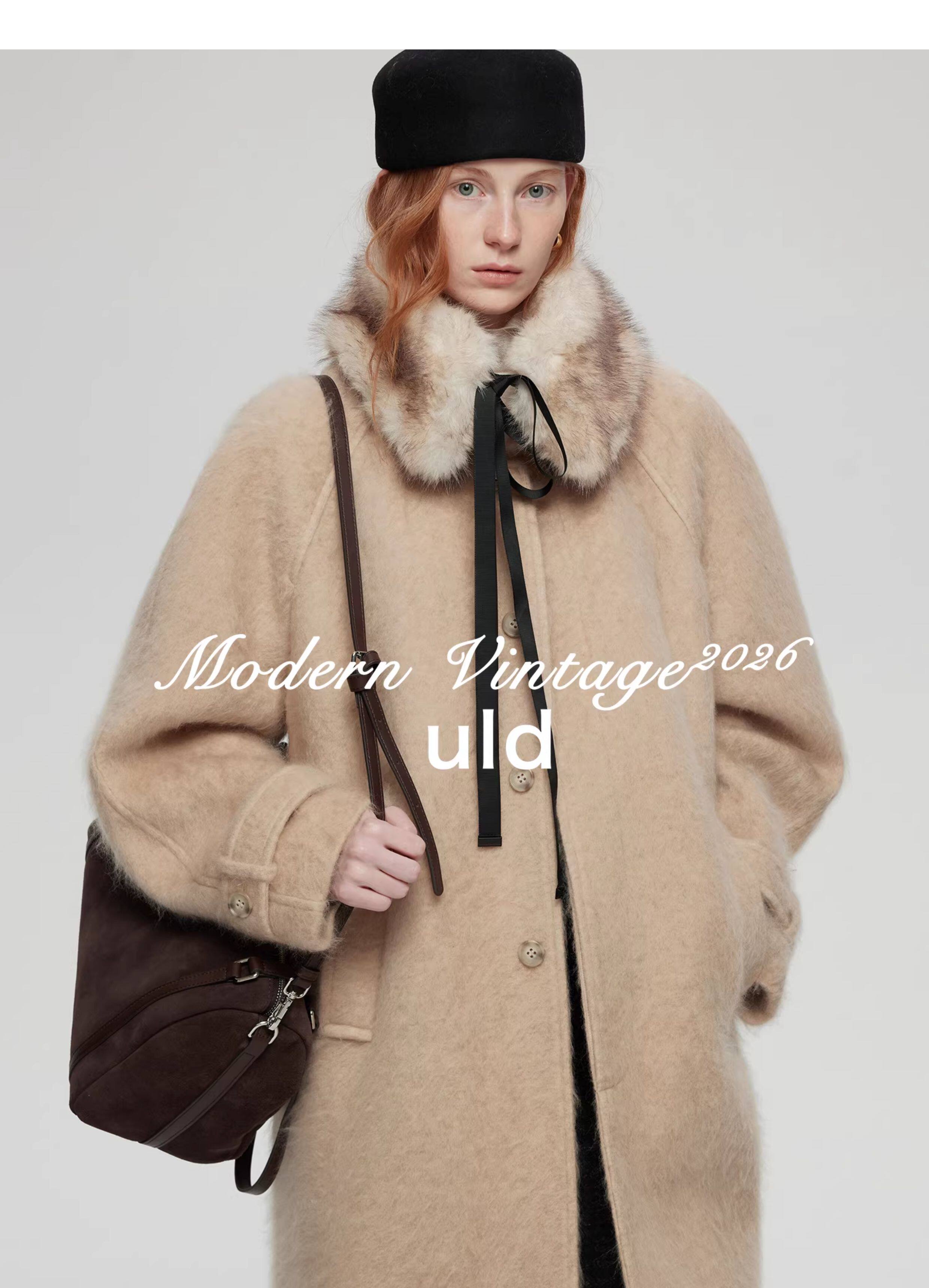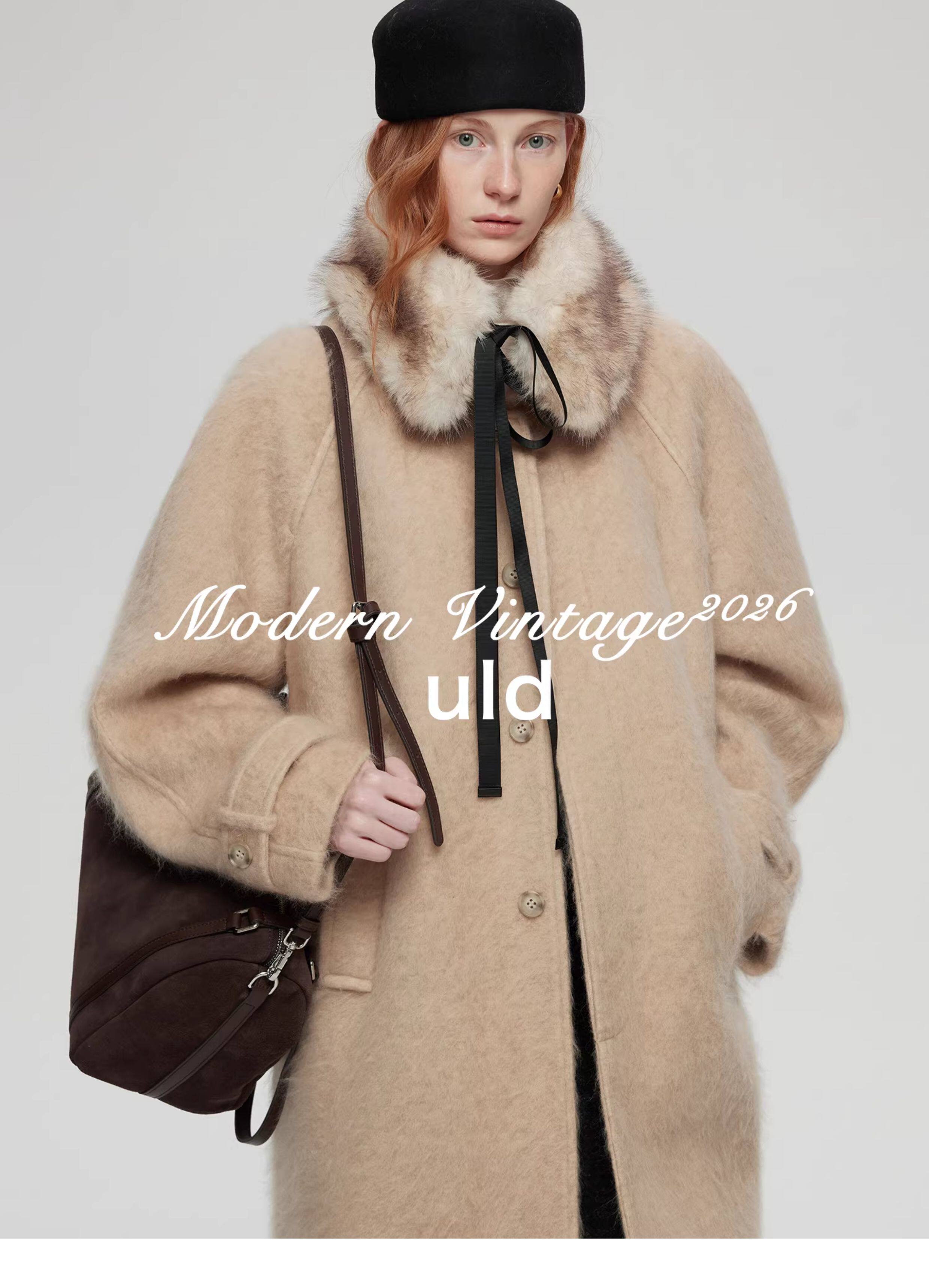 Uld/Black Label Ofg Finland Snow Forest Festive Loop Wool Handmade Color-Blocking Cloud-Like Detachable Fur Collar Coat