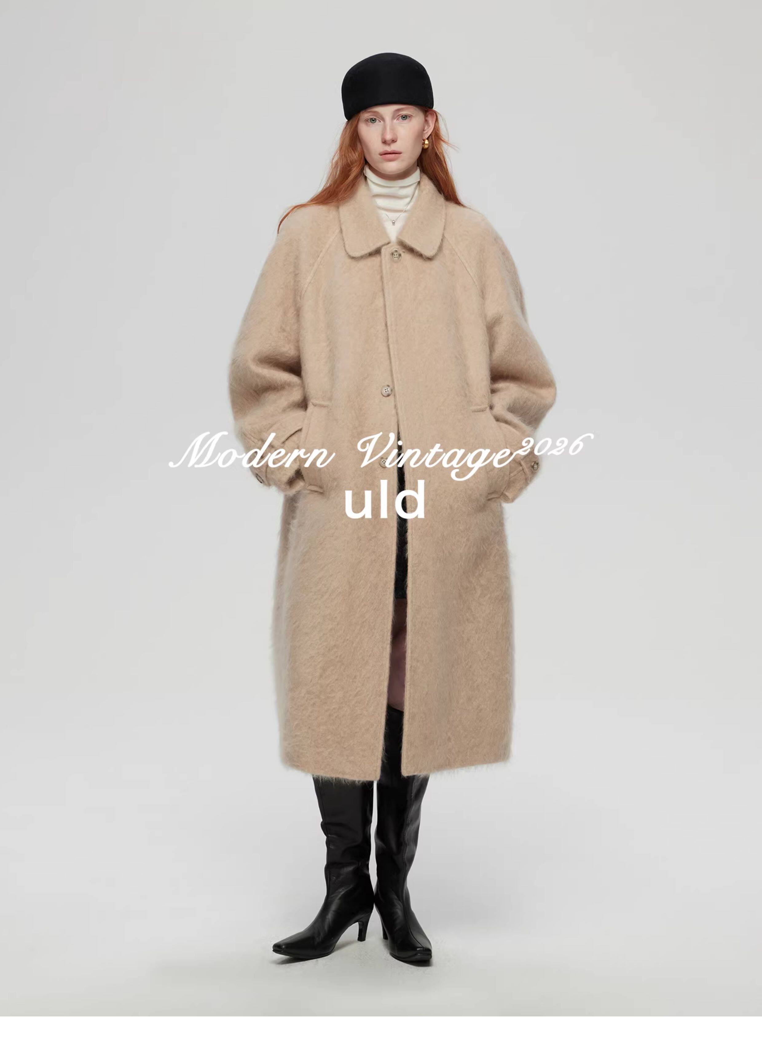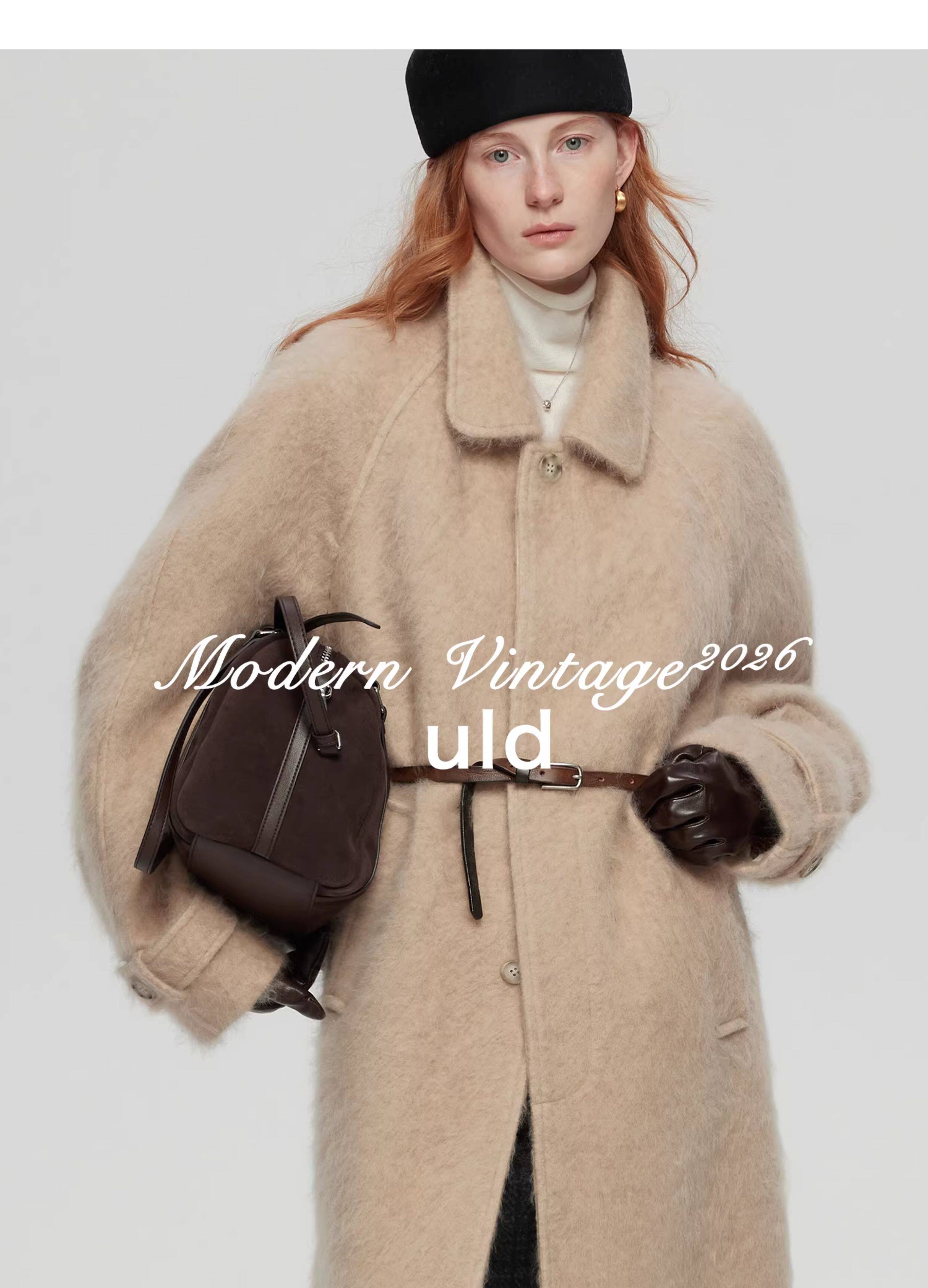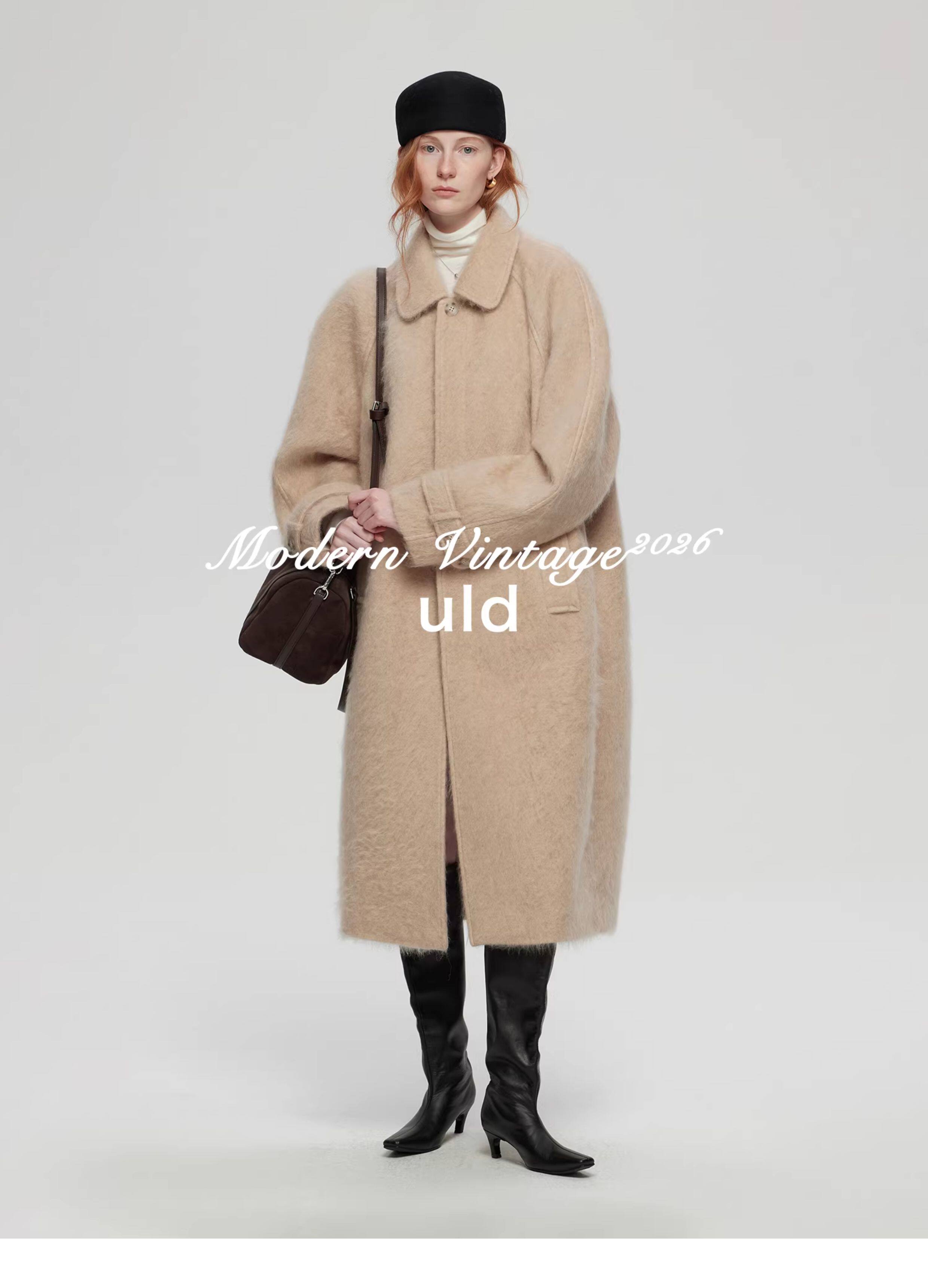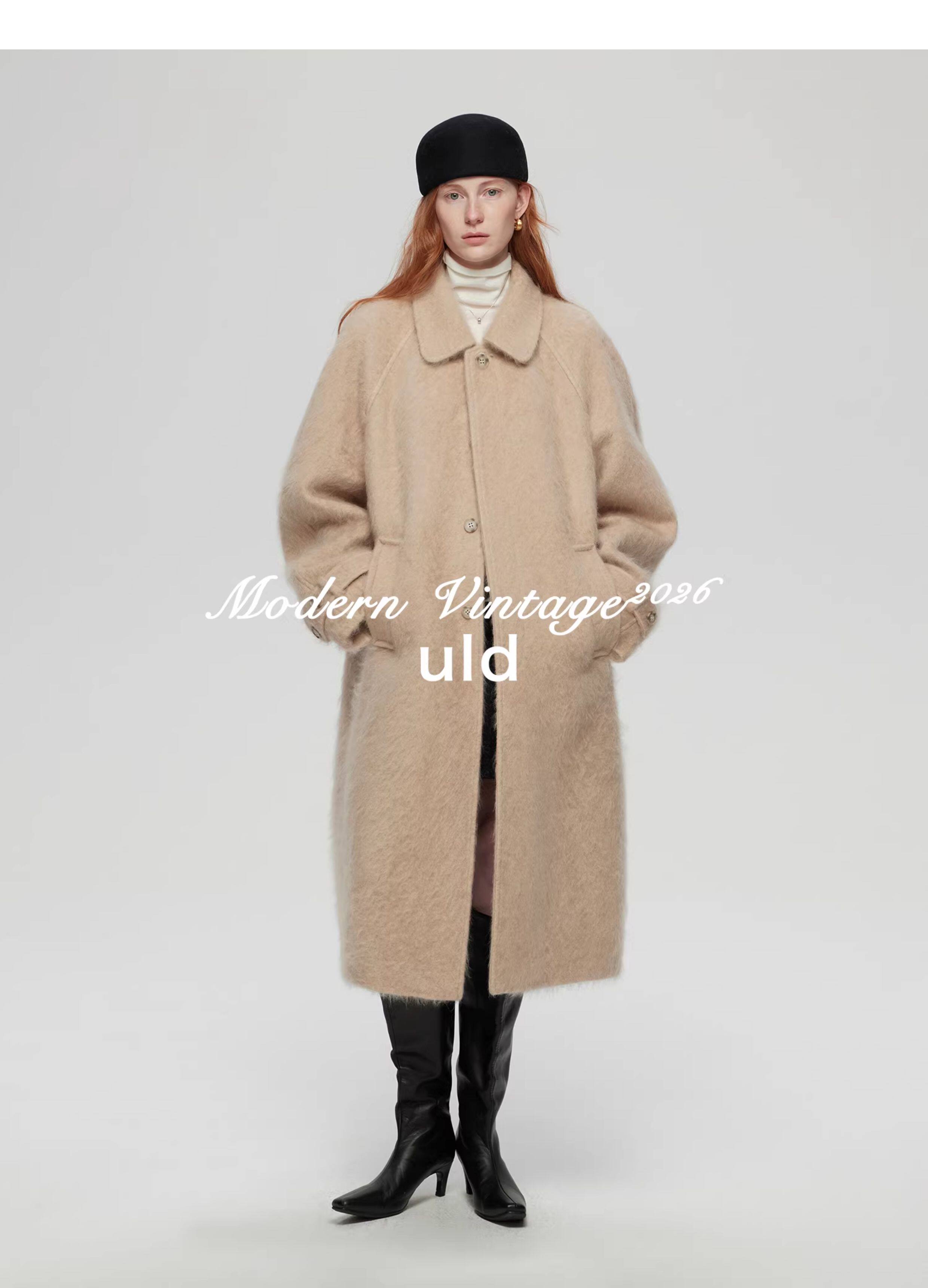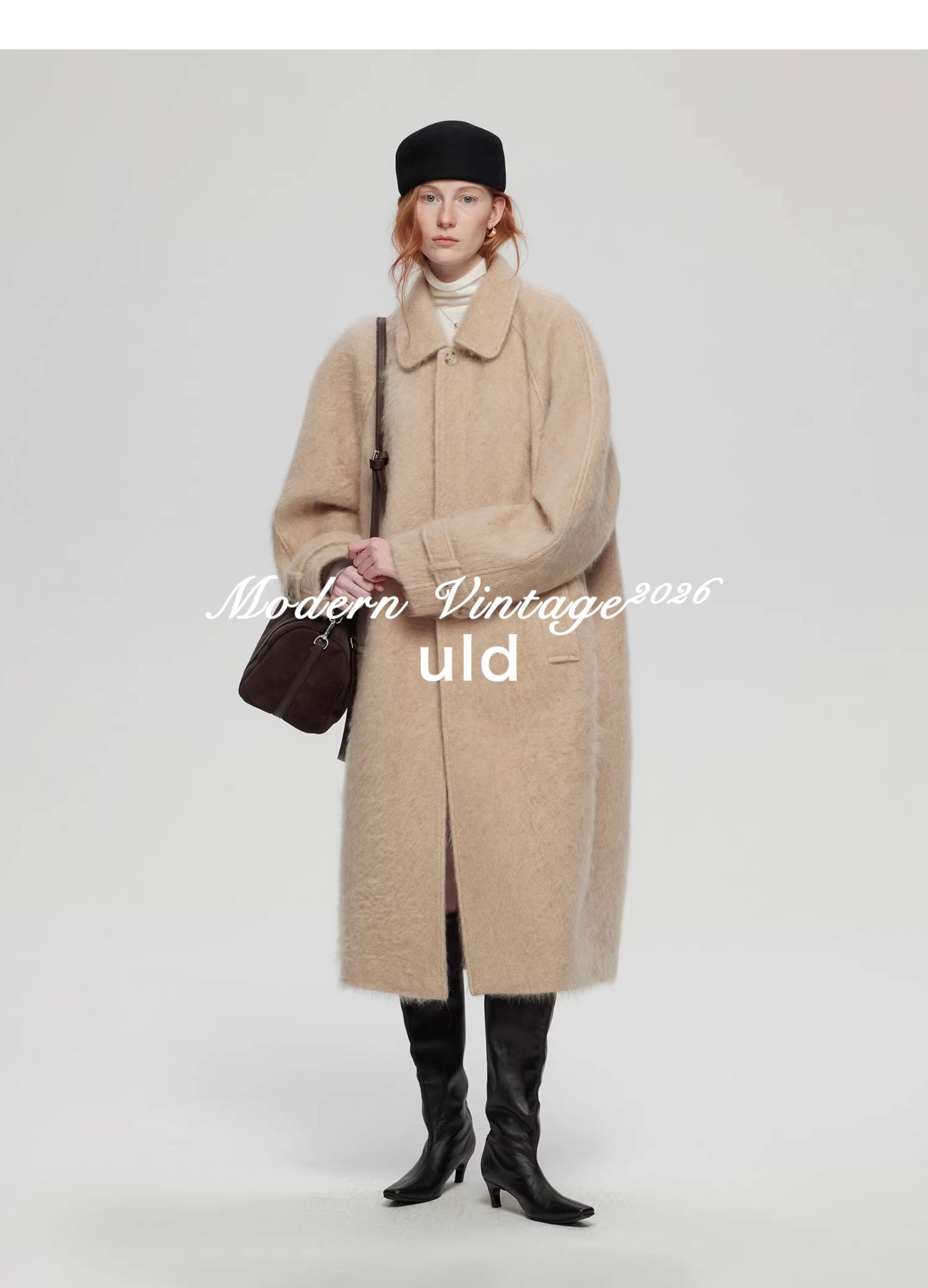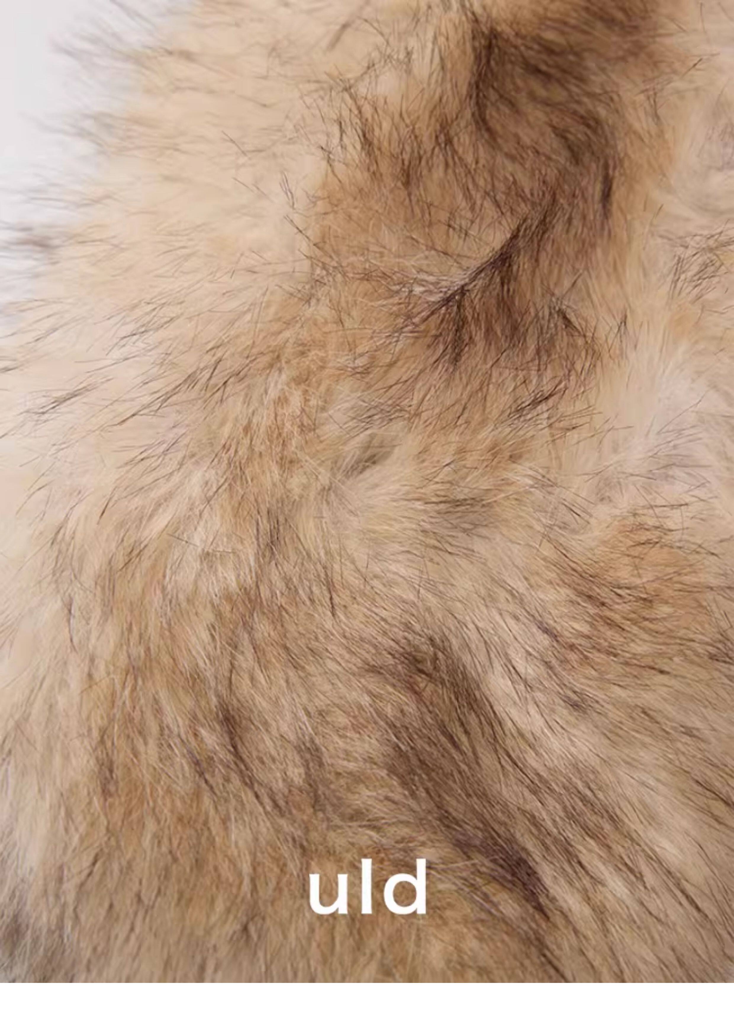 Uld/Black Label Ofg Finland Snow Forest Festive Loop Wool Handmade Color-Blocking Cloud-Like Detachable Fur Collar Coat