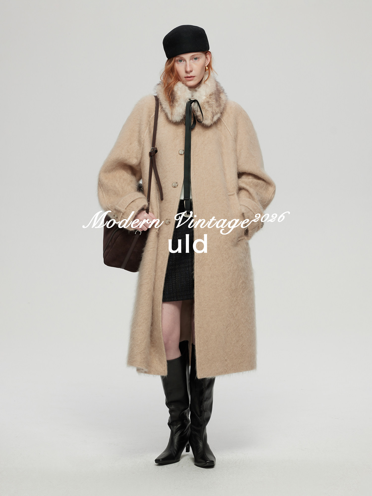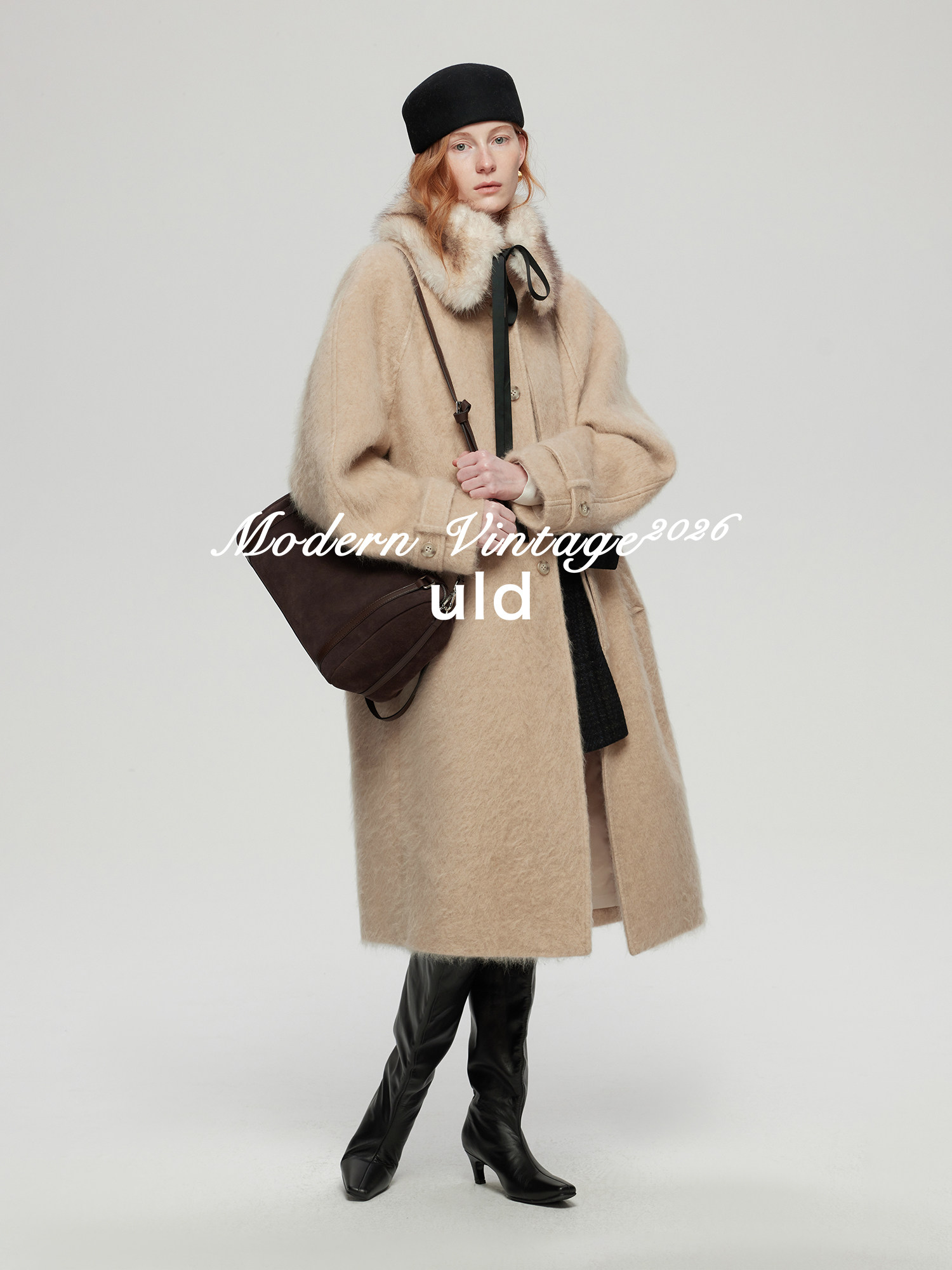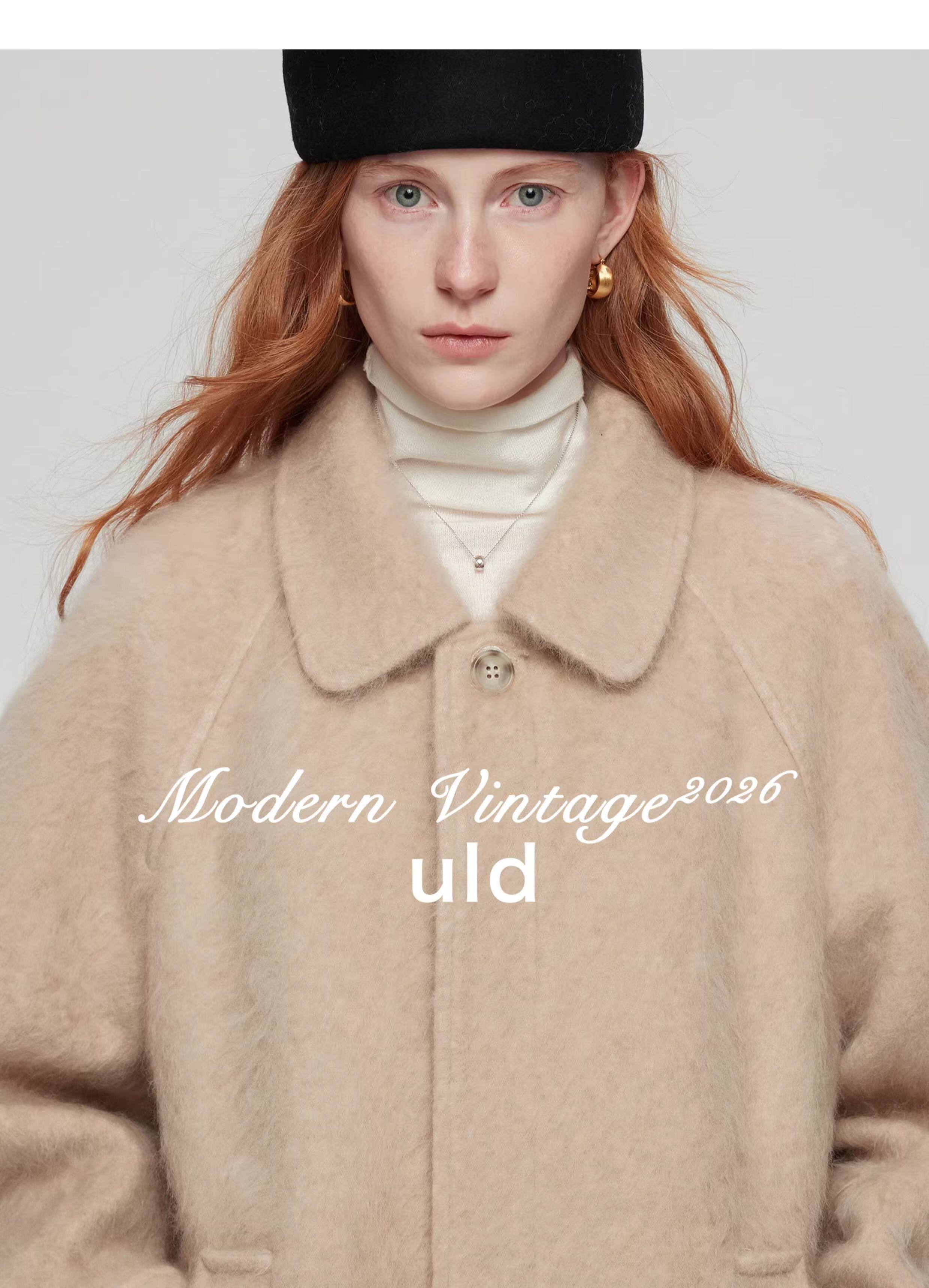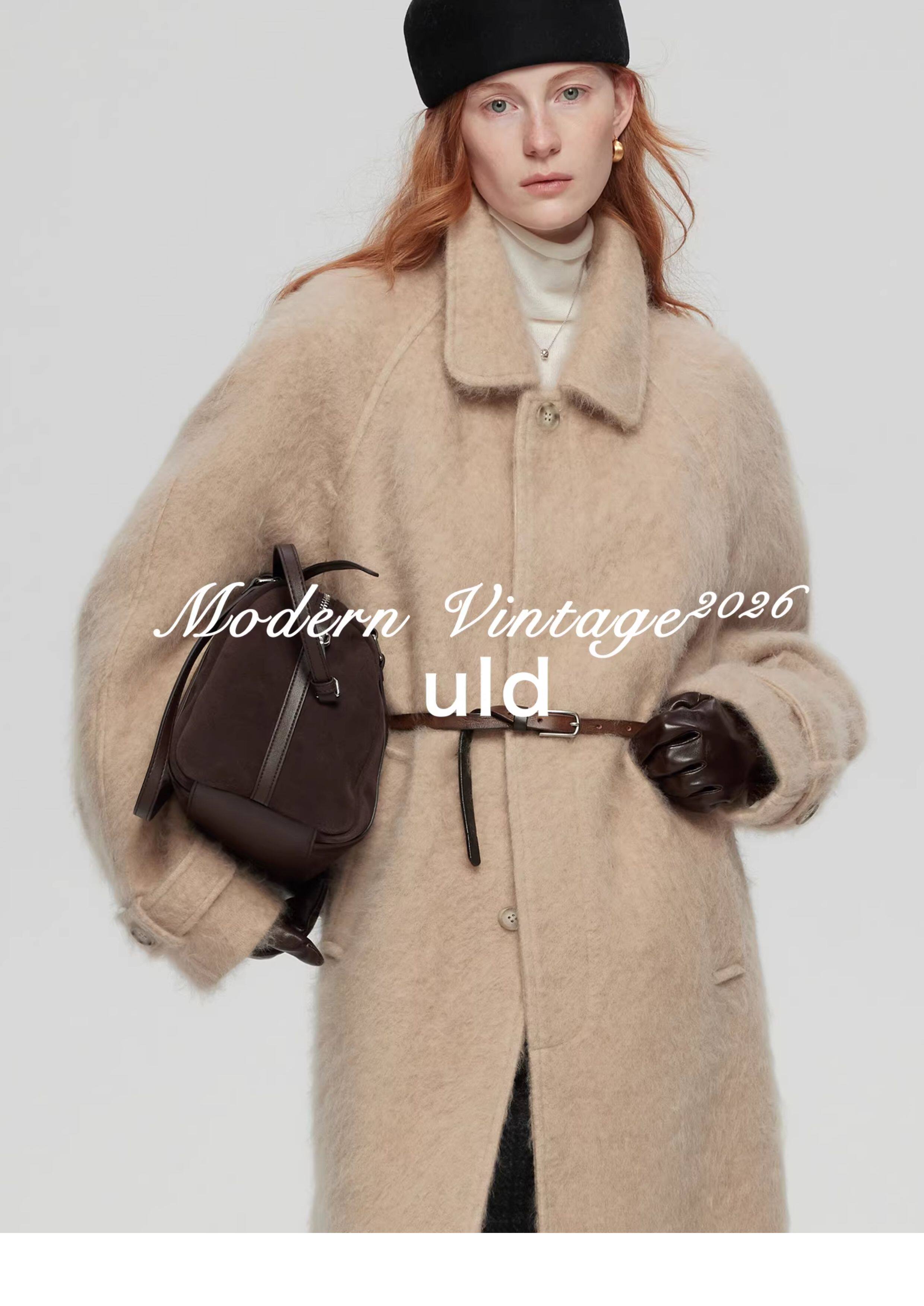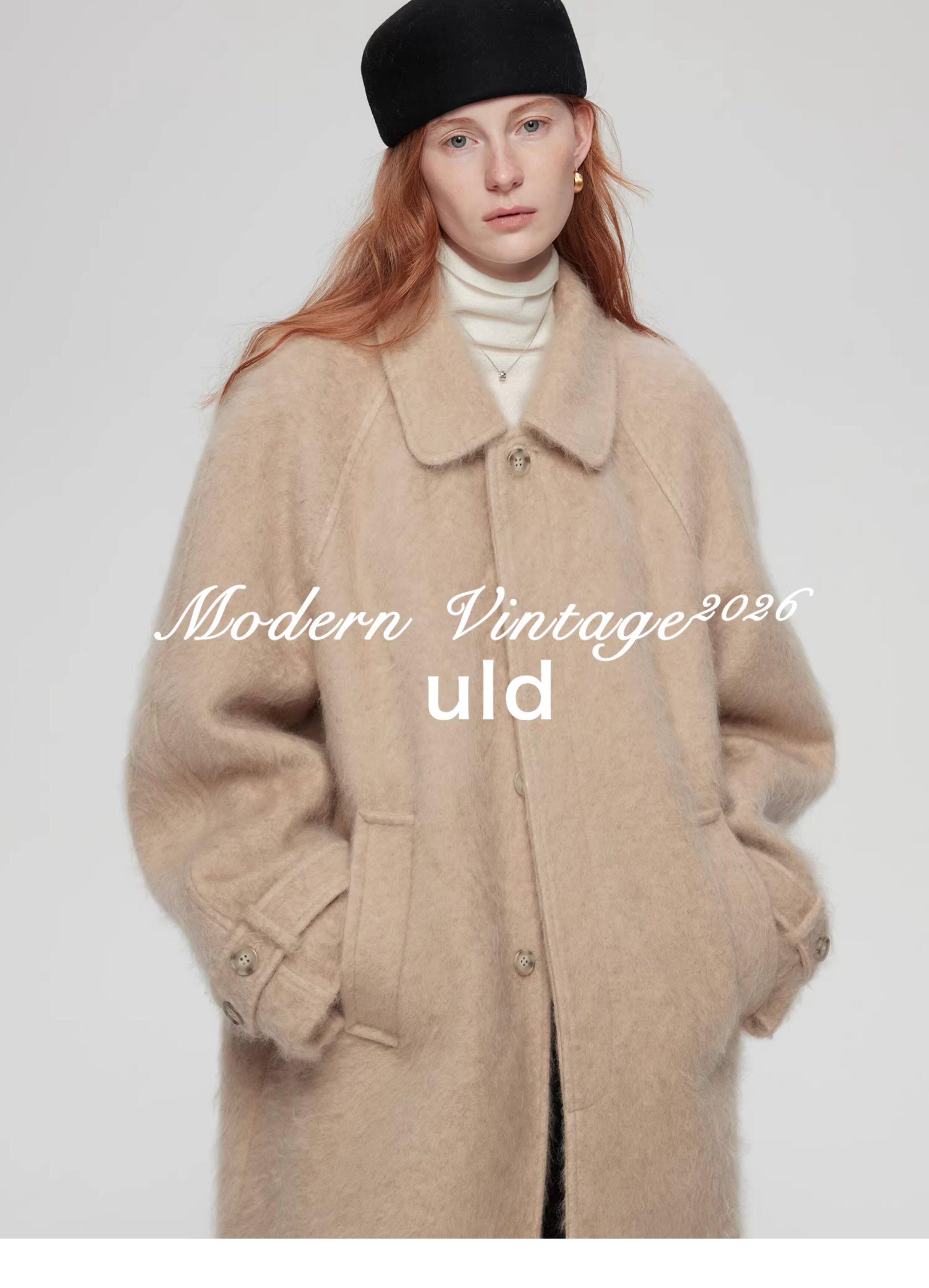 Uld/Black Label Ofg Finland Snow Forest Festive Loop Wool Handmade Color-Blocking Cloud-Like Detachable Fur Collar Coat