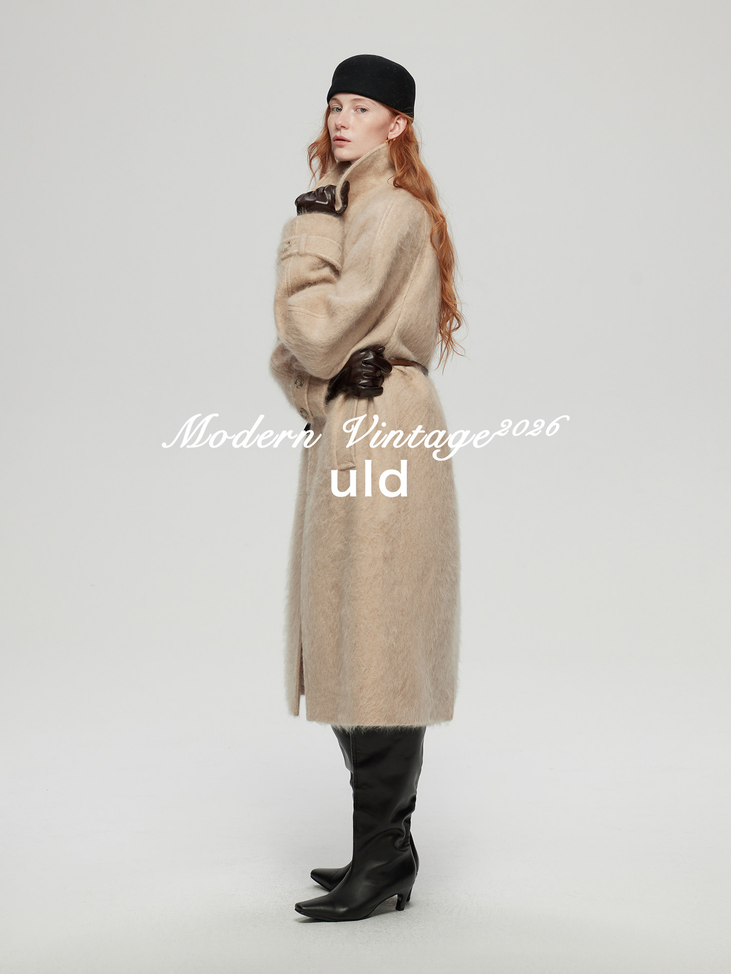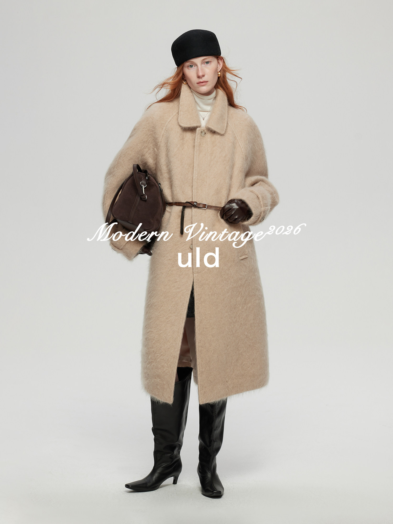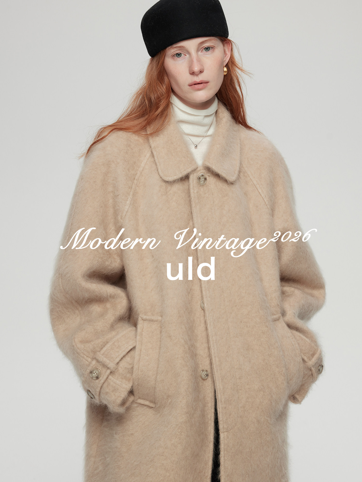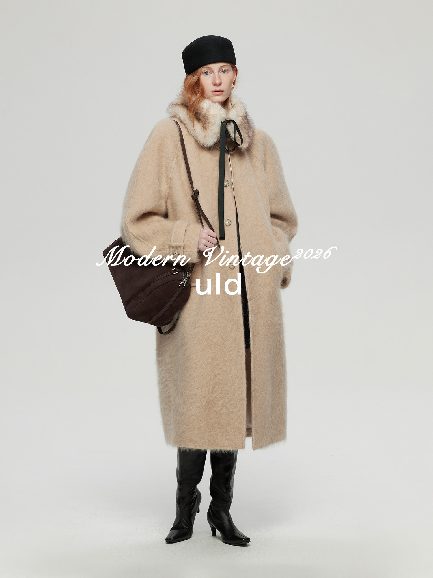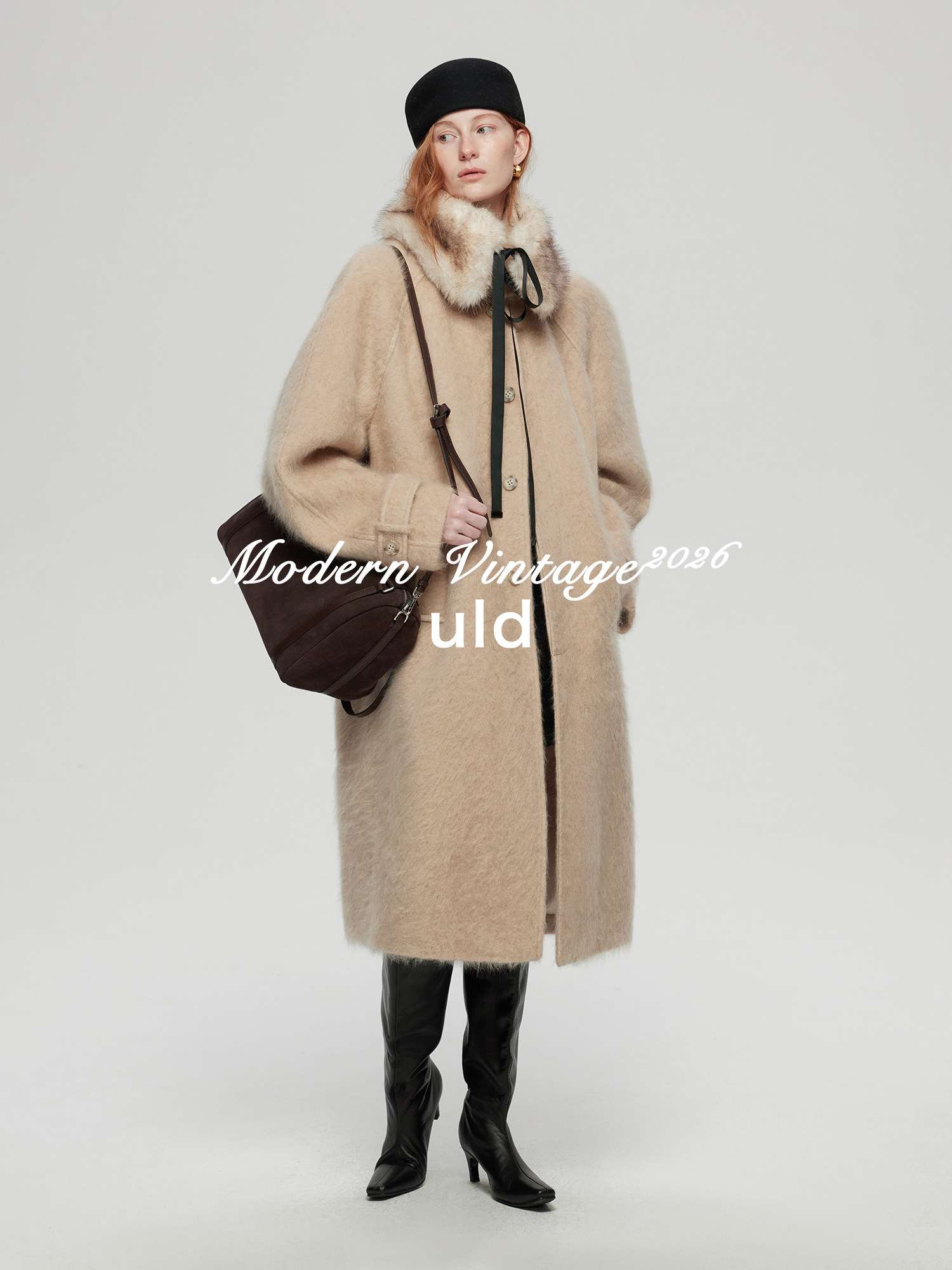Uld/Black Label Ofg Finland Snow Forest Festive Loop Wool Handmade Color-Blocking Cloud-Like Detachable Fur Collar Coat