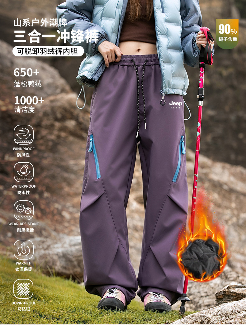 Jeep Three-In-One down Pants for Women, Winter 2025 New Model, Waterproof, Windproof, Mountaineering, Northeast Cold-Proof, Skiing, Assault Pants