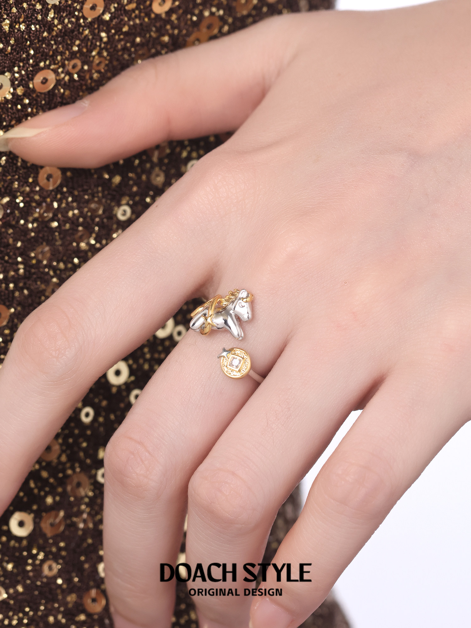 Doach Get Rich Now Ring Pure Silver Original Niche Design Minimalist Style High-End Feel Zodiac Year Horse Ring