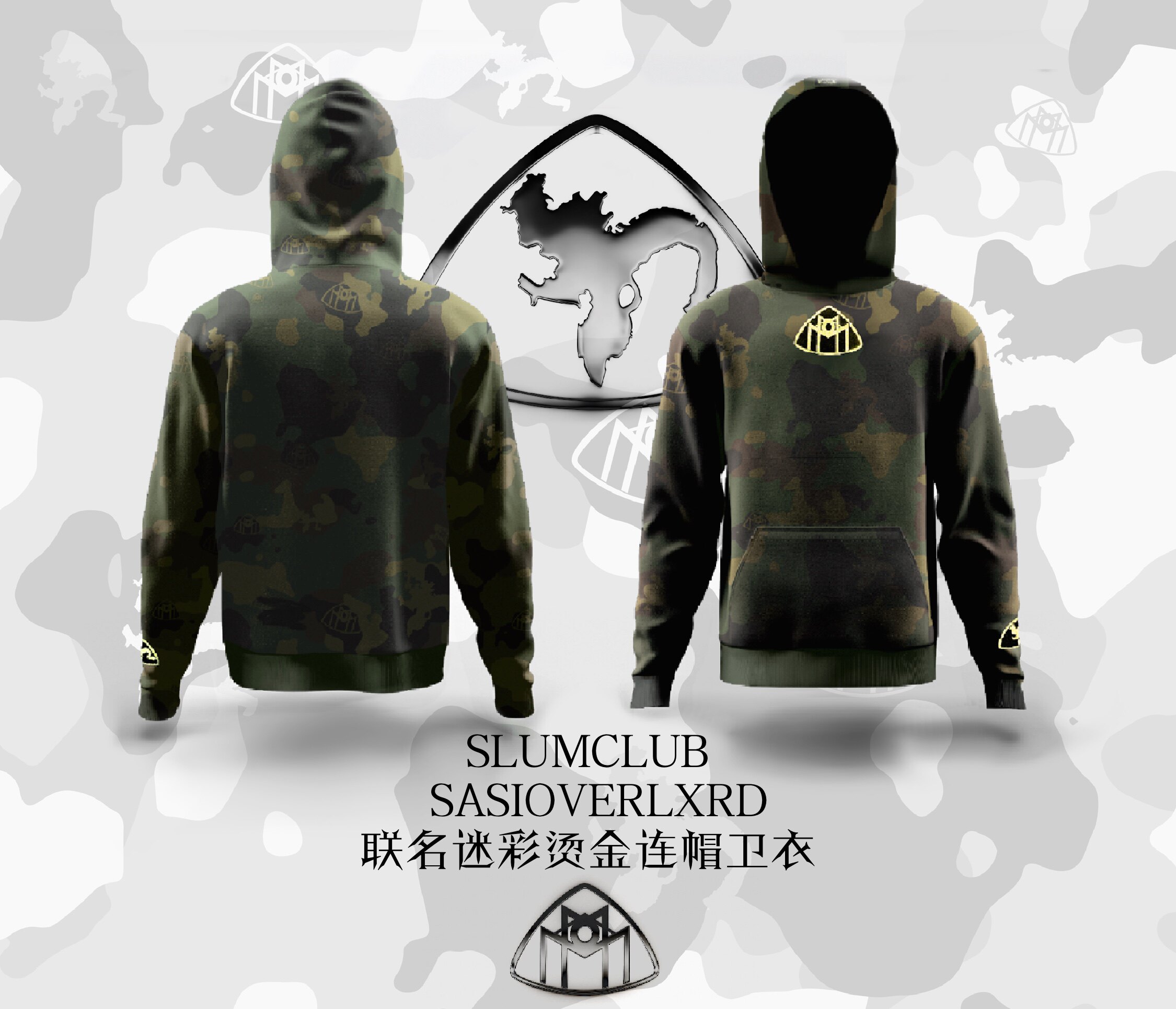 Authentic Sasioverlxrd Co-Branded Series Camouflage Gold-Stamped Autumn and Winter Slim-Fit Fleece-Lined Hooded Zip-Up Jacket Sweatshirt