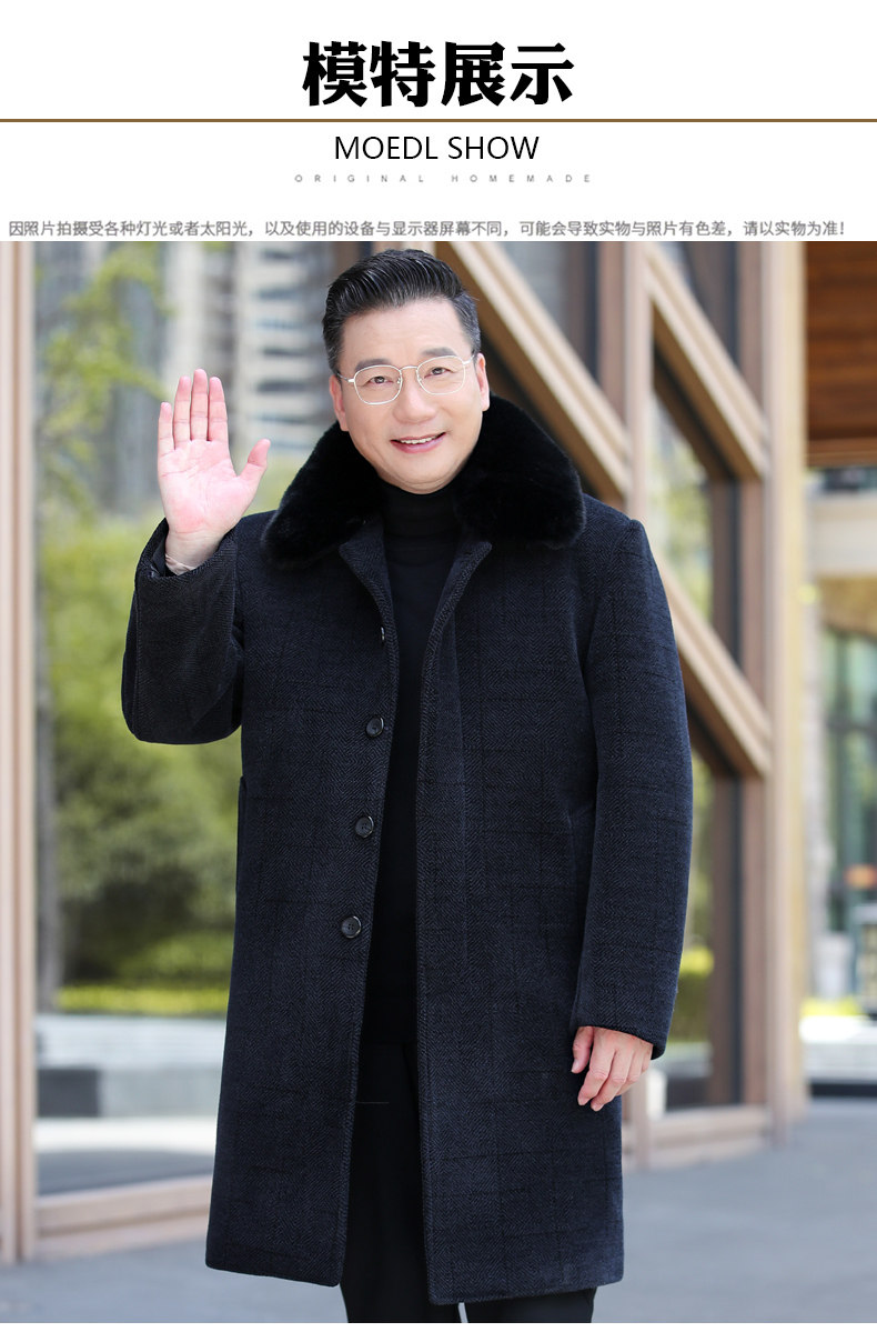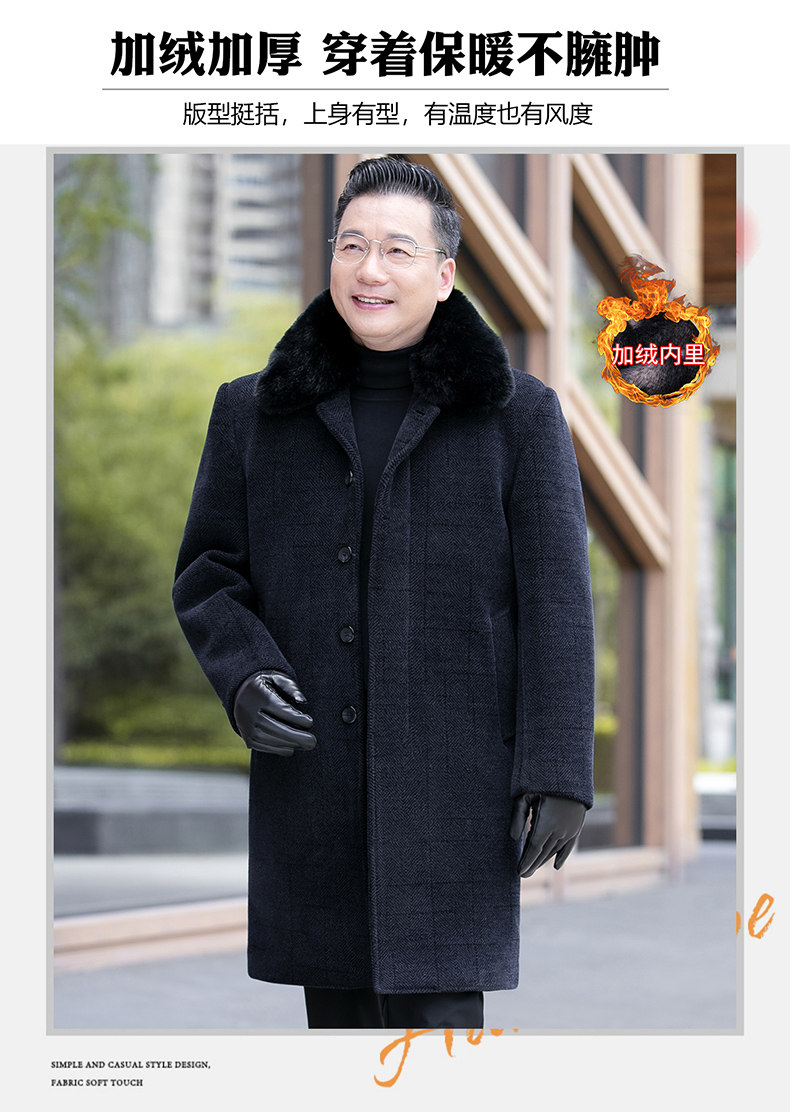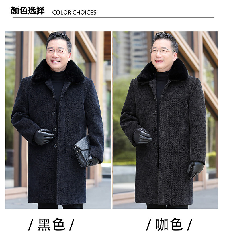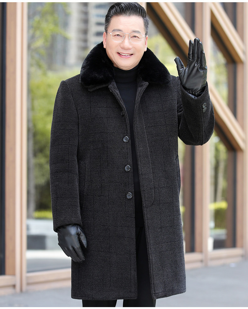 Middle-Aged and Elderly Men's Woolen Coat, Autumn and Winter Mid-Length Chenille Fleece-Lined Thickened Grandpa Winter Jacket
