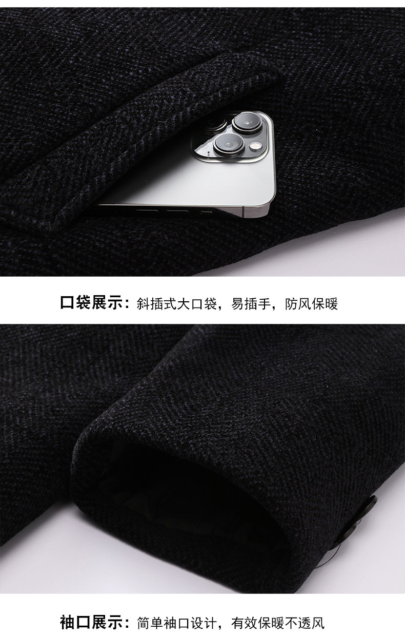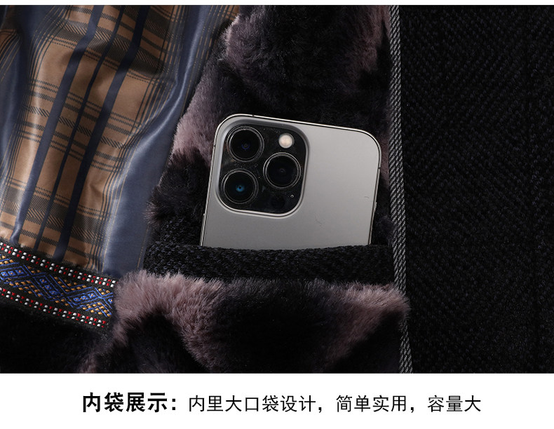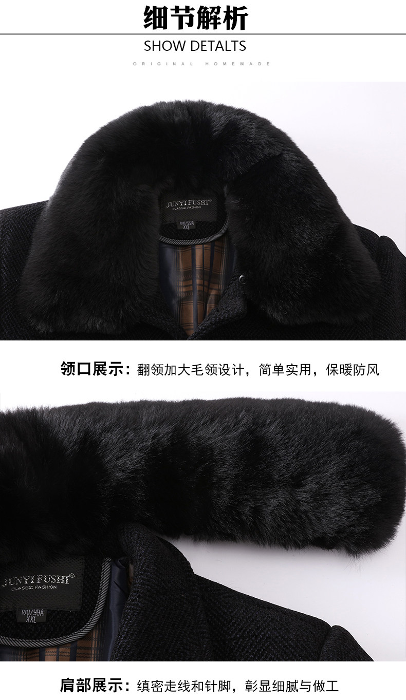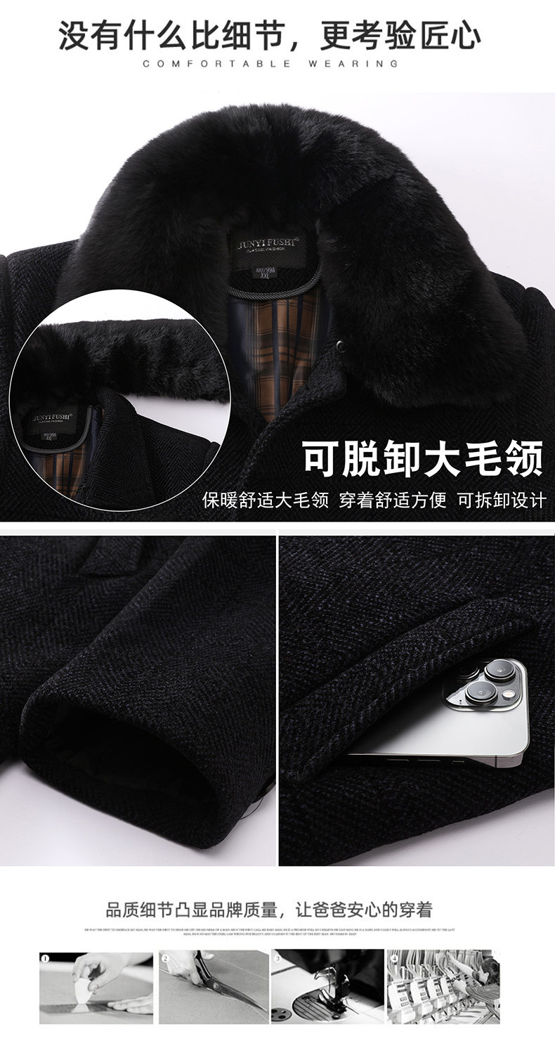 Middle-Aged and Elderly Men's Woolen Coat, Autumn and Winter Mid-Length Chenille Fleece-Lined Thickened Grandpa Winter Jacket
