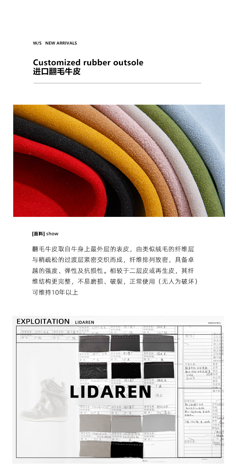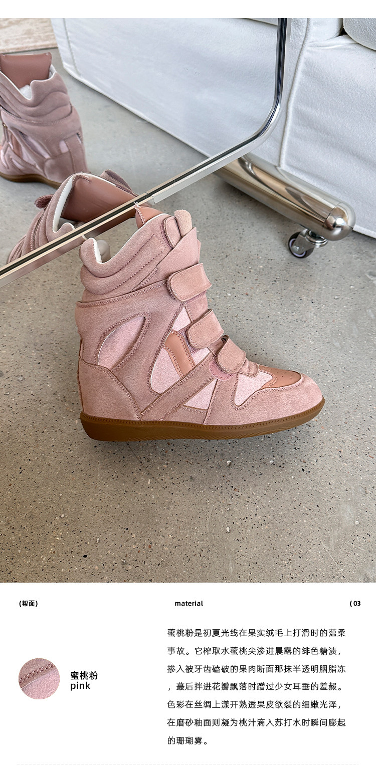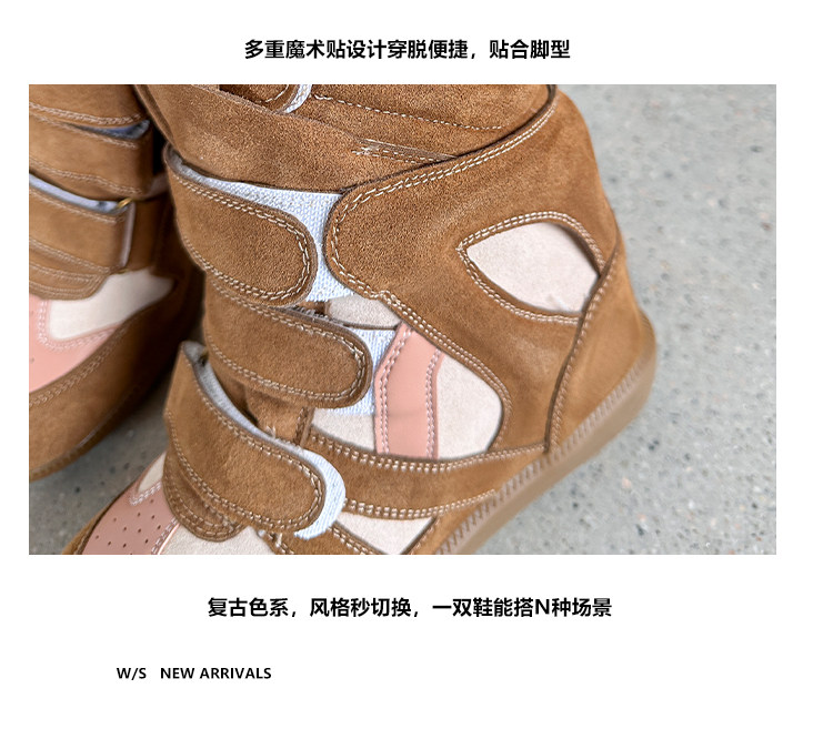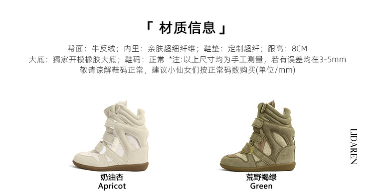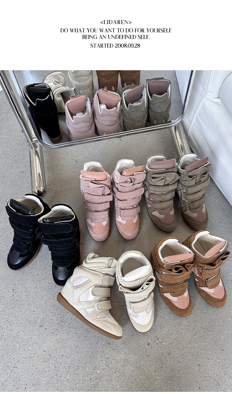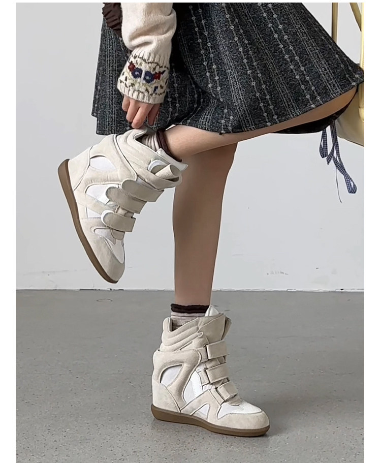 【Li Daren】Honey Armor ~ Genuine Leather High-Top Sneakers for Women with Velcro, Color-Blocking, Height-Increasing Casual Shoes