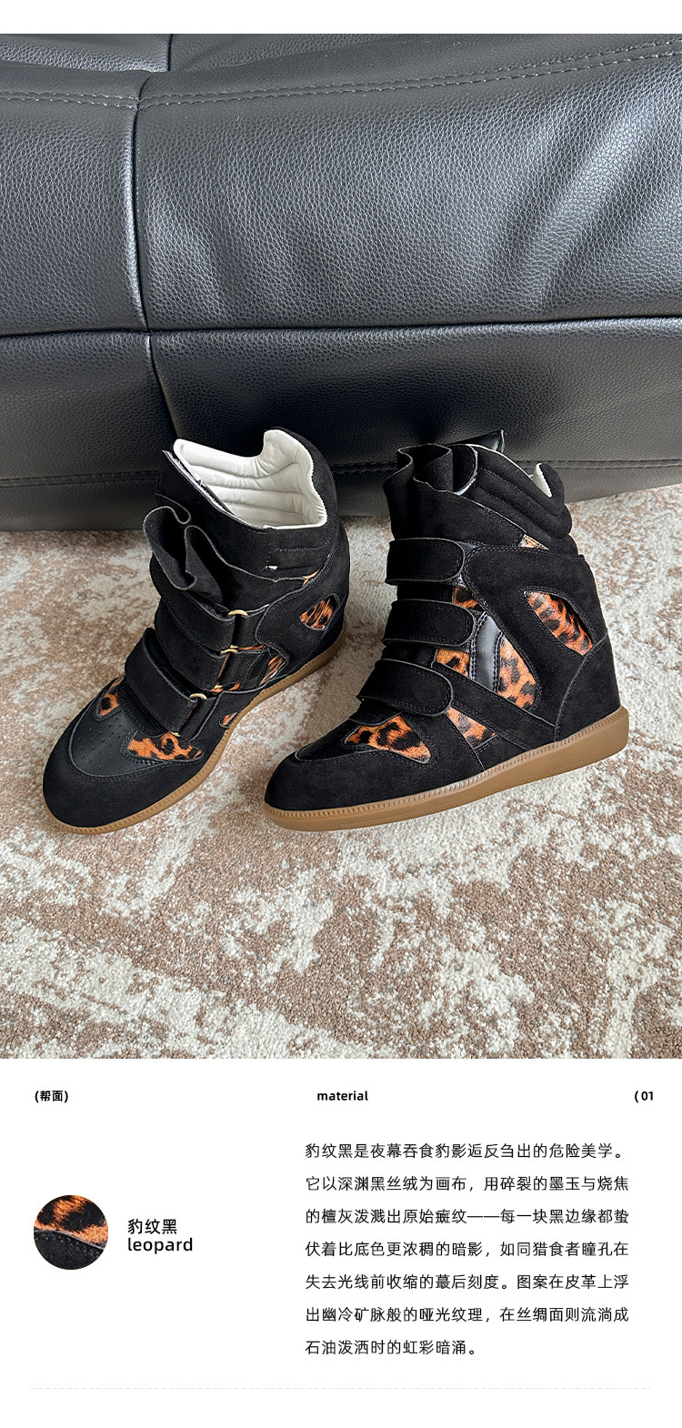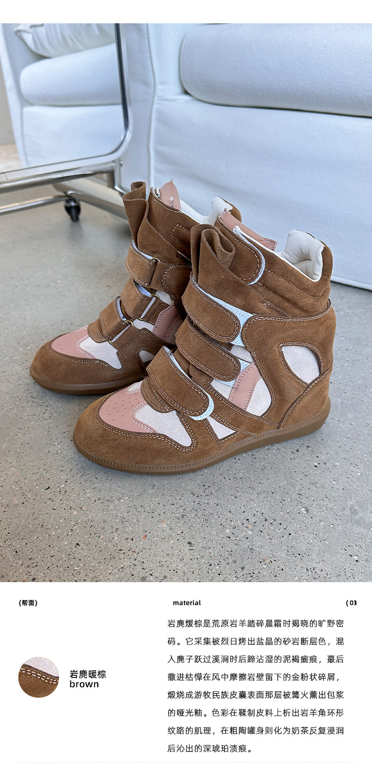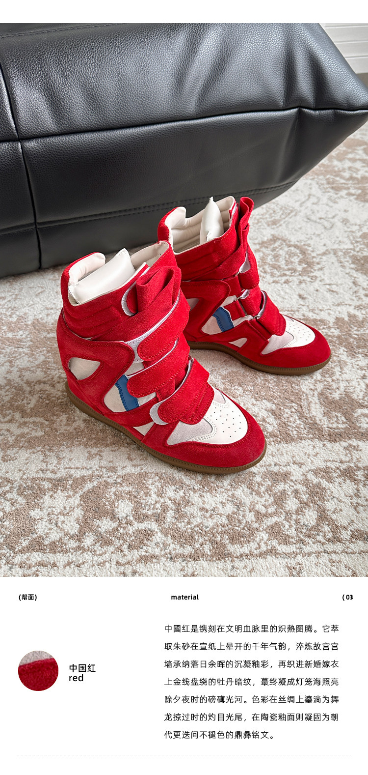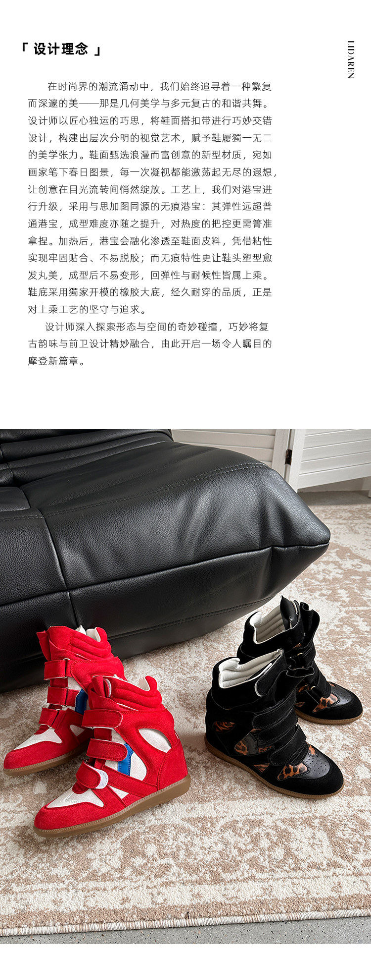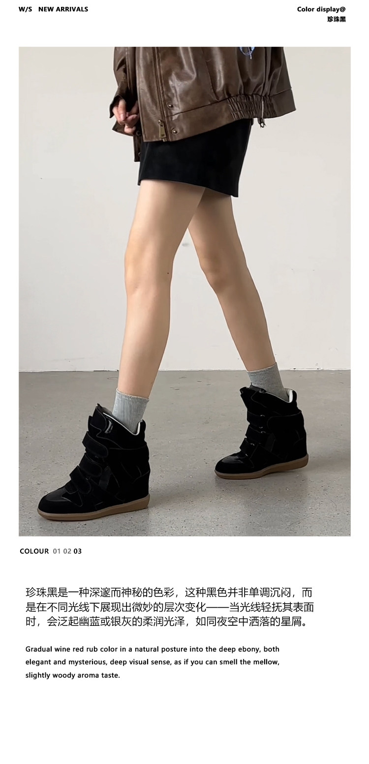 【Li Daren】Honey Armor ~ Genuine Leather High-Top Sneakers for Women with Velcro, Color-Blocking, Height-Increasing Casual Shoes