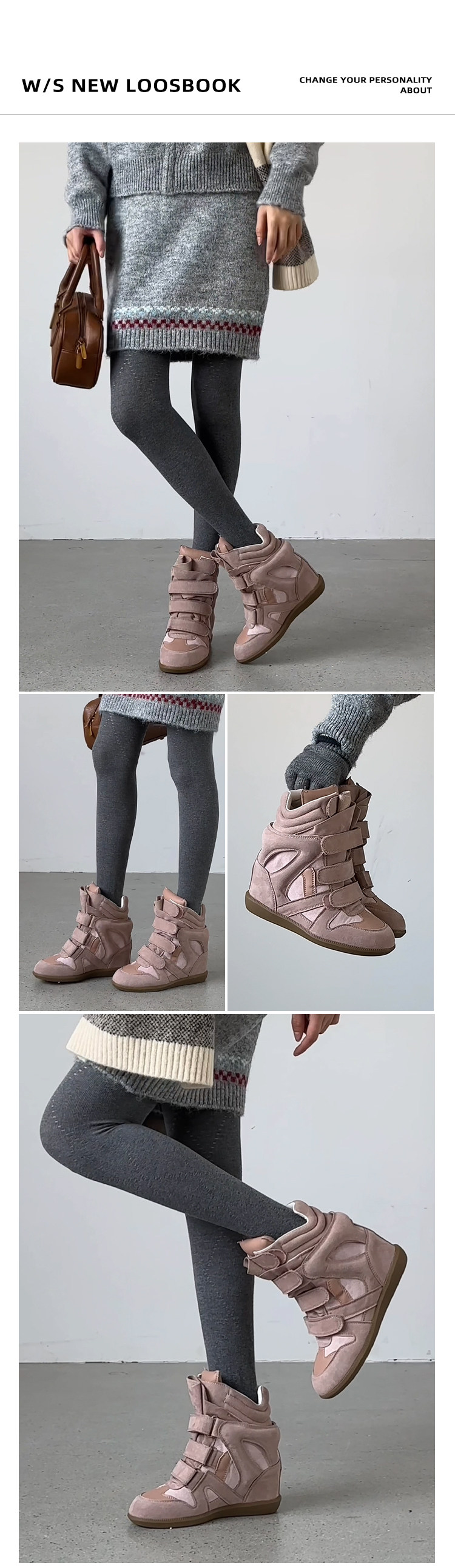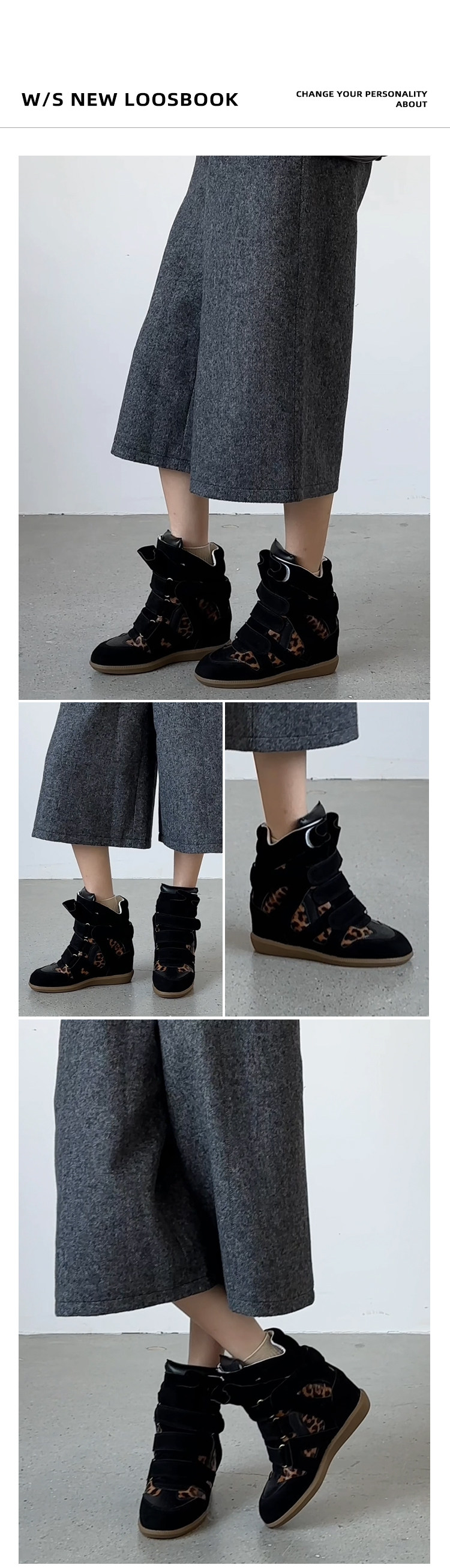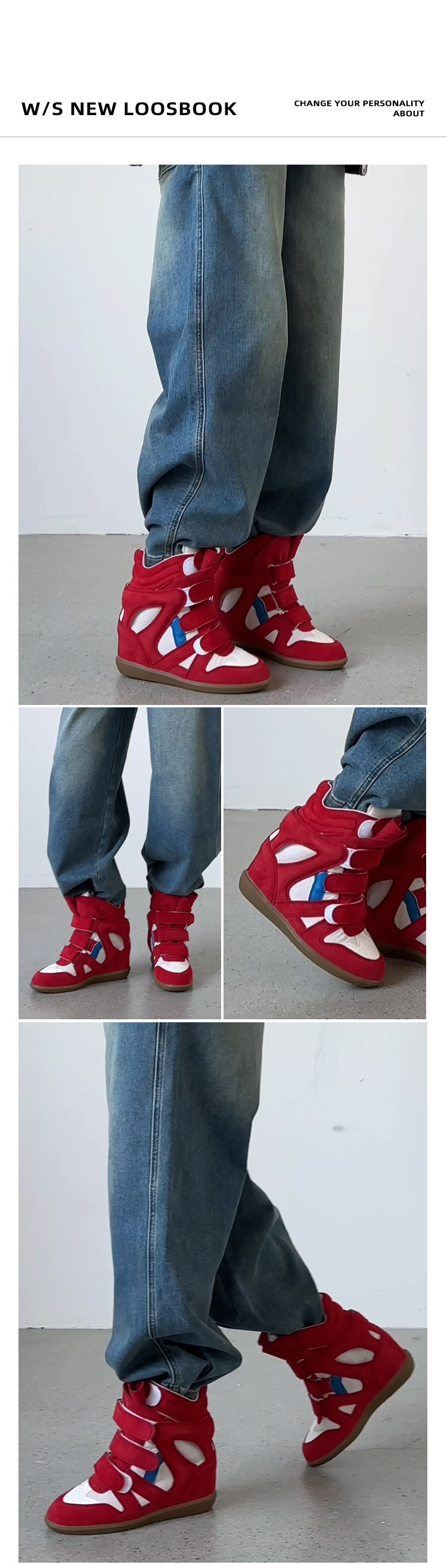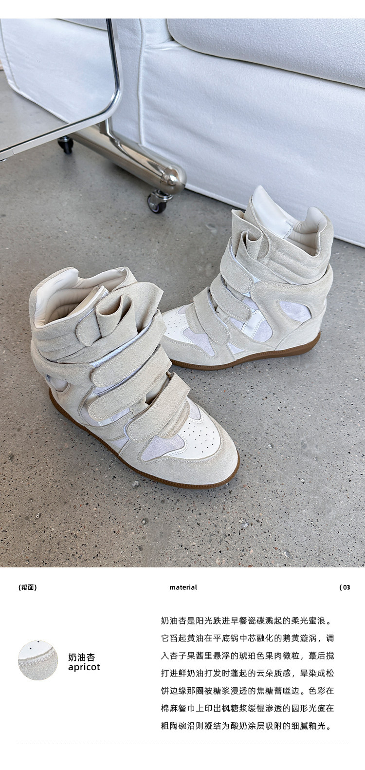 【Li Daren】Honey Armor ~ Genuine Leather High-Top Sneakers for Women with Velcro, Color-Blocking, Height-Increasing Casual Shoes