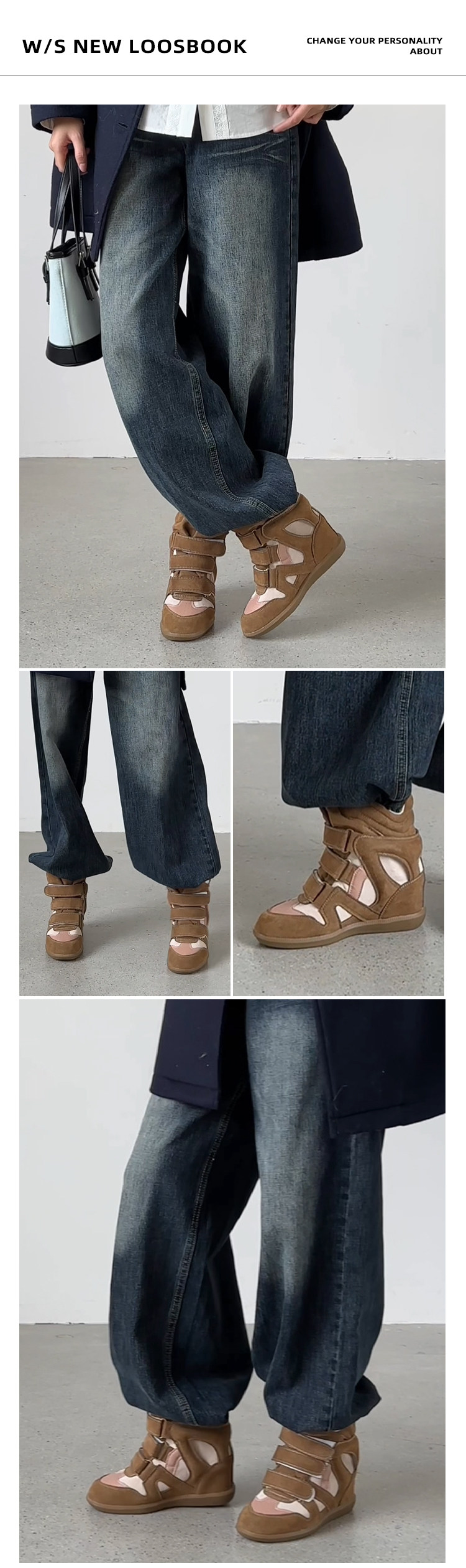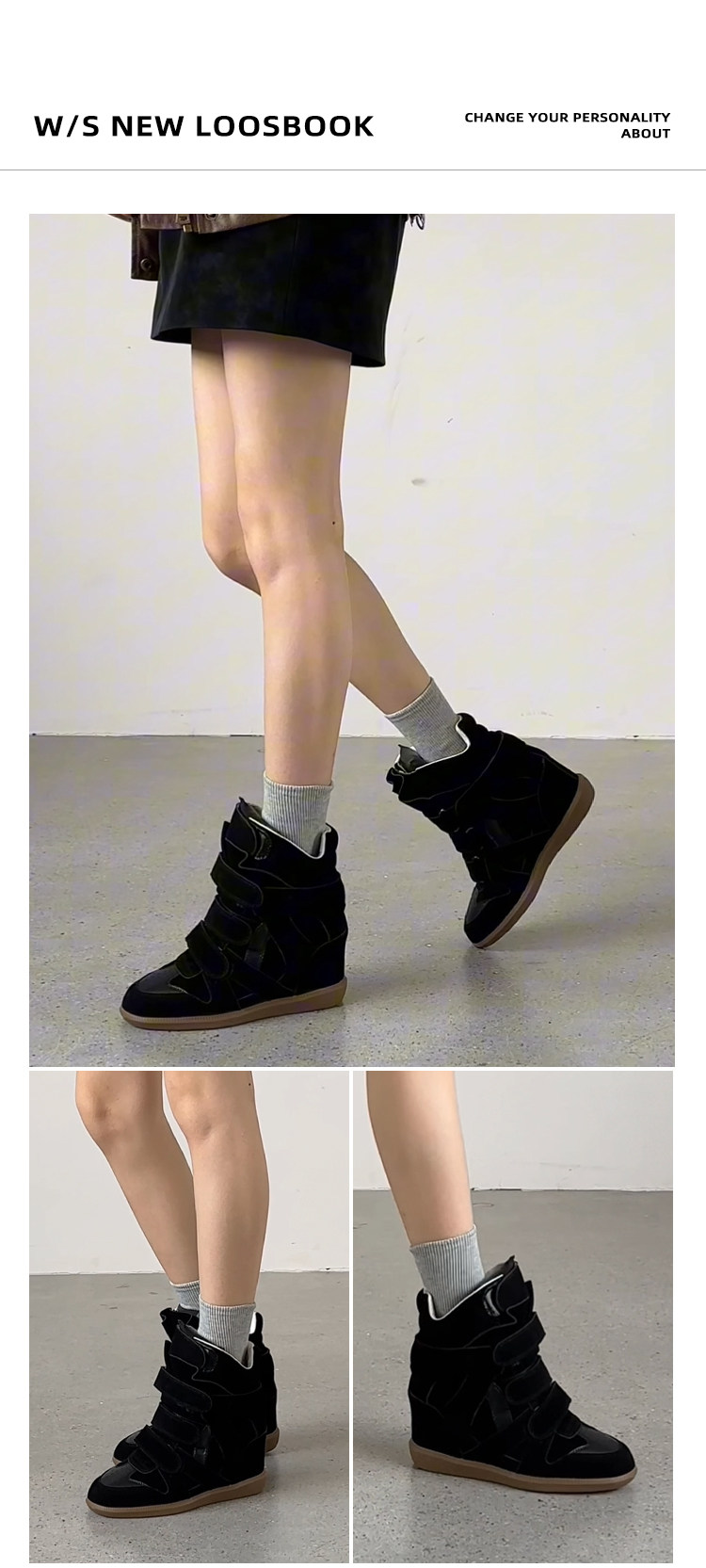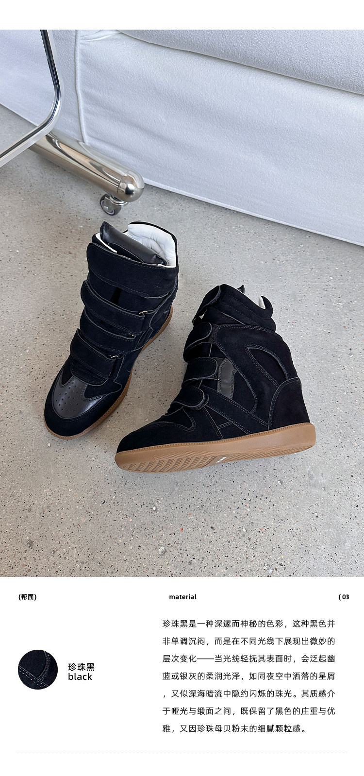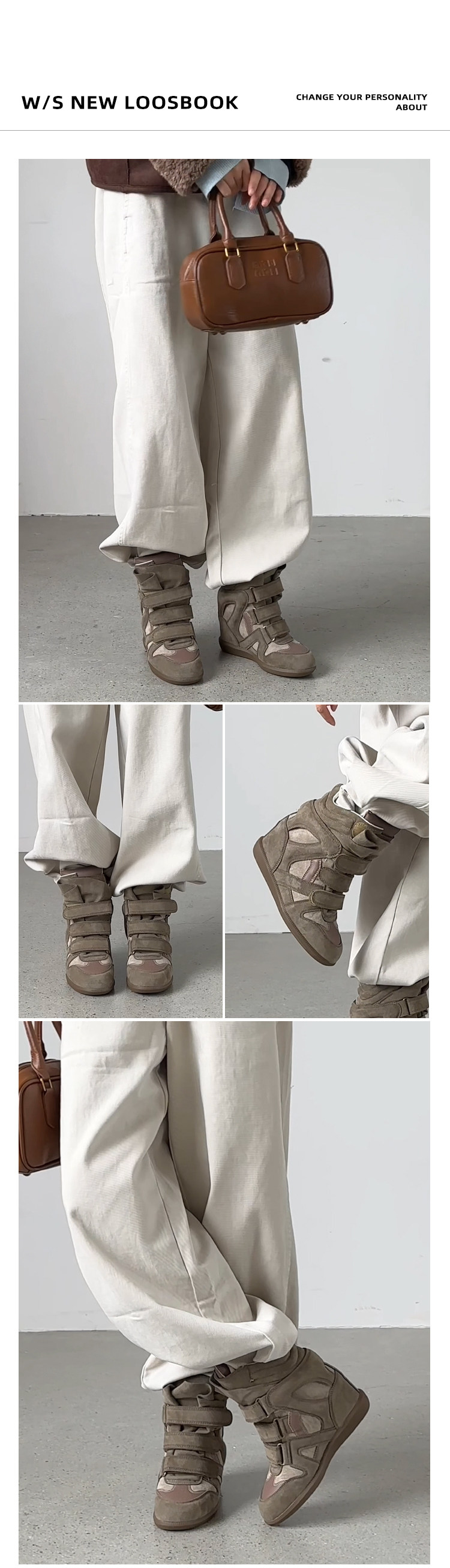 【Li Daren】Honey Armor ~ Genuine Leather High-Top Sneakers for Women with Velcro, Color-Blocking, Height-Increasing Casual Shoes