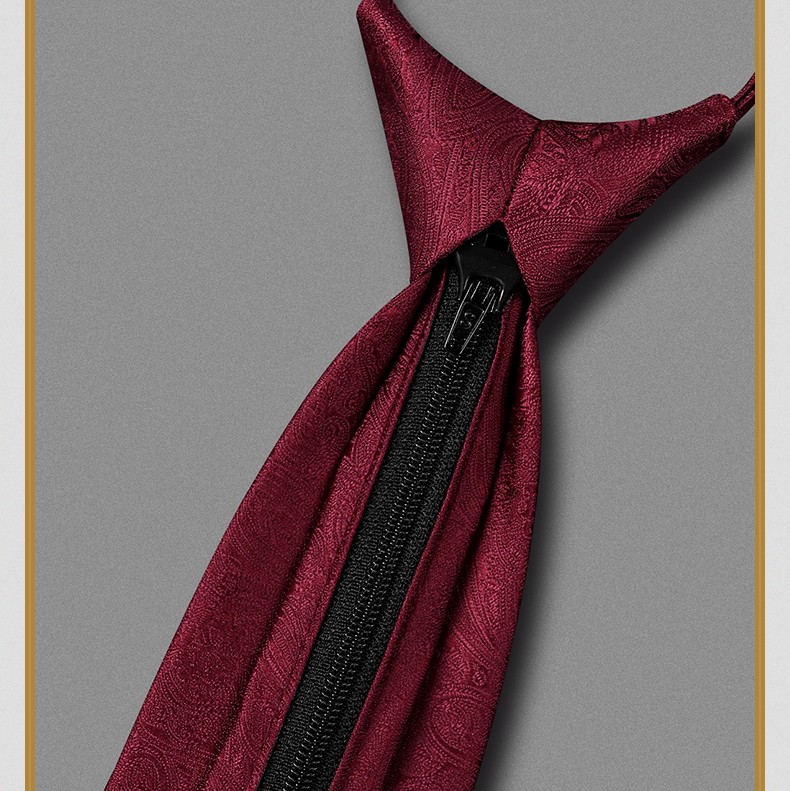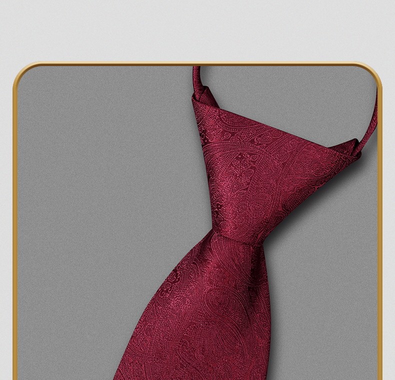 Red Paisley Wedding Tie for Men, Zipper Style, Groom's Wedding, High-End Formal Suit, Business Men's Tie, No Need to Tie