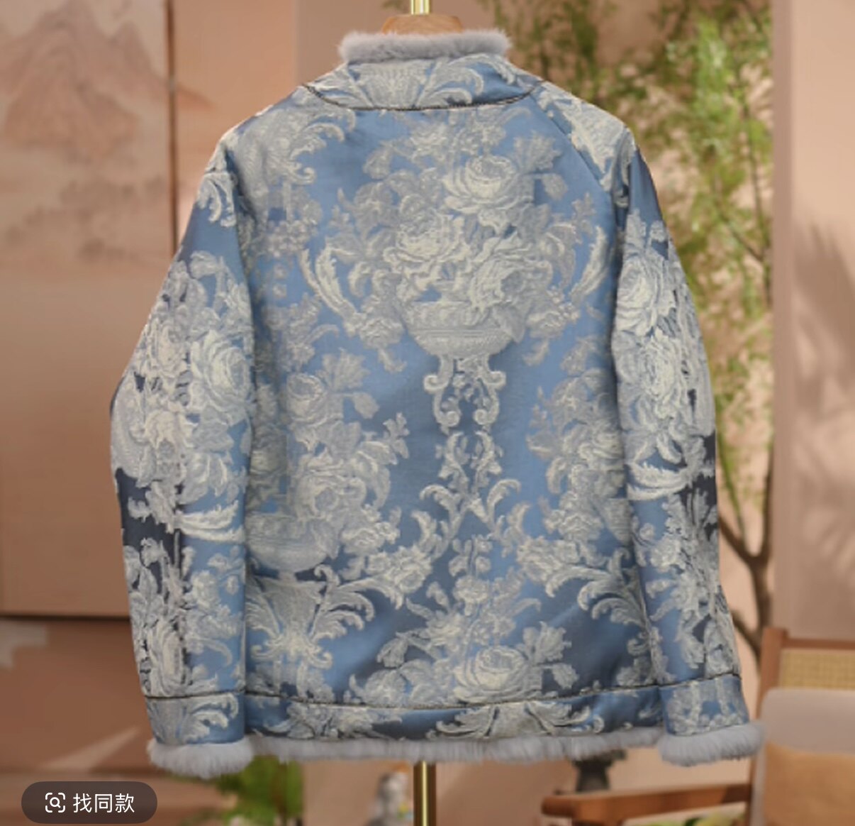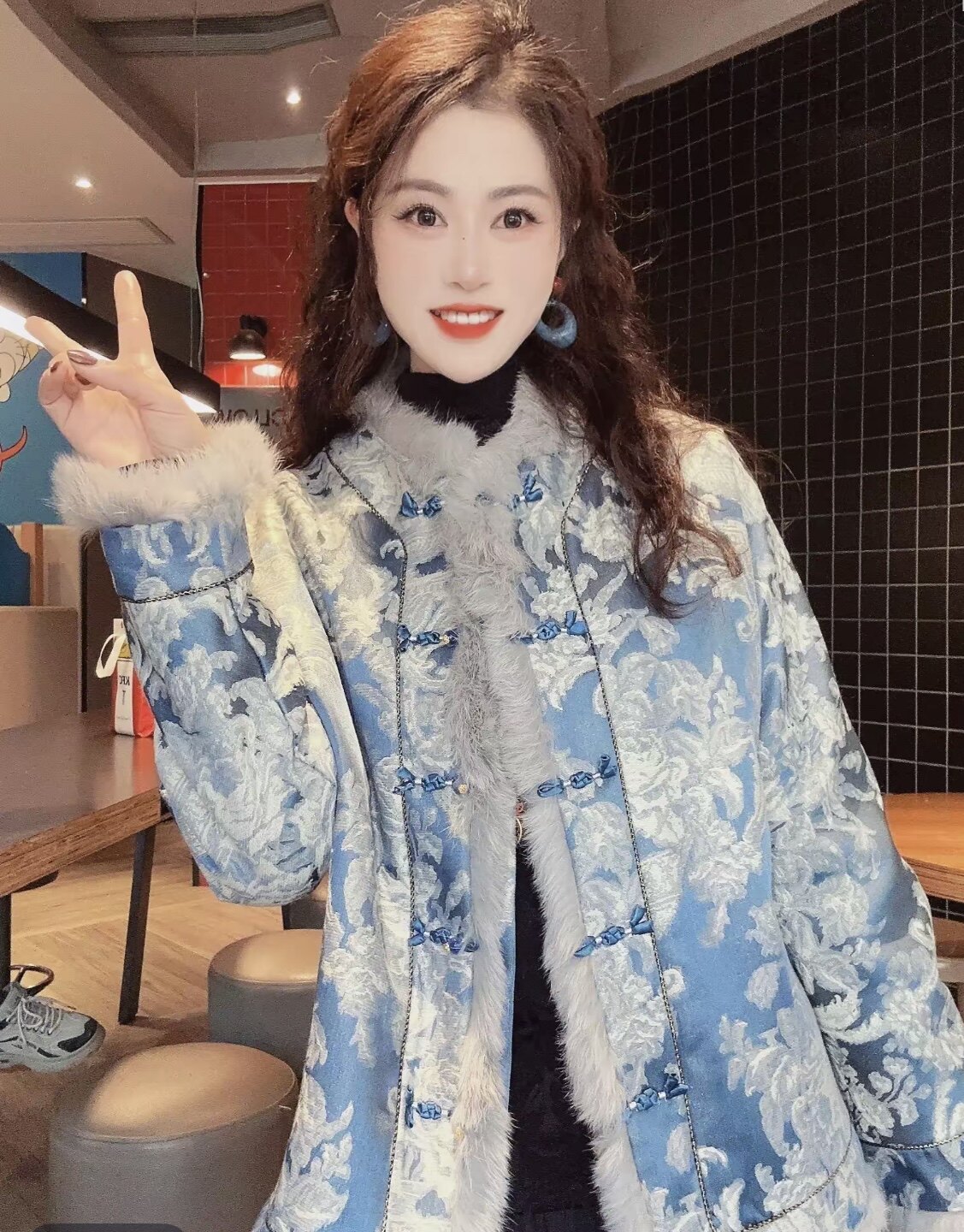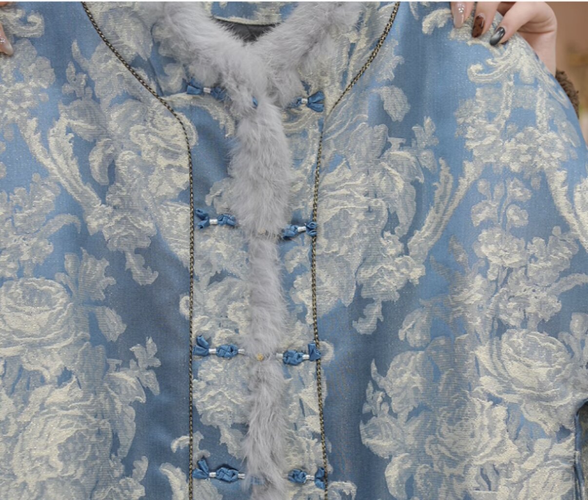 [Blue and White] New Chinese-Style Blue and White Porcelain Rabbit Fur Winter Warm Top with Handmade Button Fastening and Traditional Chinese Style