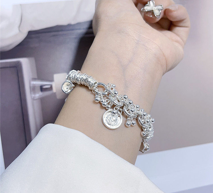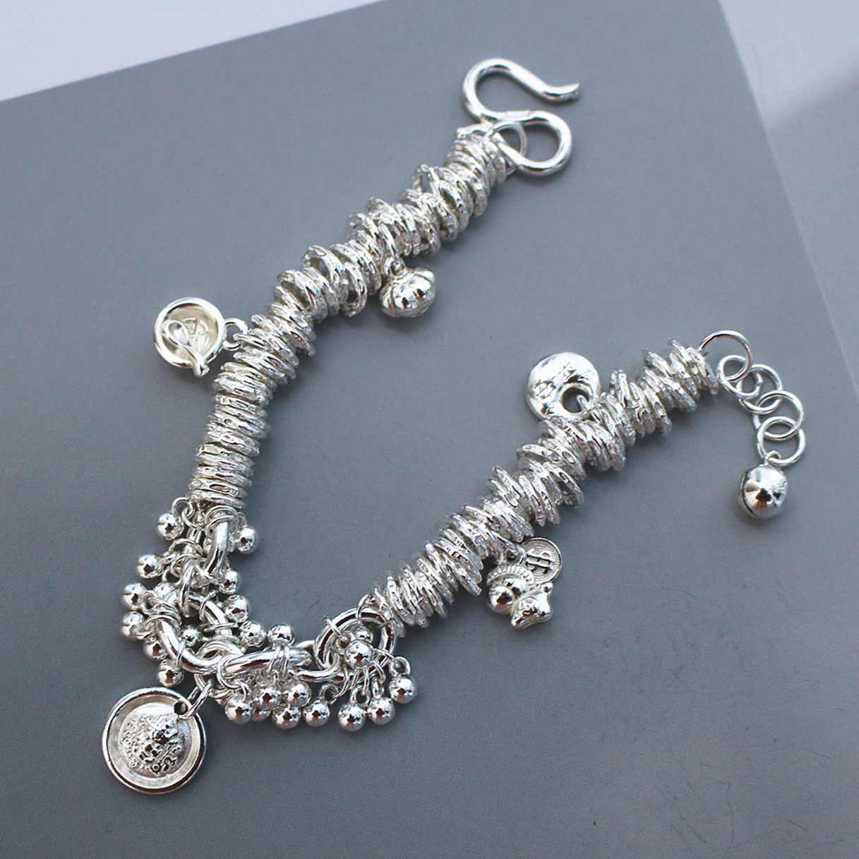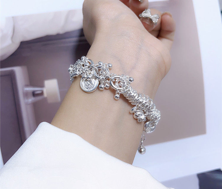S999 Abundant Wealth Yellow God of Wealth Instant Wealth Pumpkin Peace Lock Solid Silver Bracelet Pure Silver Bead Bracelet