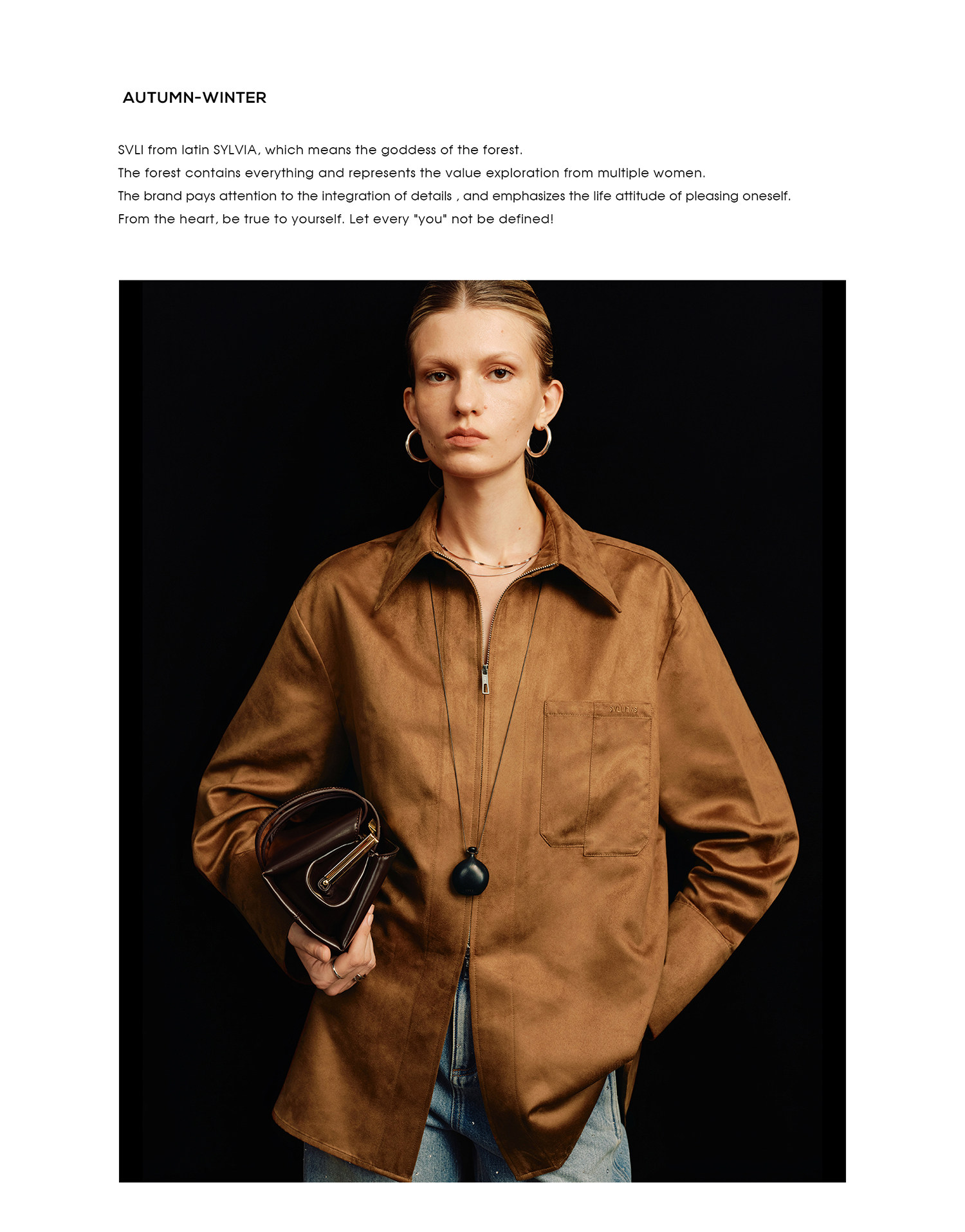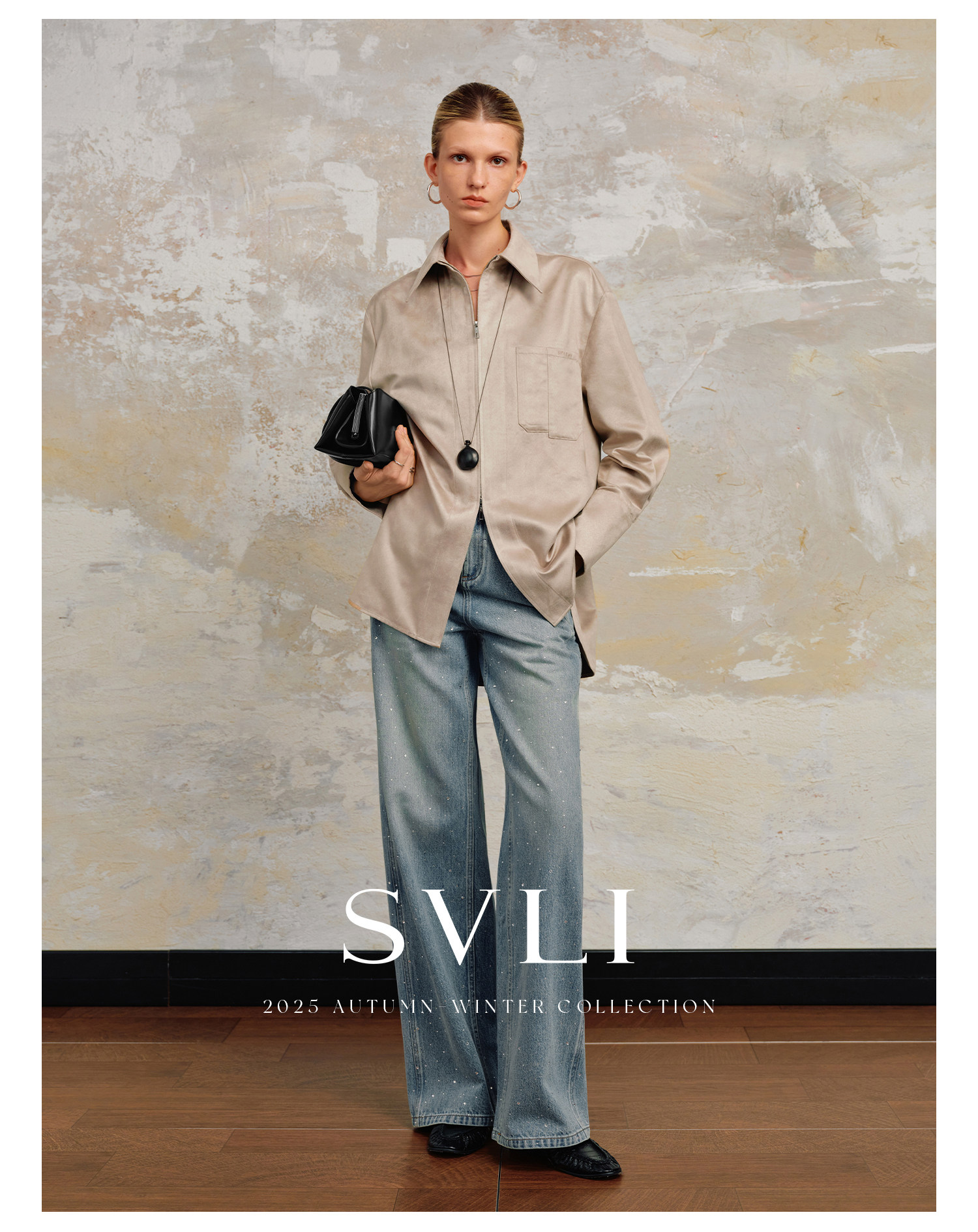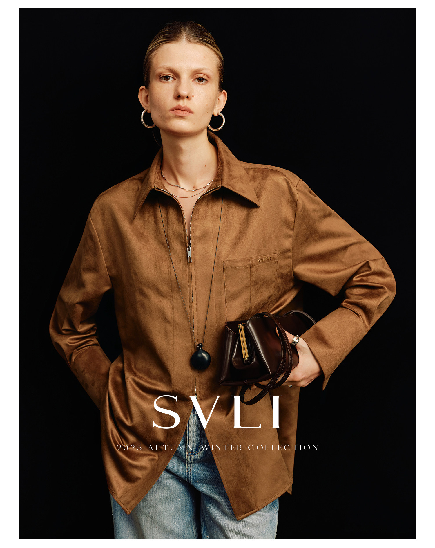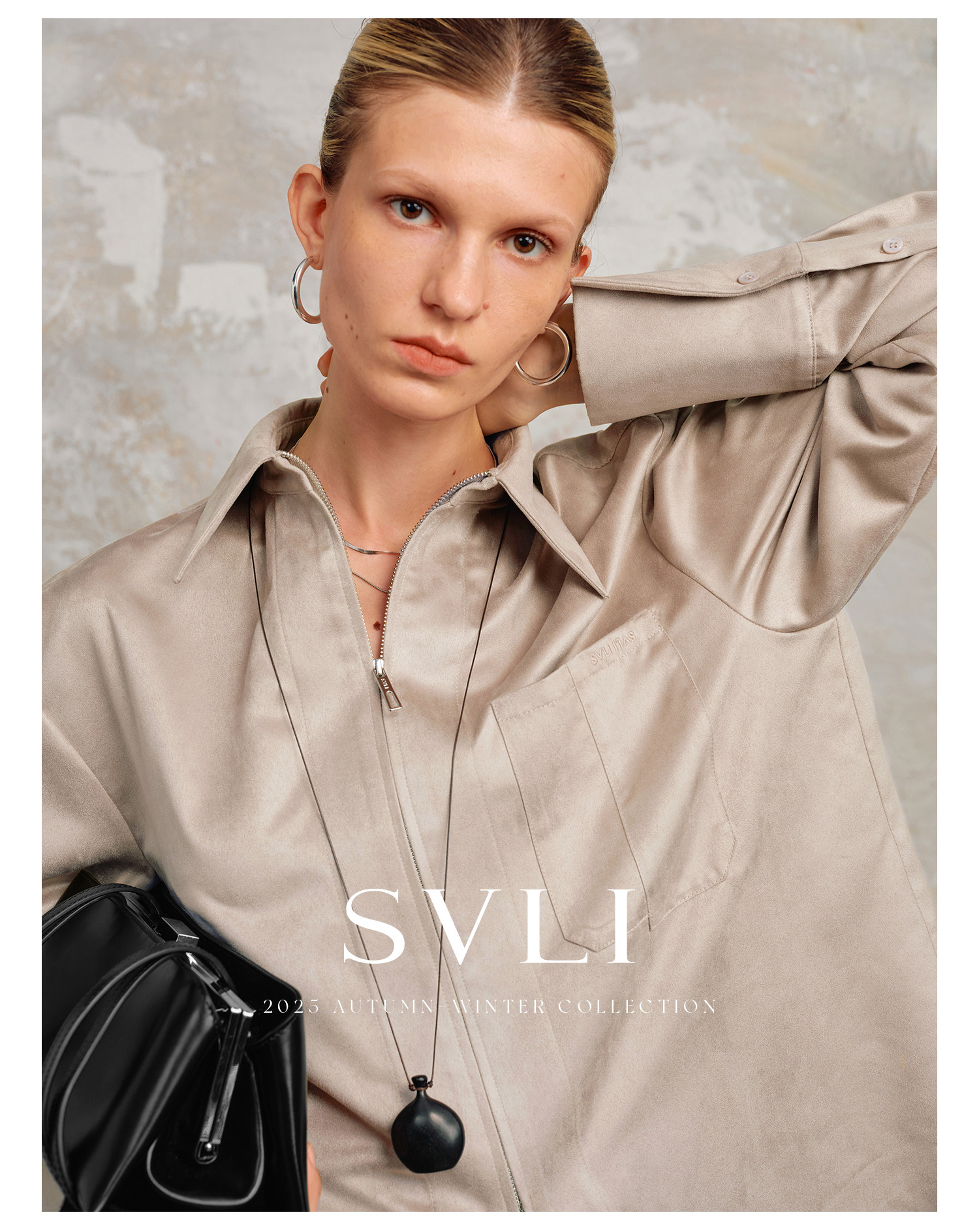 Svli|'Two-Way Journey' Series Soft Suede-Like Embroidered Two-Way Zipper Oversized Shirt Jacket