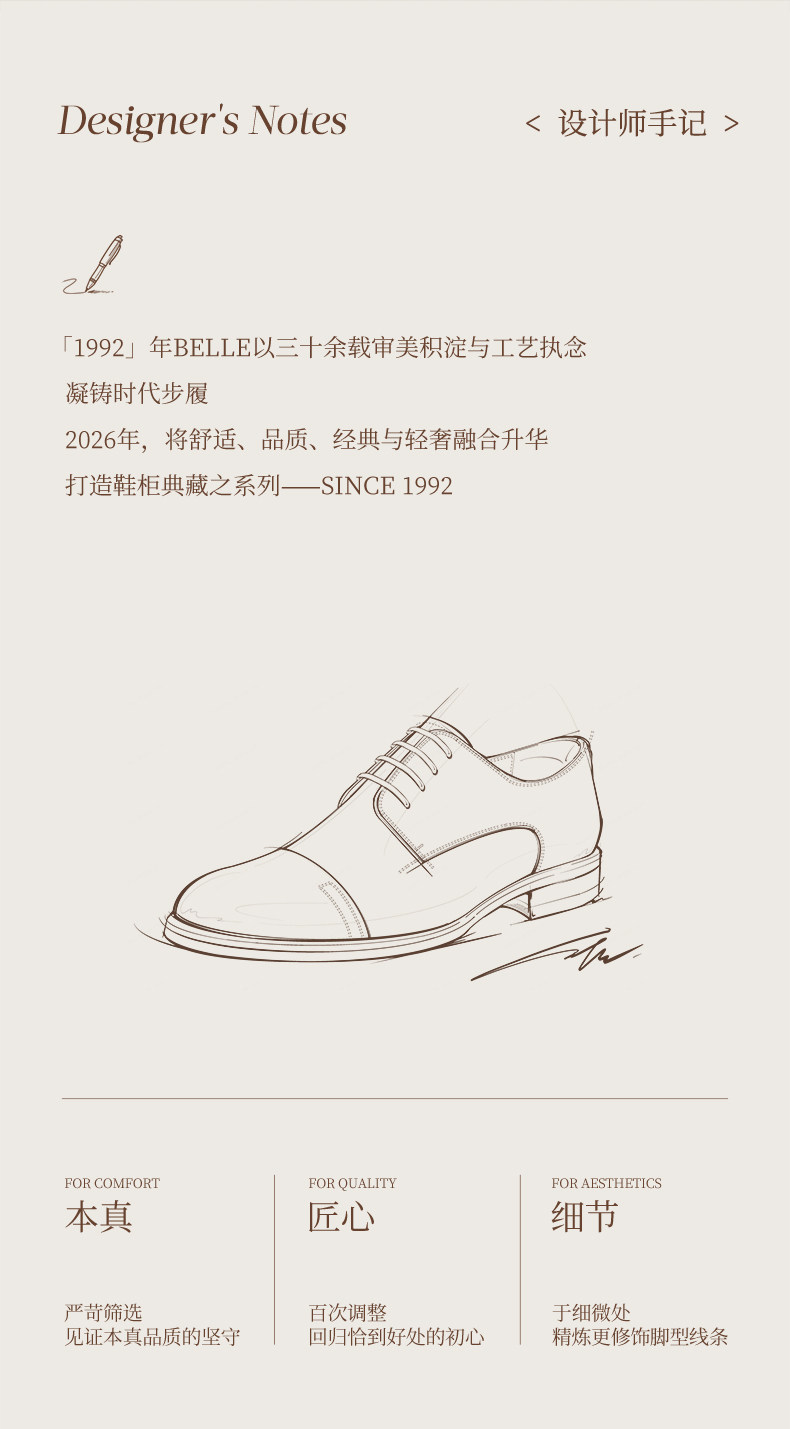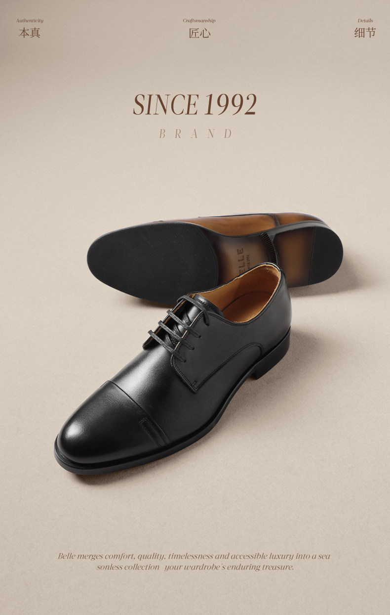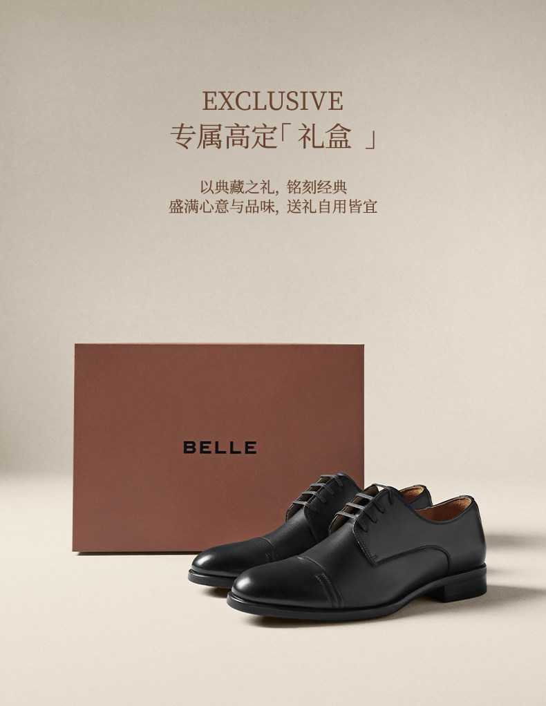 【92 Series】Belle Men's Shoes Gift Box Set Three-Strap Cowhide British Style Business Men's Formal Shoes H9005Am6