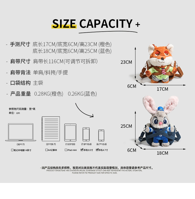 Ur Bag for Women, Cute Plush Doll Bag, Gift for Girls, Zootopia Nick and Judy Doll Bag, Shoulder Crossbody Bag