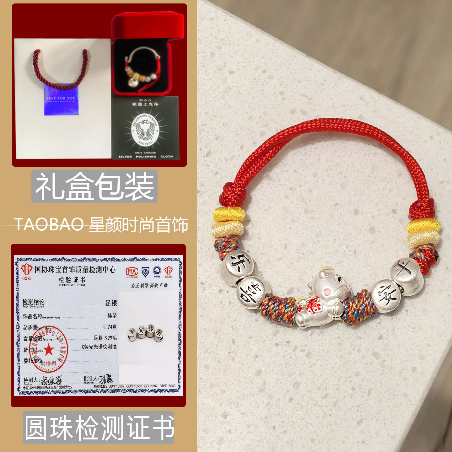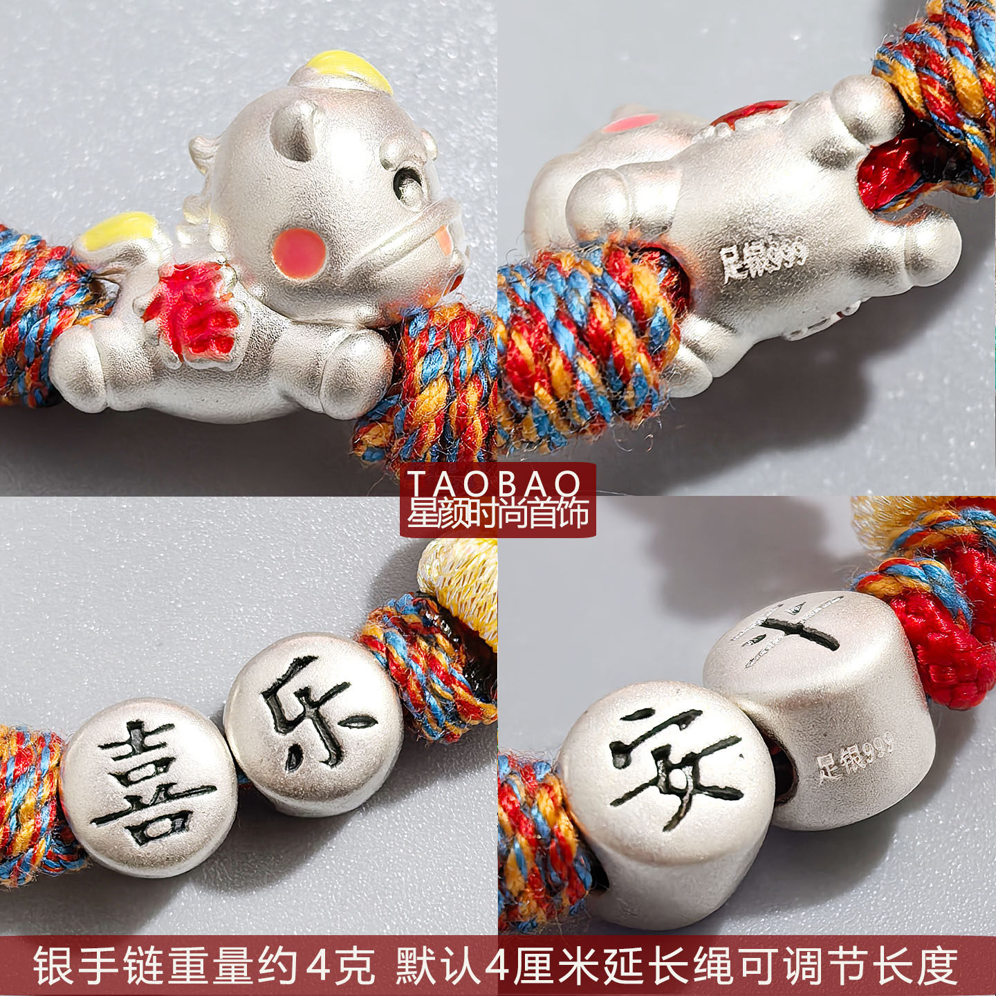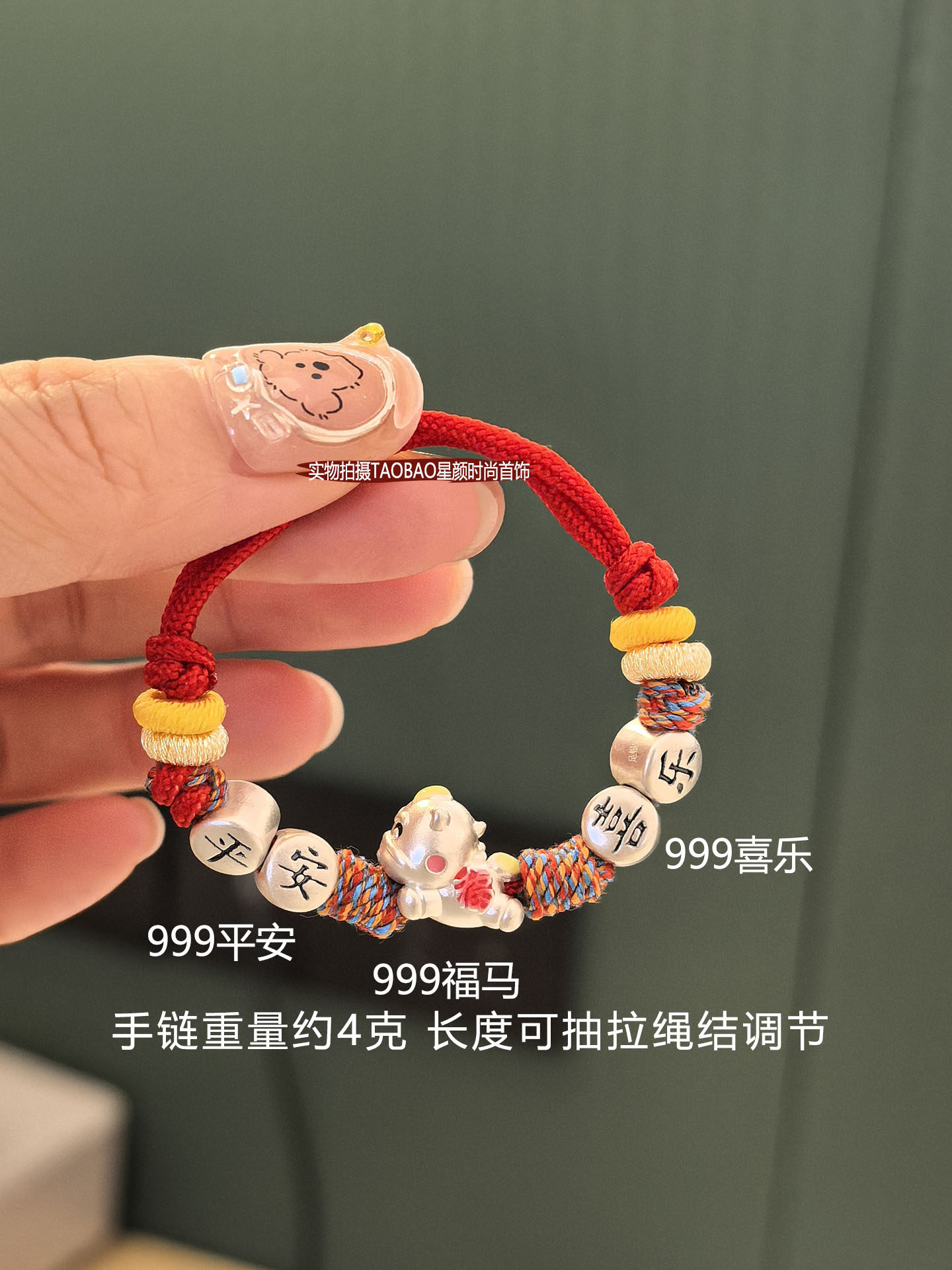 Baby 999 Pure Silver Year of the Horse Peace and Joy Red String Bracelet for Boys and Girls, Infant Full Moon Gift, Pure Silver Zodiac
