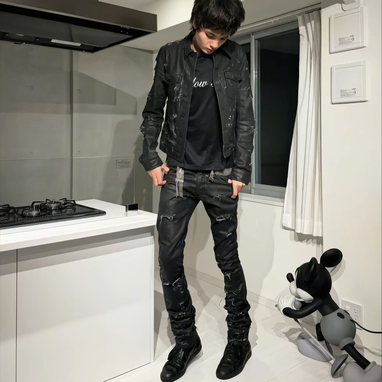 [in Stock] D Brand Hedi Style Distressed Waxed Denim Jacket High Street Luxury Fashion Casual Versatile