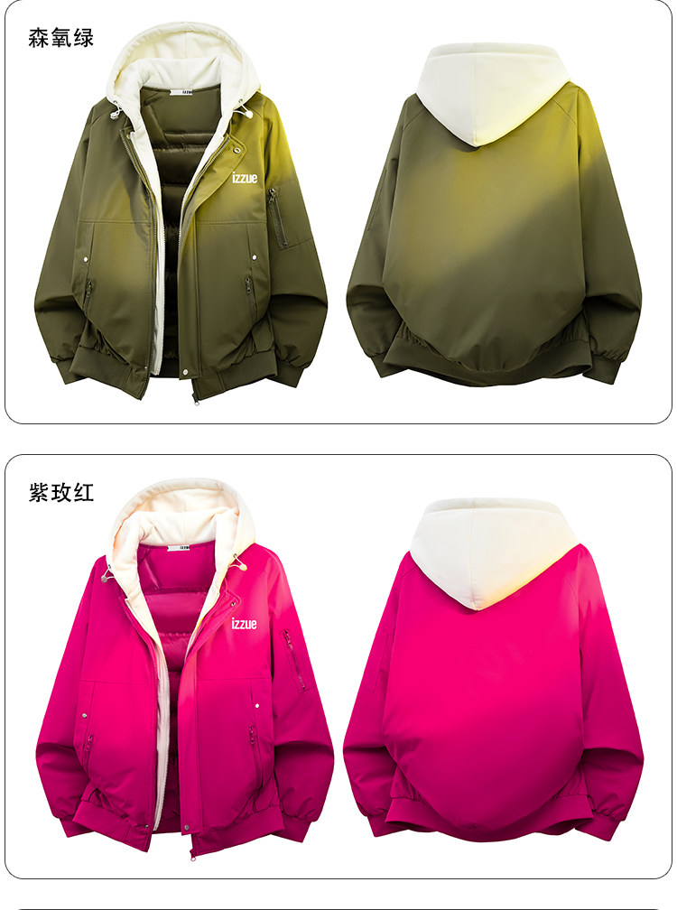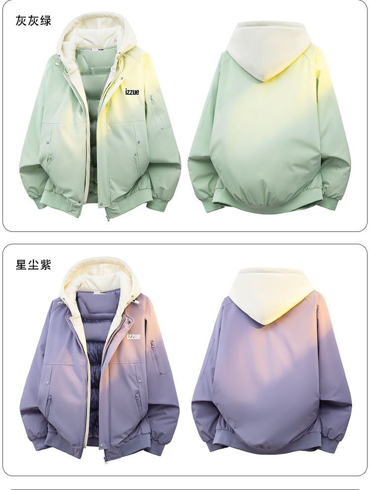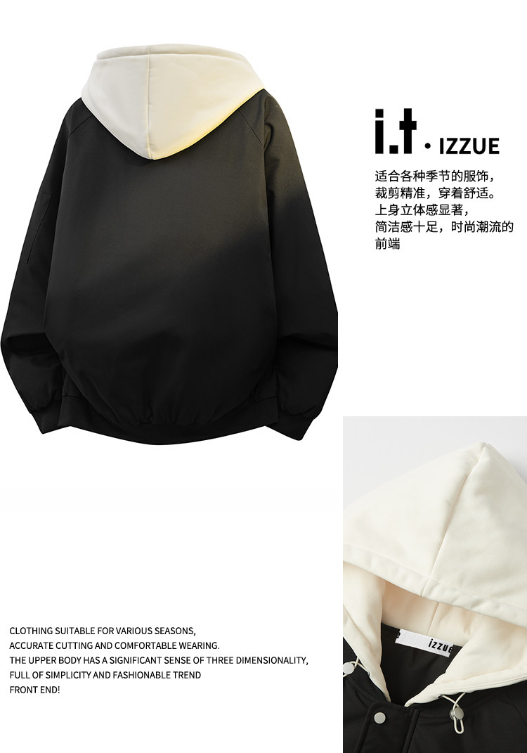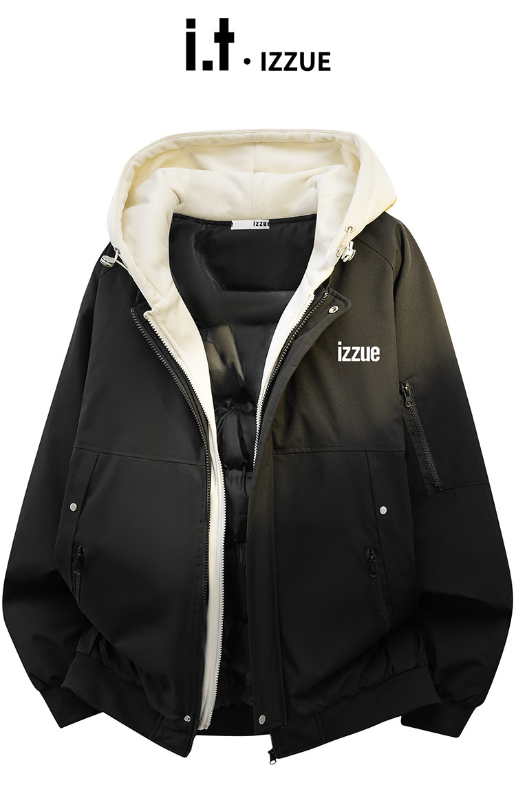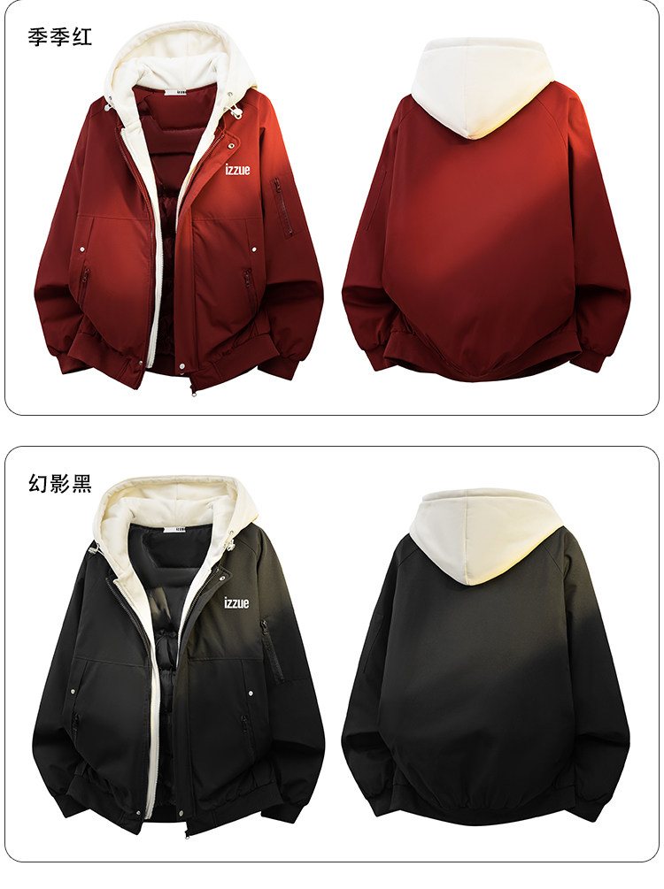 Itizzue Official American Retro Style Fake Two-Piece Hooded Cotton Jacket for Men, Spring Thickened Warm Couple's Coat Y