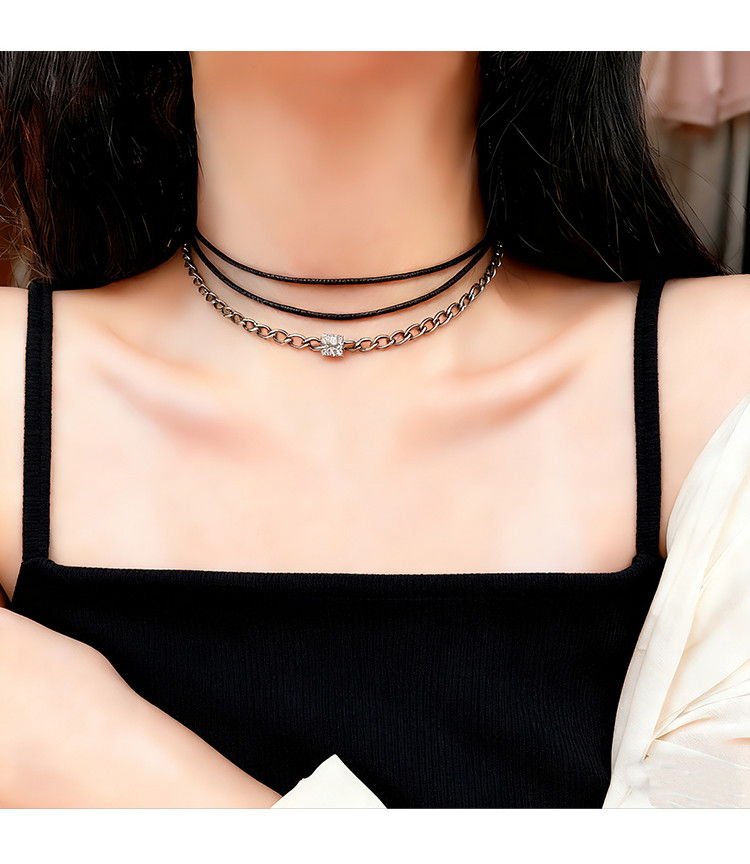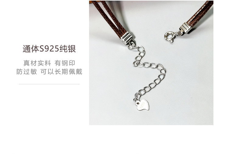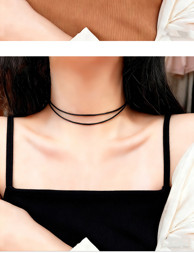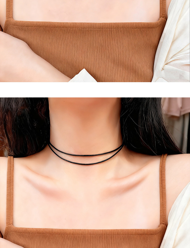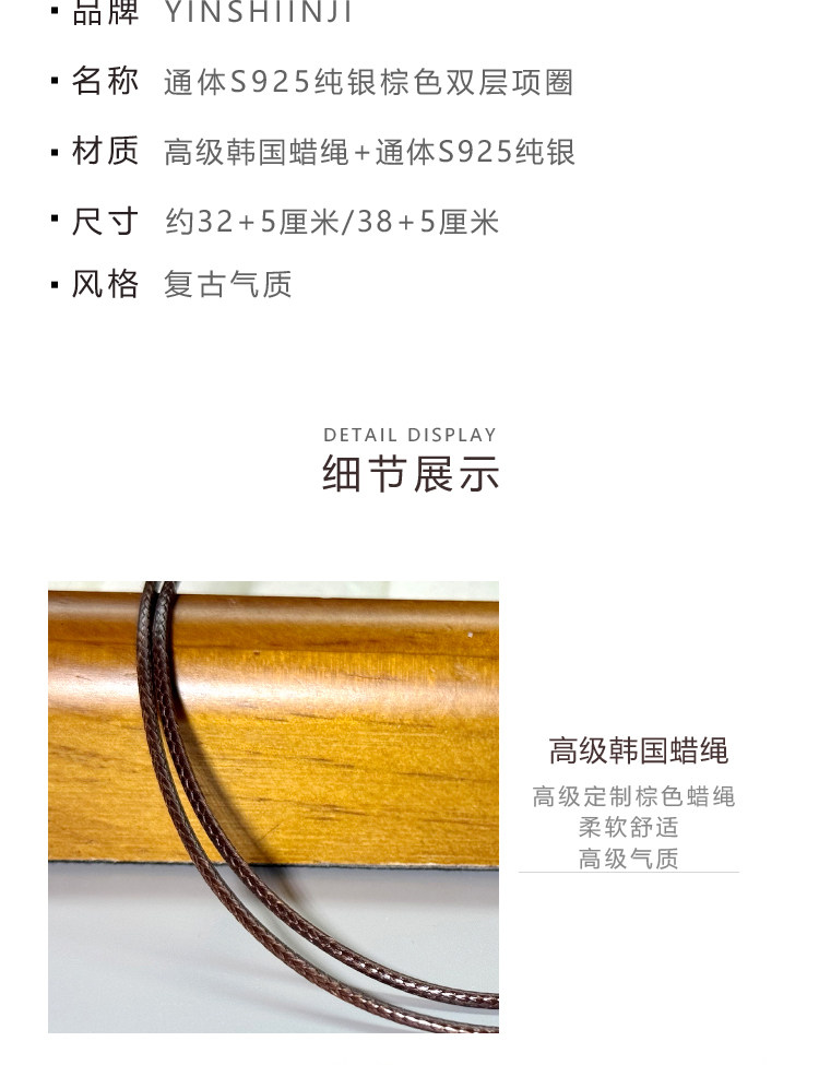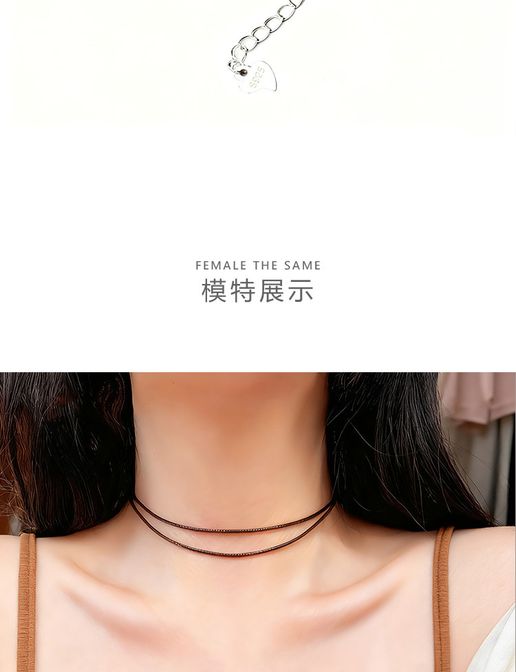 S925 Sterling Silver Zhao Lusi Style Choker Necklace for Women, Brown Double-Layer Clavicle Chain, Niche Pendant Rope