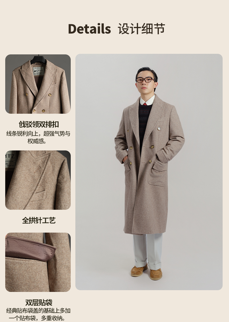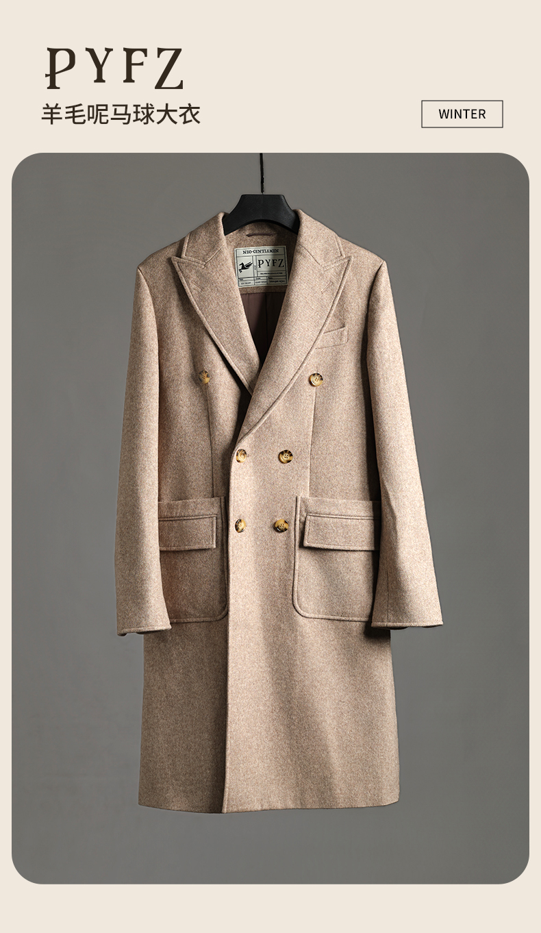 【50% Wool Polo Coat】Flat Round Square Collar Double-Breasted Woolen Winter Long Double-Sided Wool Coat