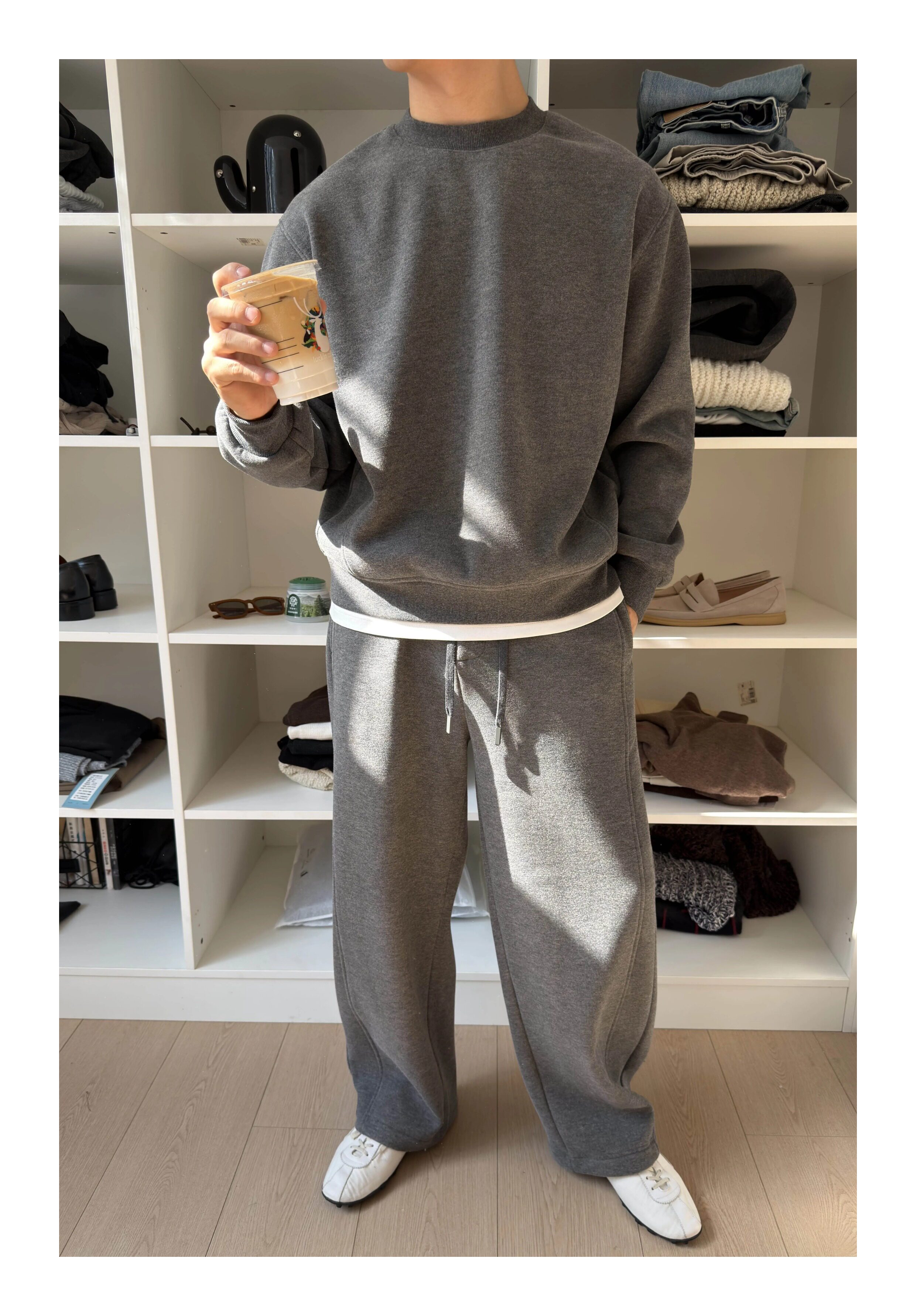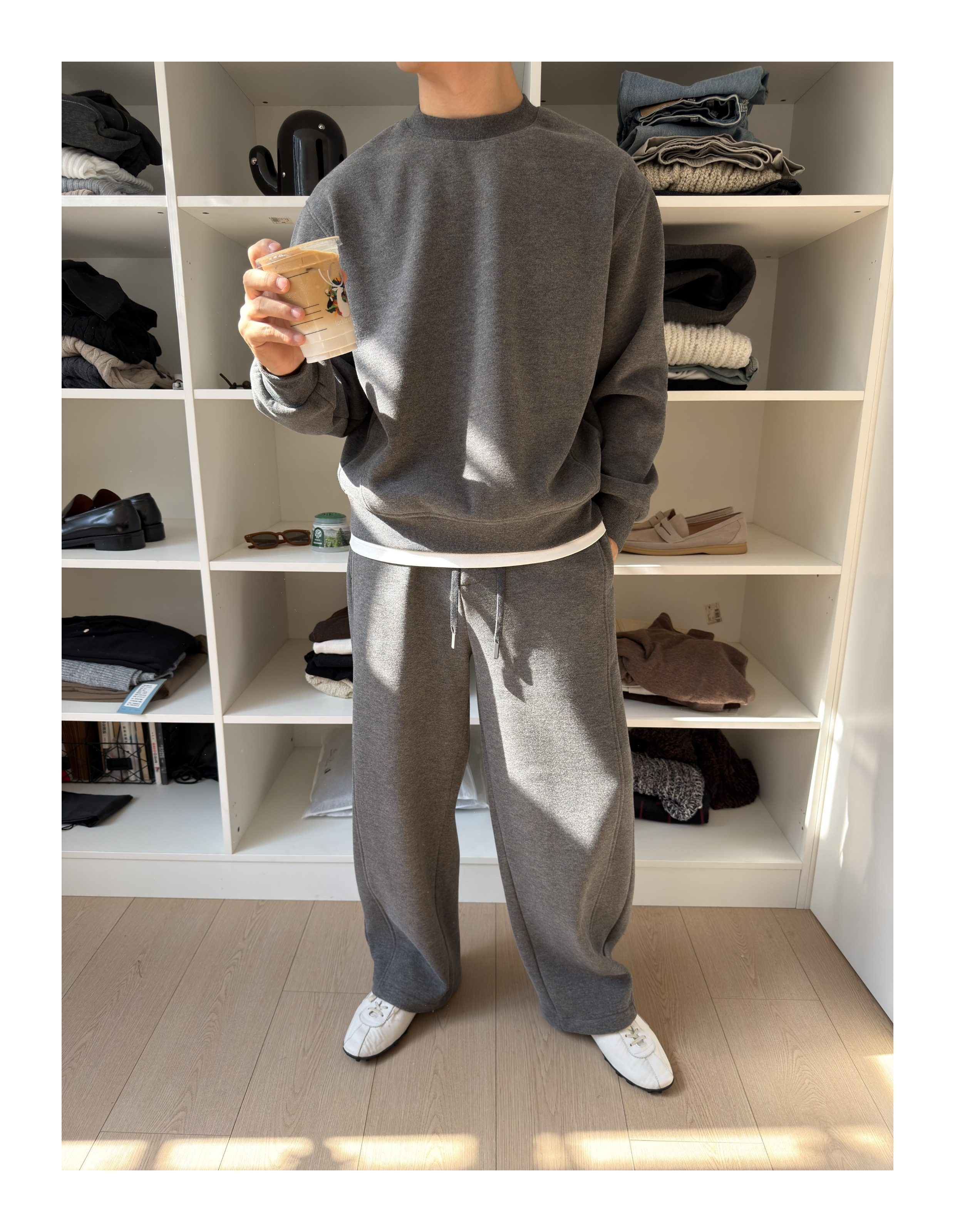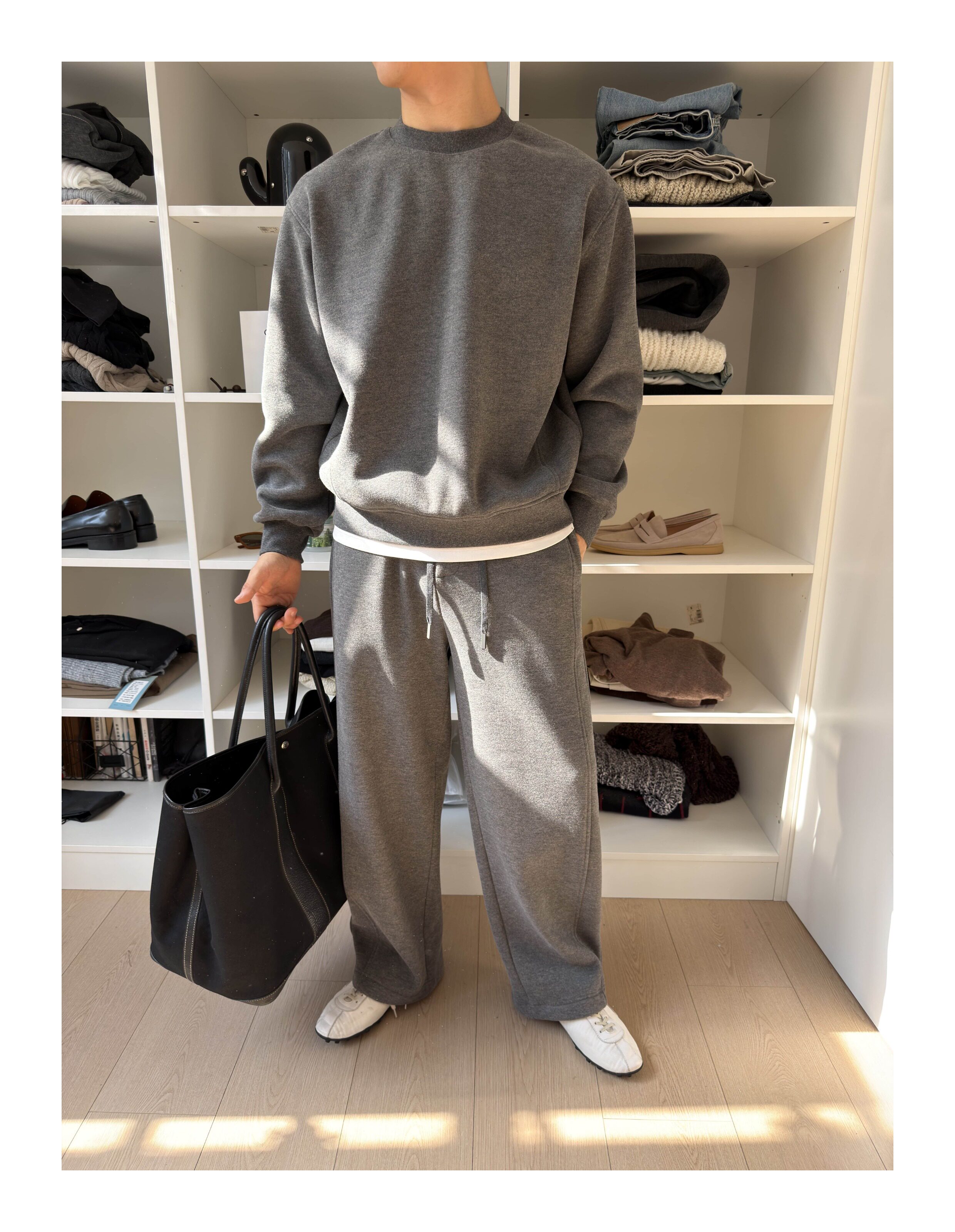 Zhuolinzhang Old Money Style Gray Easy-Care Sweatshirt Straight-Leg Pants Men's Heavyweight Autumn and Winter Fleece-Lined Warm Suit