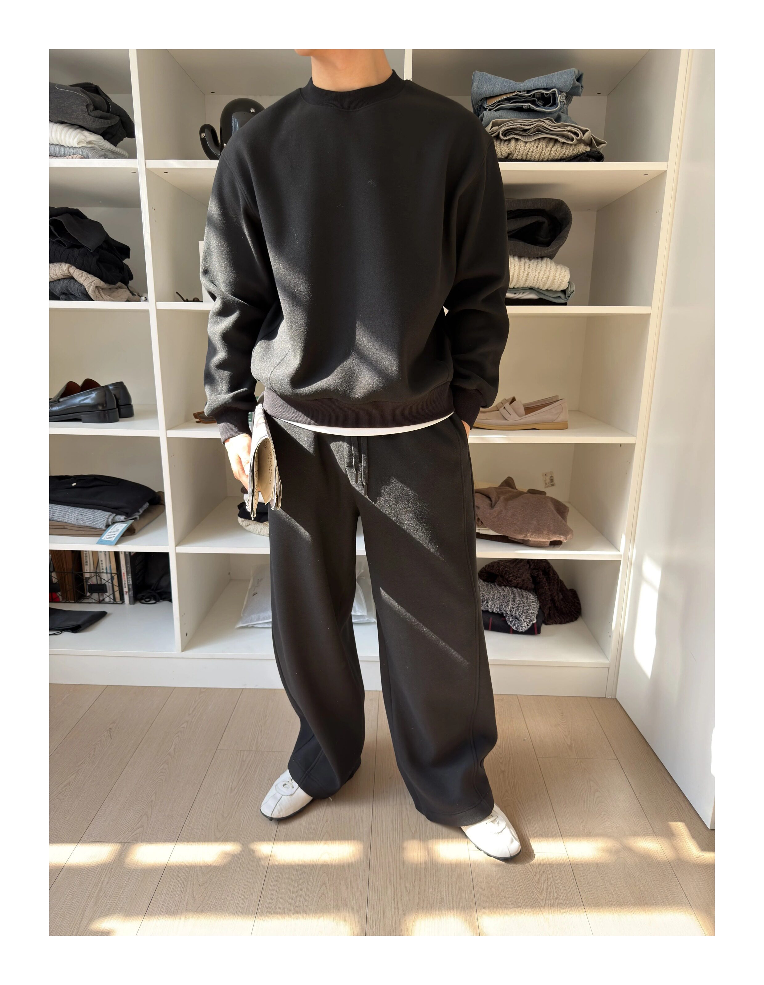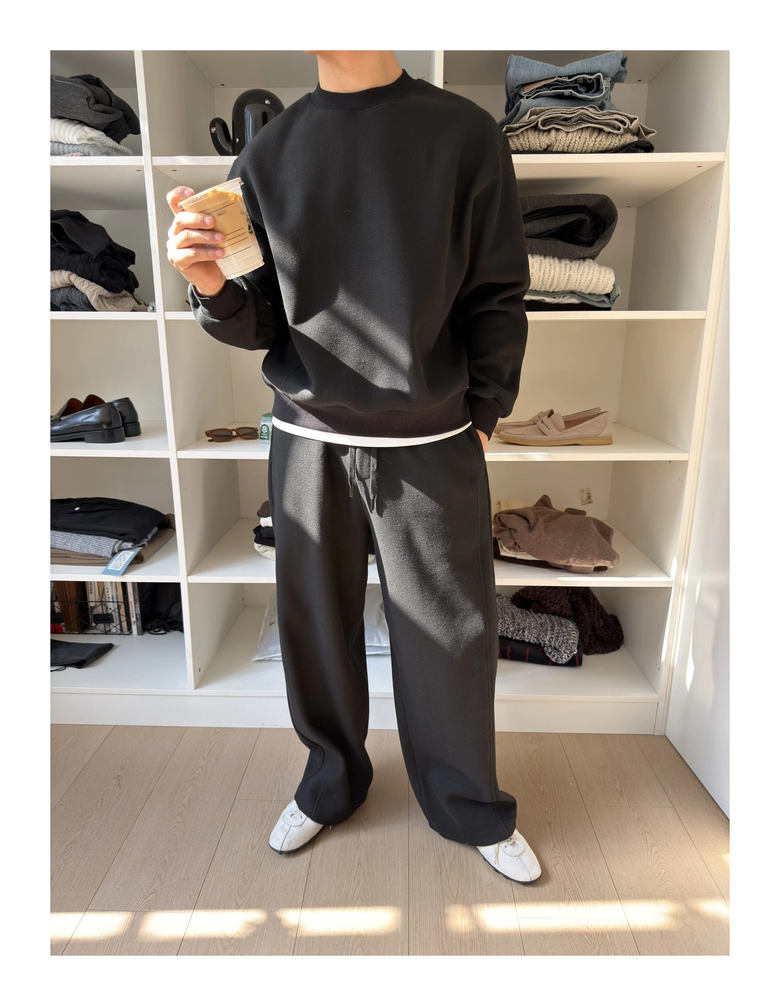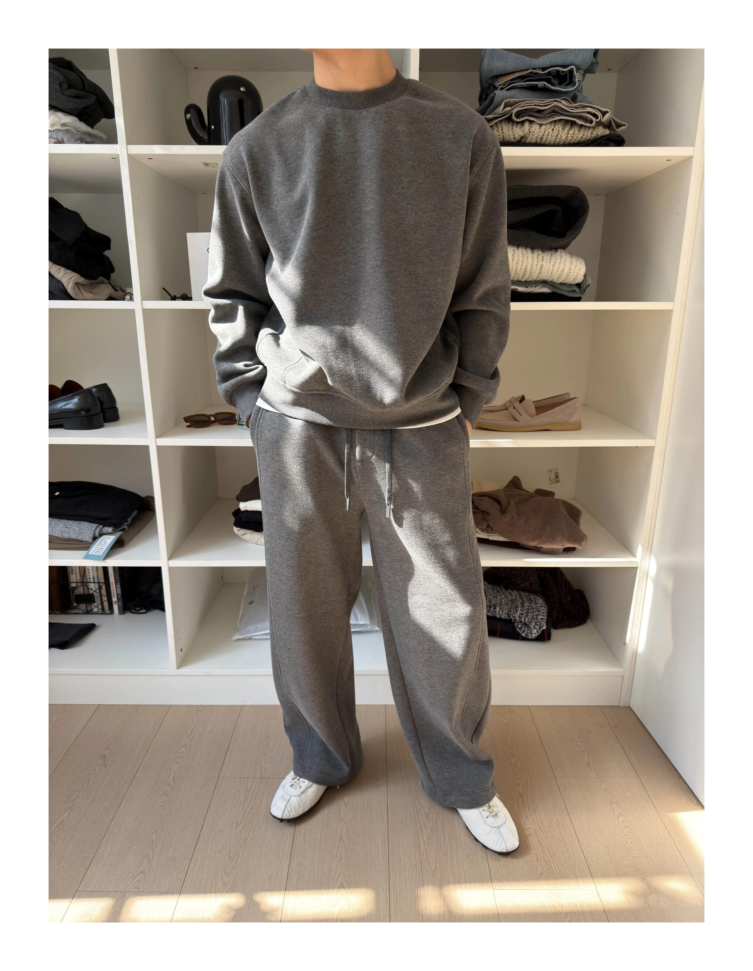 Zhuolinzhang Old Money Style Gray Easy-Care Sweatshirt Straight-Leg Pants Men's Heavyweight Autumn and Winter Fleece-Lined Warm Suit