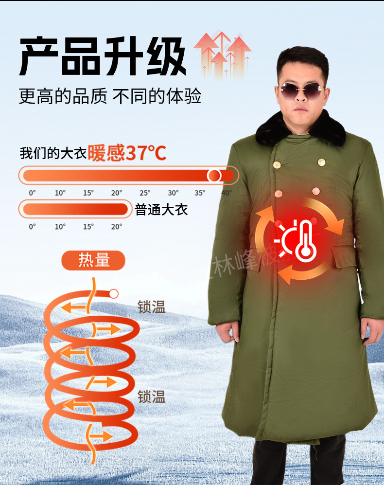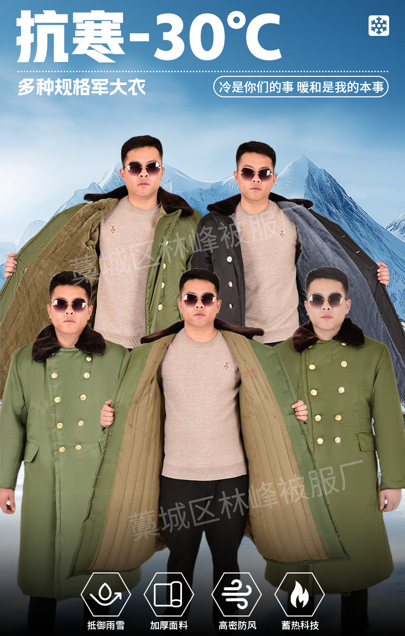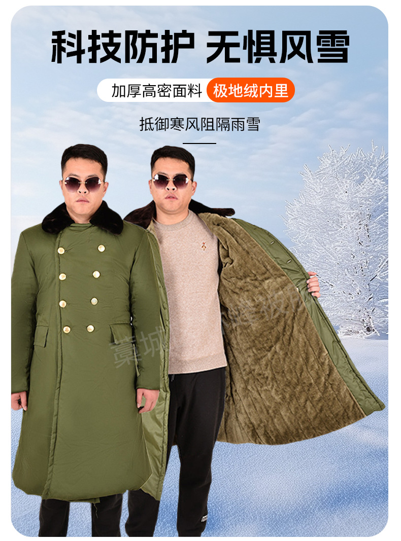 Military-Style Thickened Winter Coat, Cold-Resistant and Warm, Thickened for Winter, Windproof, Extended Length for Northeast, Outdoor Green Cotton Coat