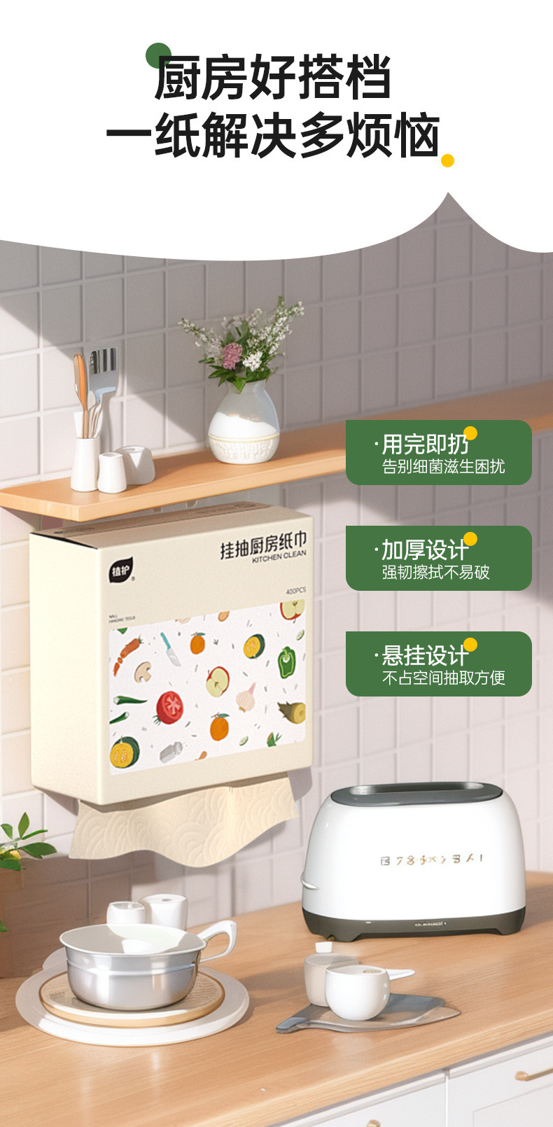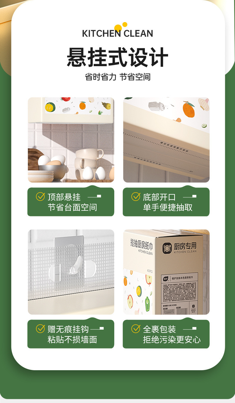 Plant-Based Hanging 400-Sheet Kitchen Paper Towel, Whole Box, 1 Pack, Pull-Out Type, Absorbent, Family Pack Kitchen Paper