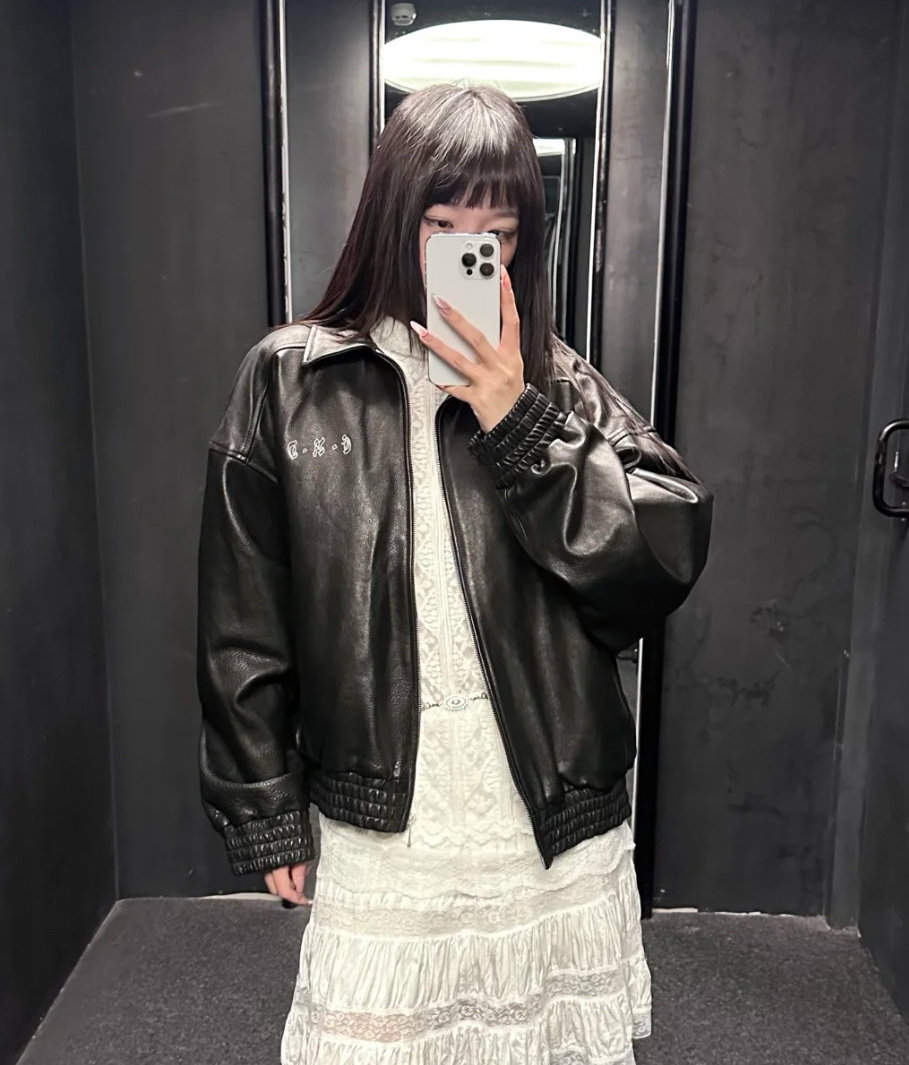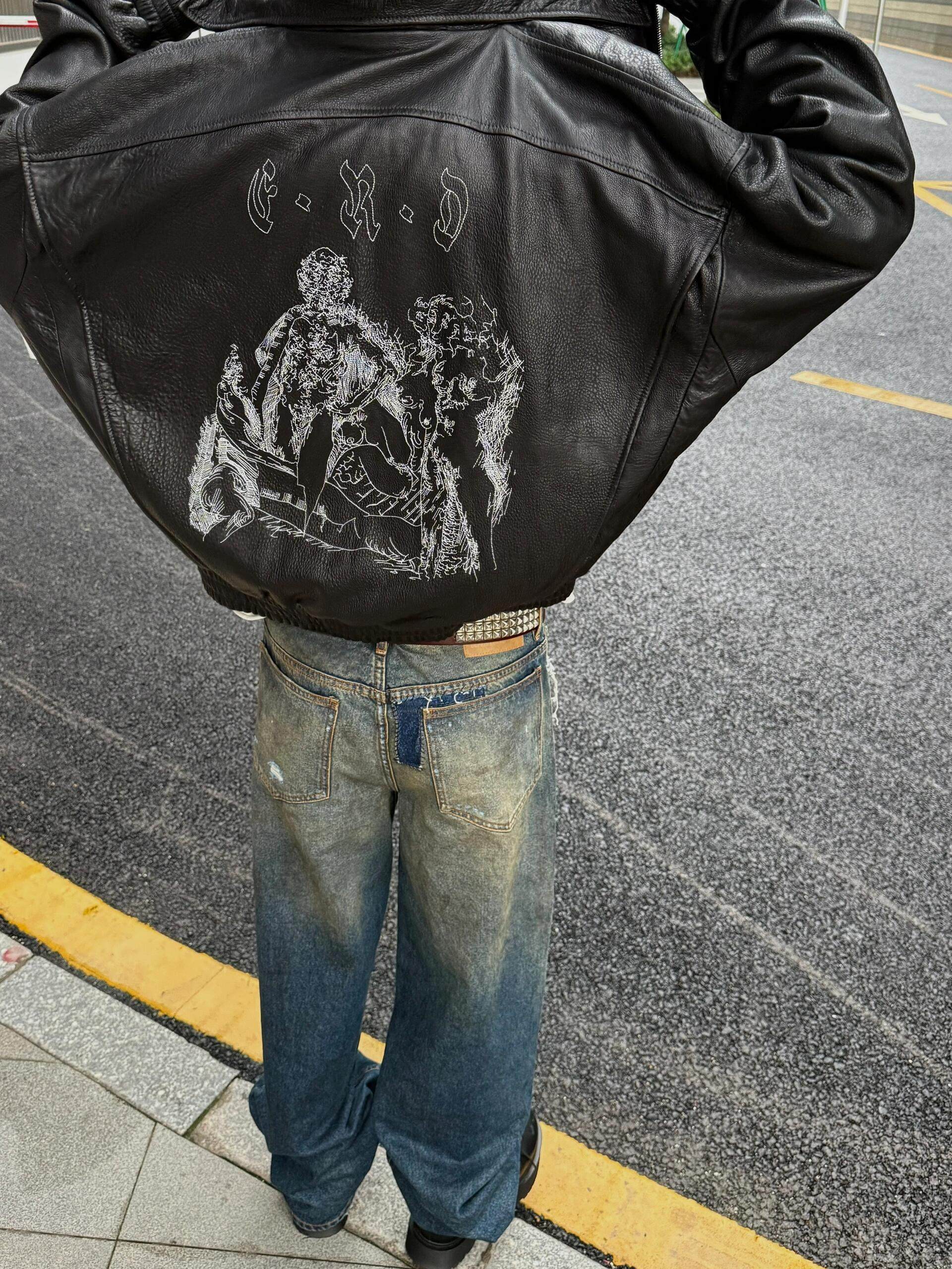 Erd's Melancholic Rich Second-Generation Painter's Wife's Lychee-Patterned Leather Jacket, American Casual Style, Washed and Distressed Coat