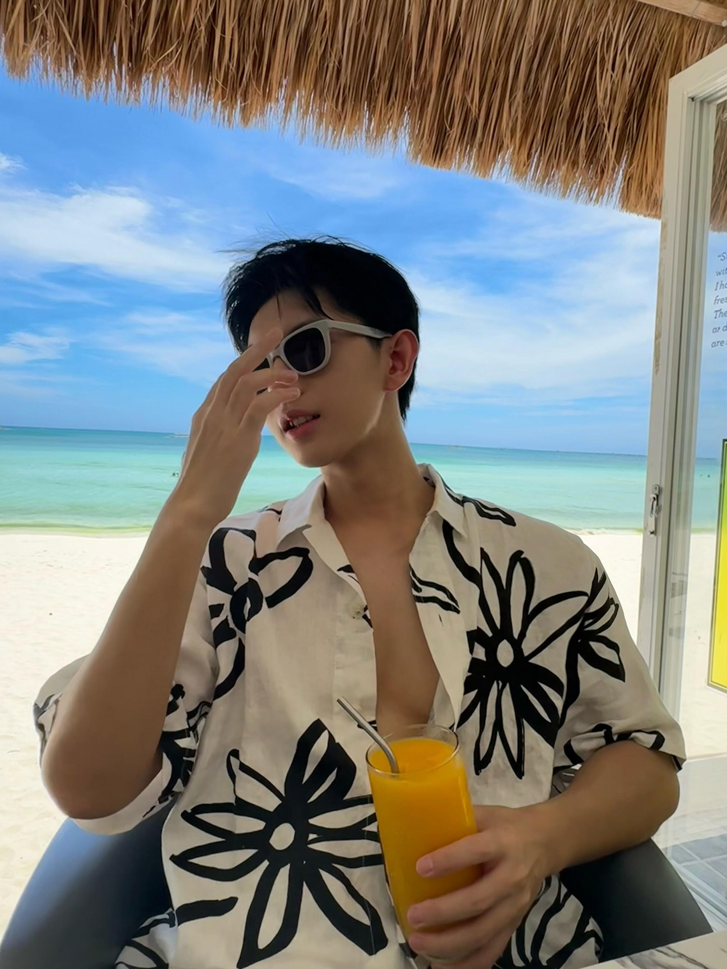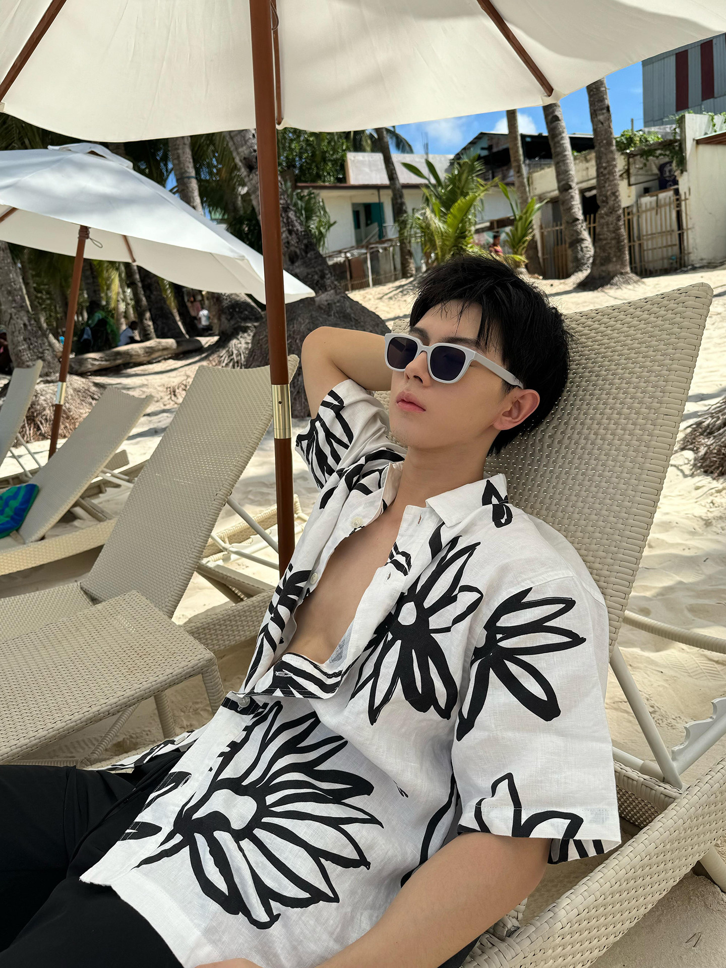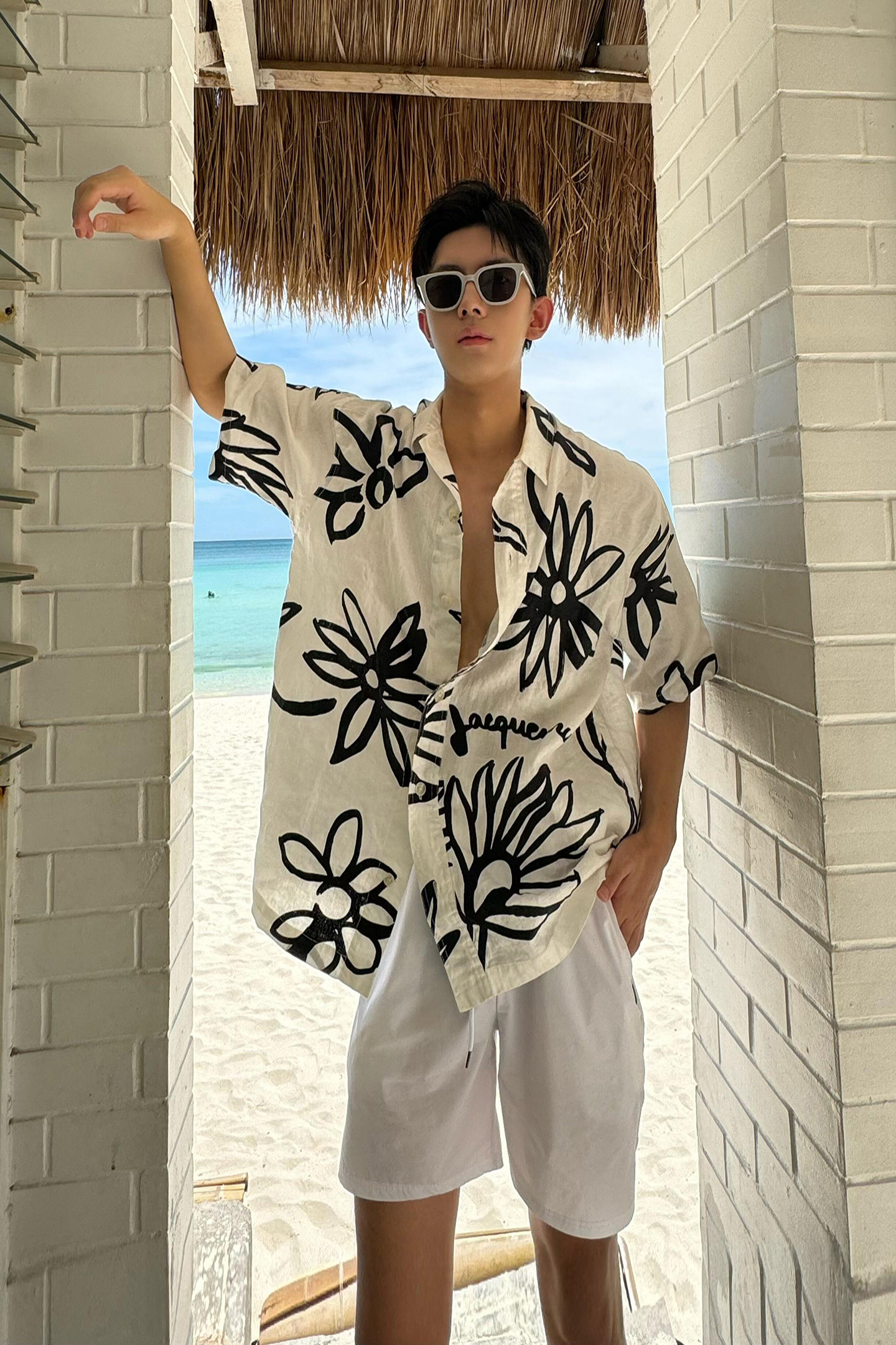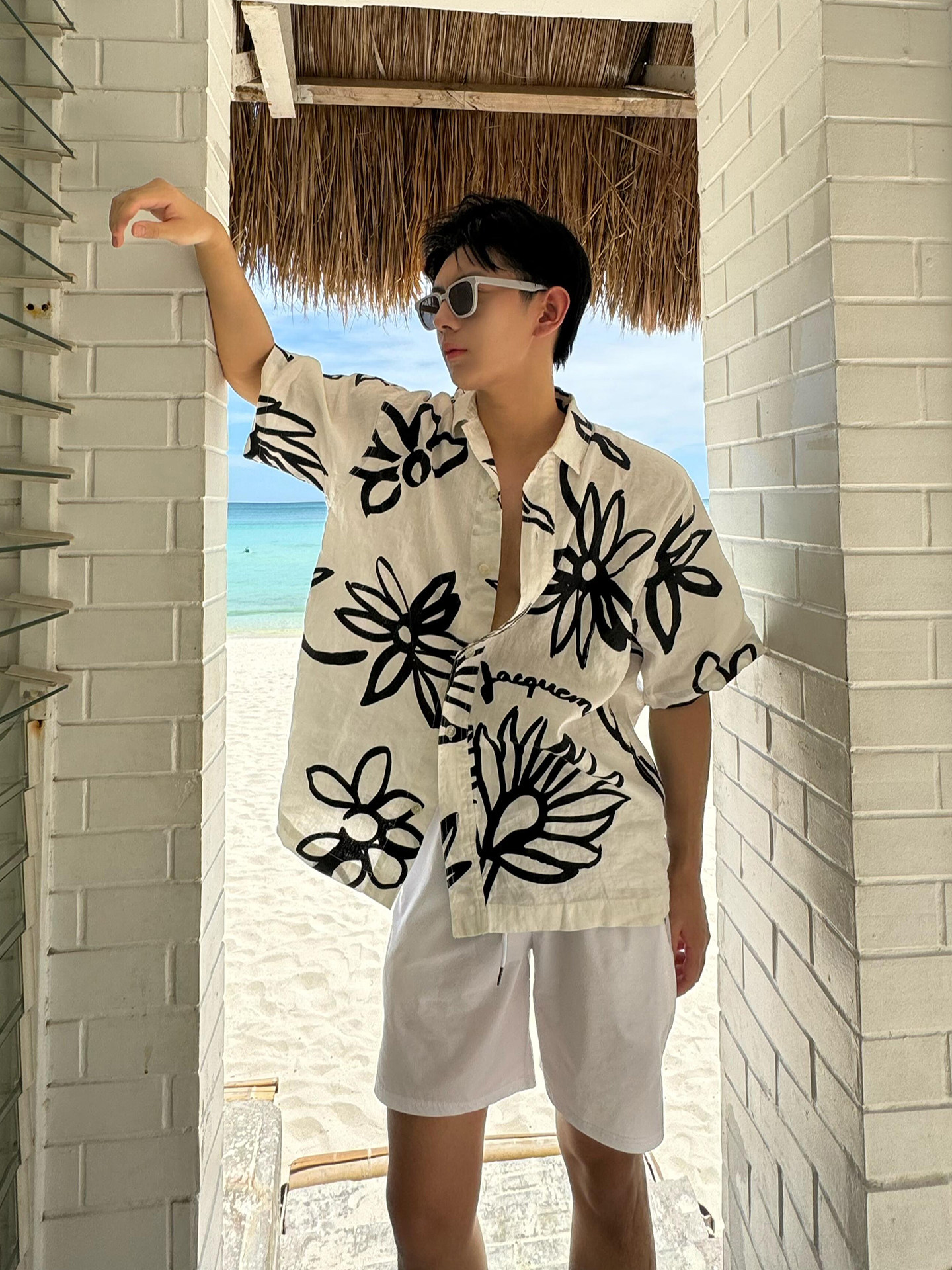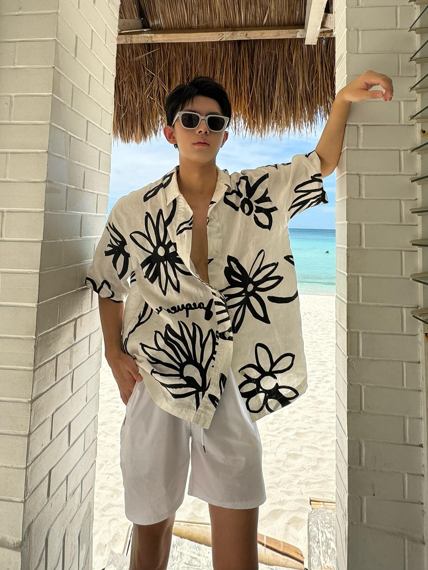 Beach Vacation Shirt with Cuban Collar, Floral Beach Shirt, Short-Sleeved Men's Spring and Summer Thai Sanya Outfit, Island Style Trendy Clothing