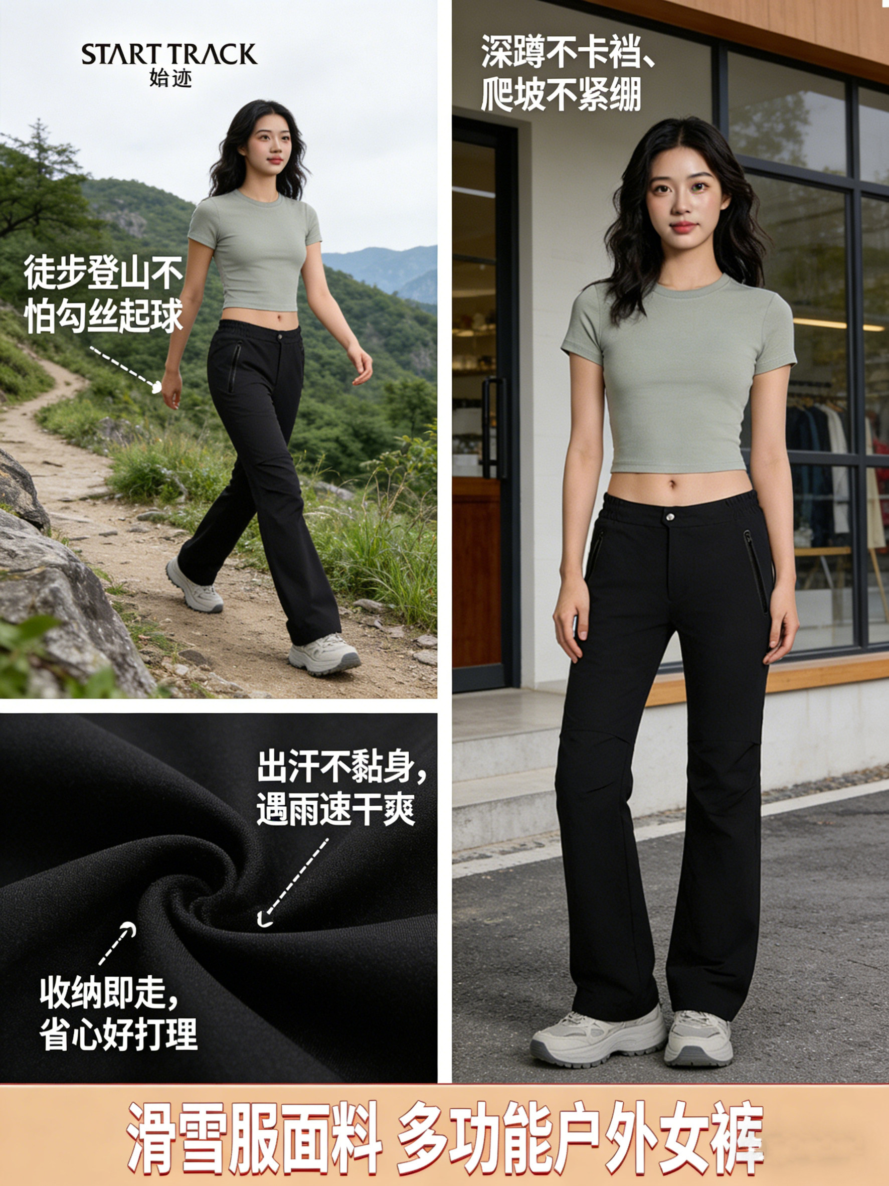 Women's Waterproof and Windproof Outdoor Hiking Pants, Winter Flared Black Cargo Pants, Fleece-Lined Hardshell White Pants