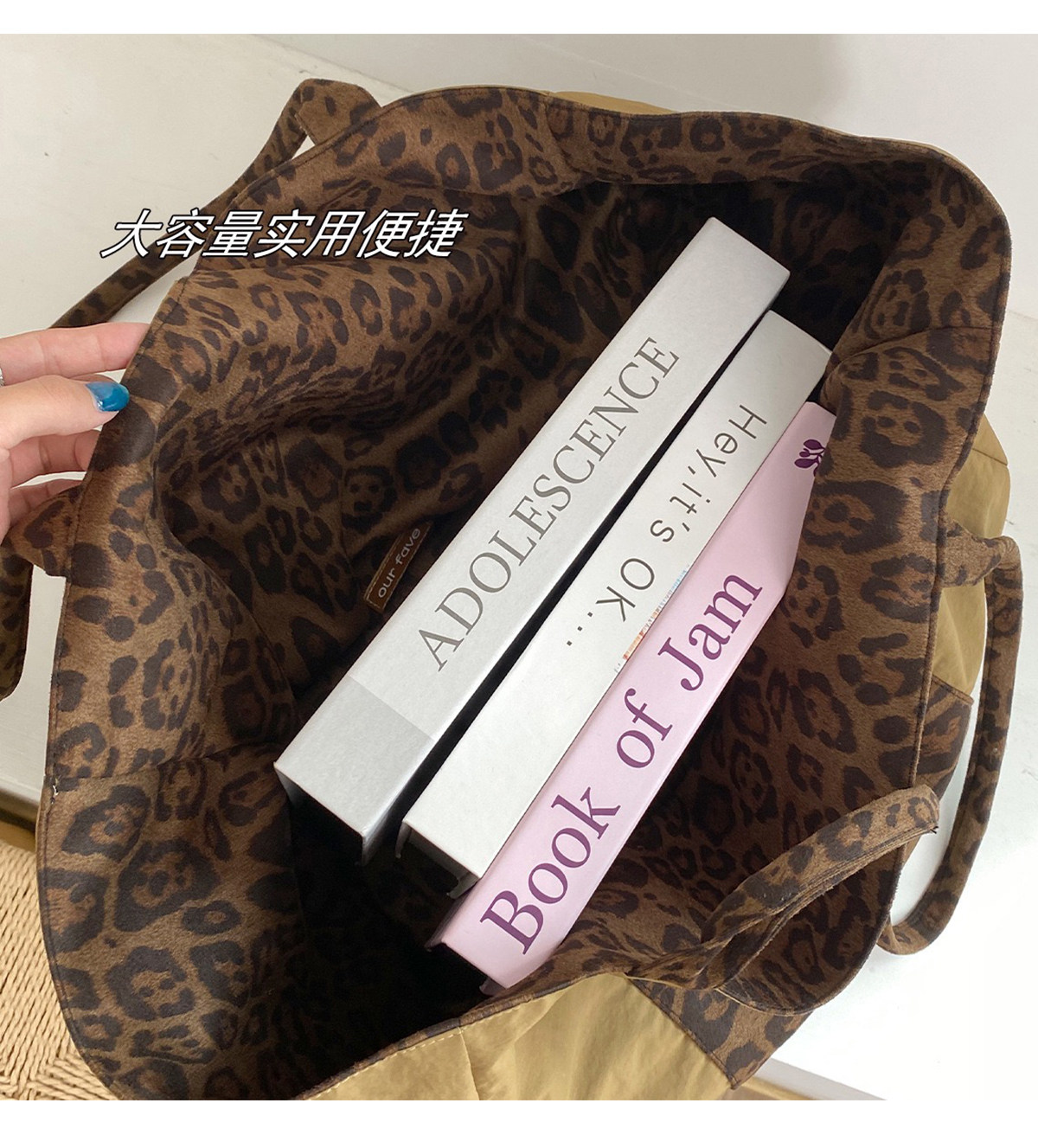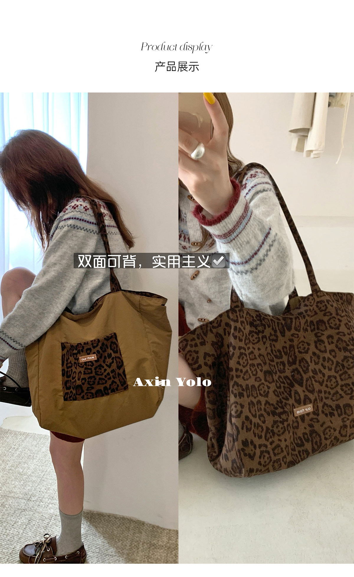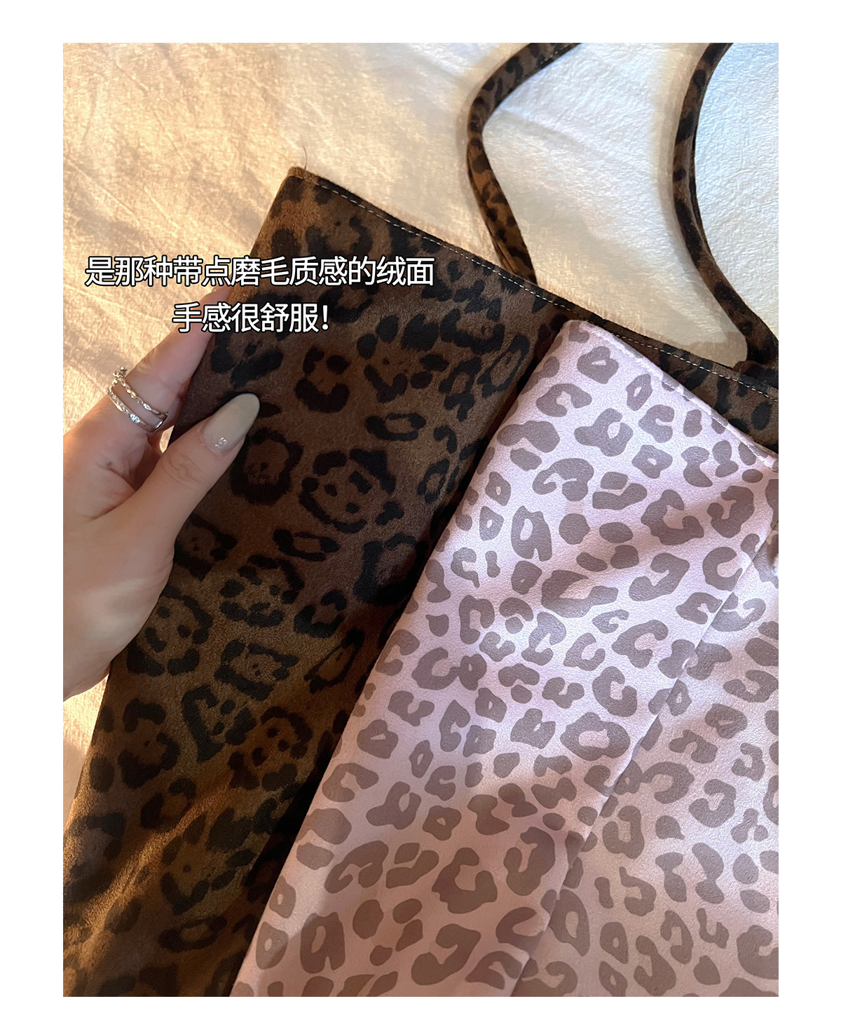 Suitable for All Seasons! Suede Leopard Print Multi-Color Sweet and Cool Pink Commuter Large-Capacity Double-Sided Tote Canvas Bag
