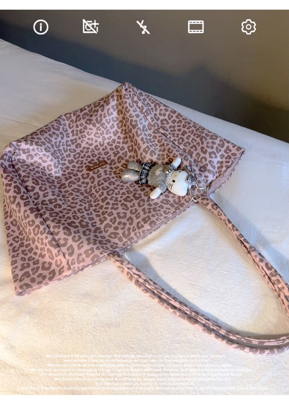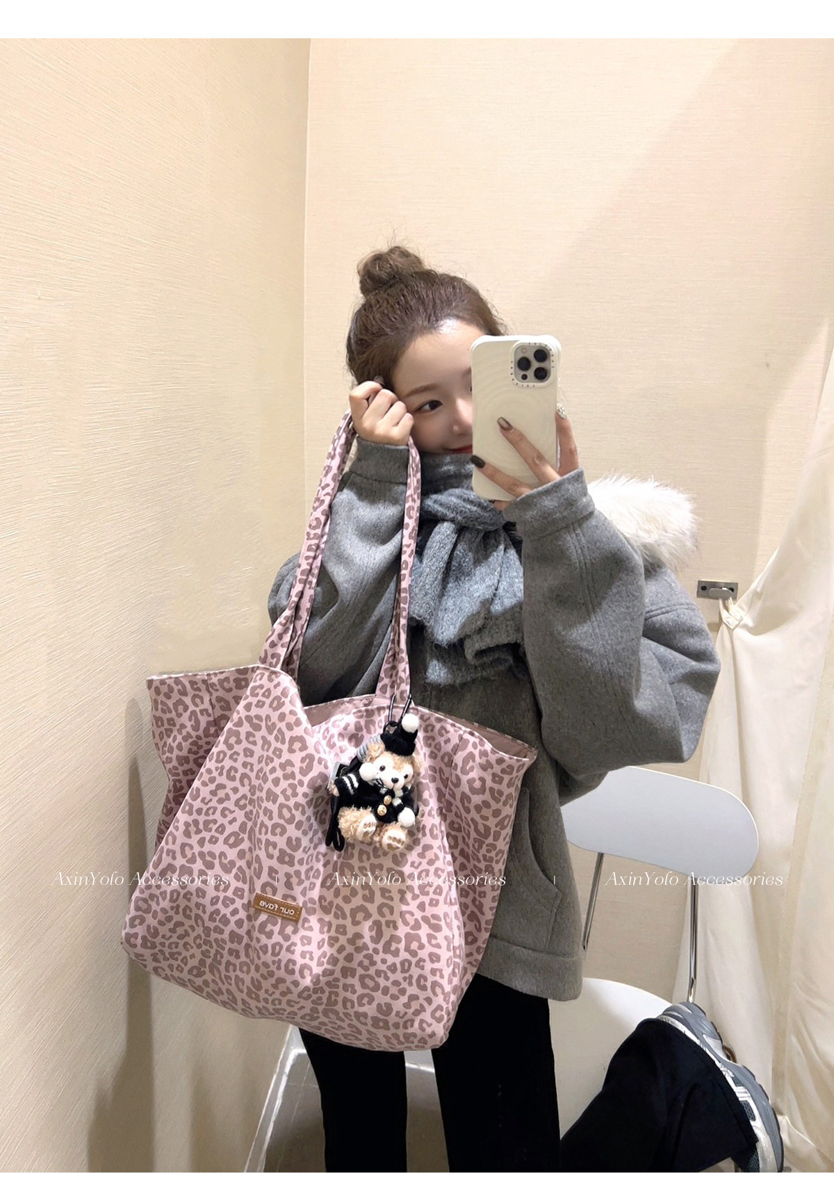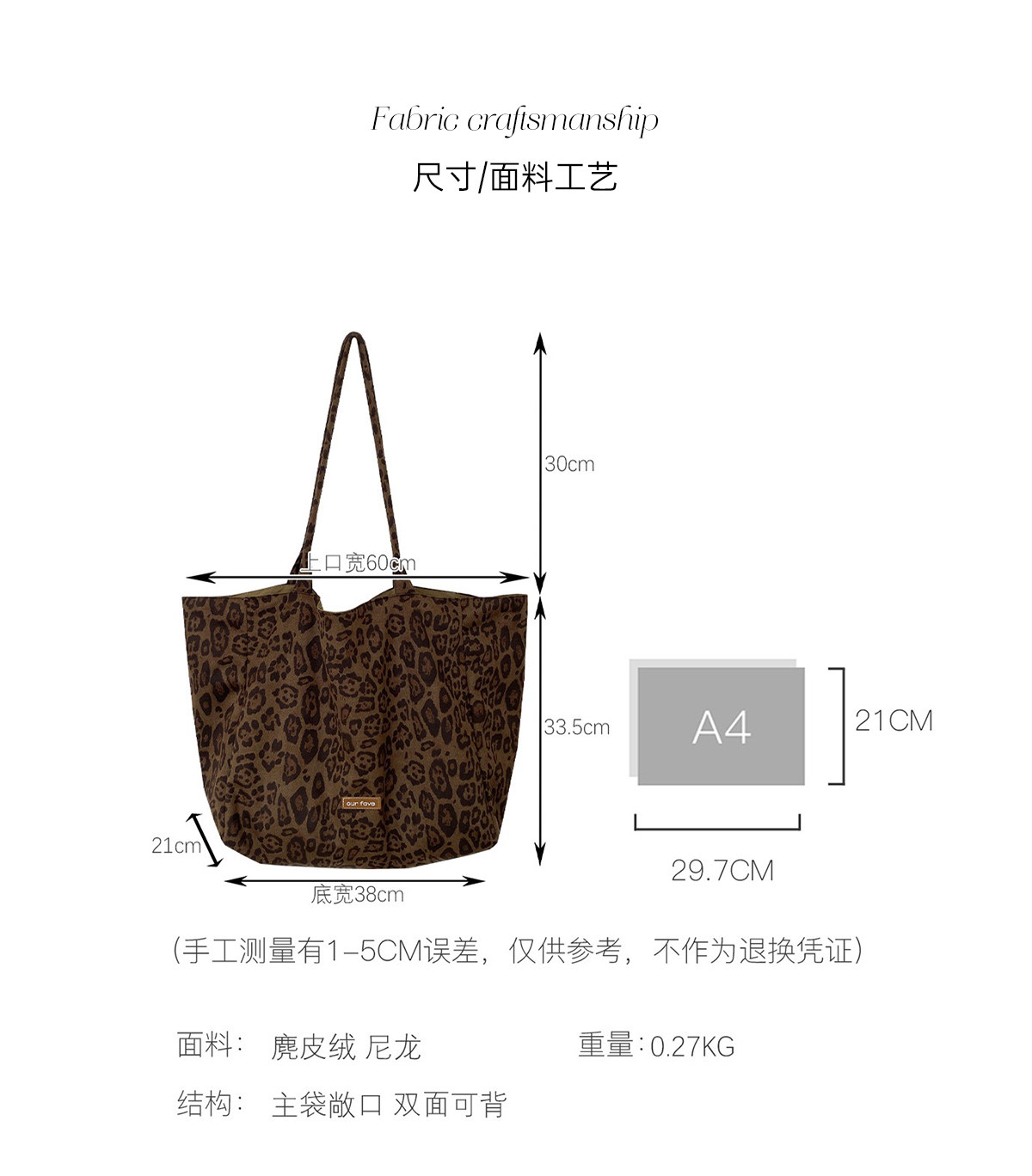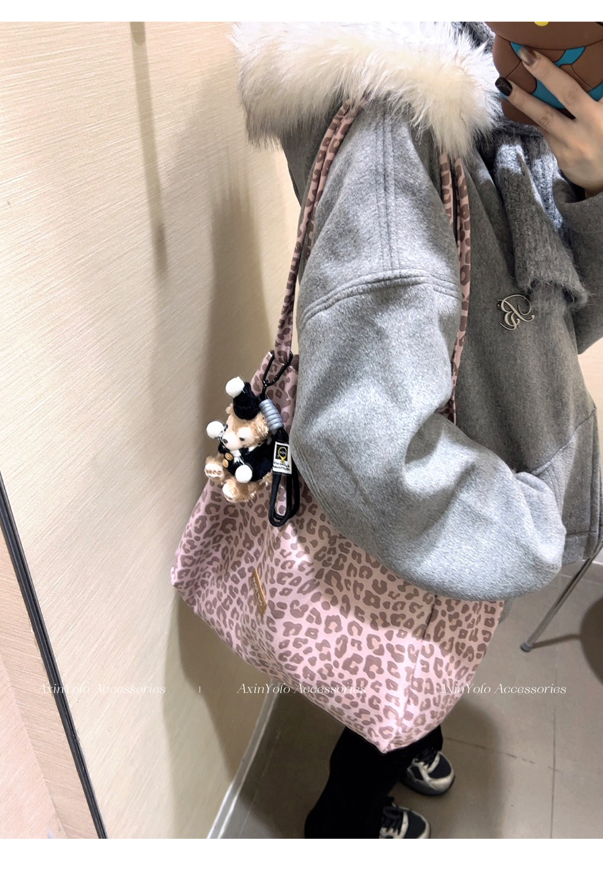 Suitable for All Seasons! Suede Leopard Print Multi-Color Sweet and Cool Pink Commuter Large-Capacity Double-Sided Tote Canvas Bag