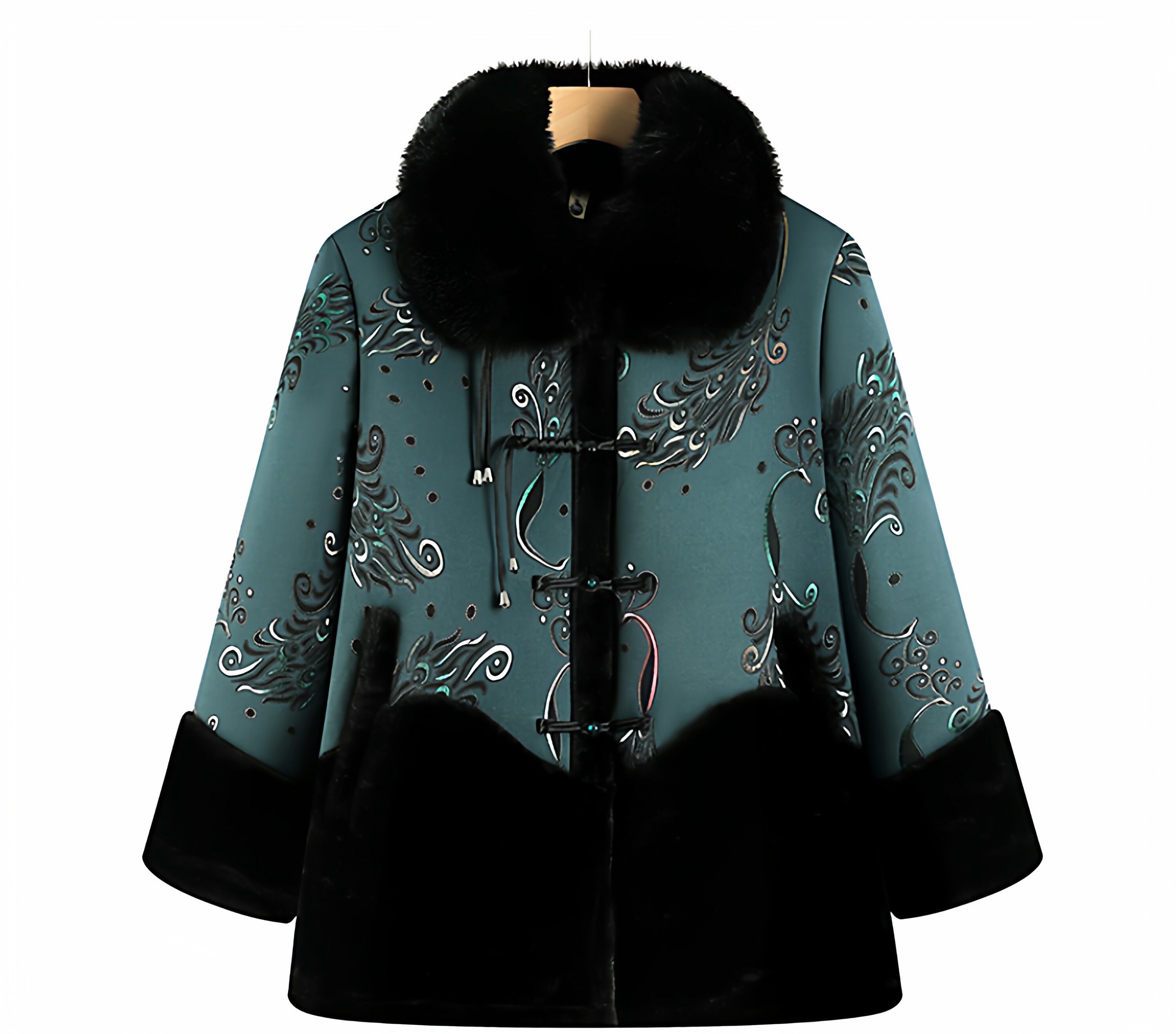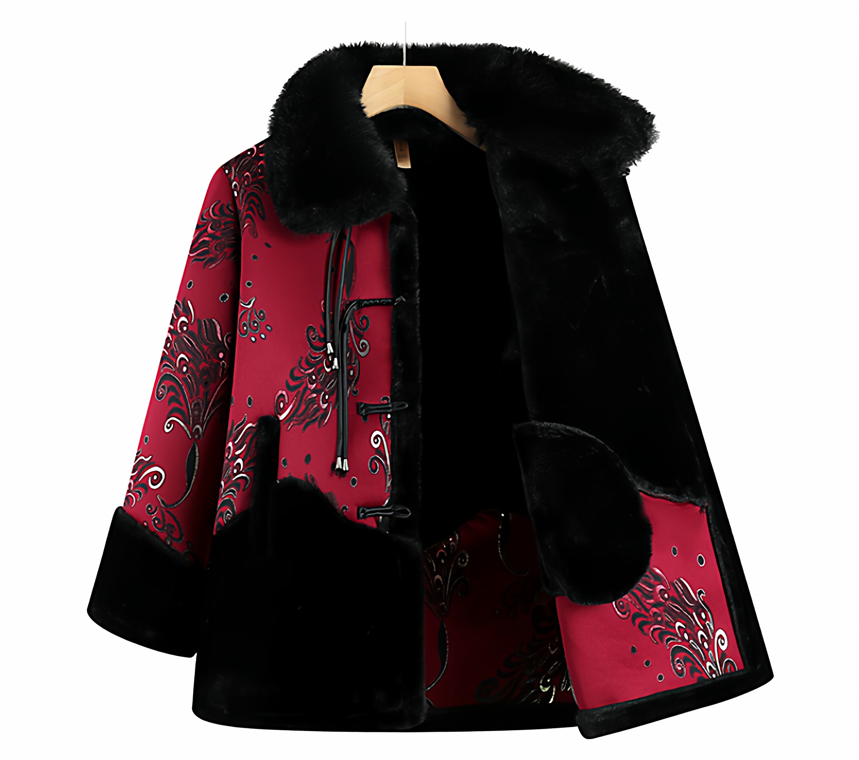 Trendy Winter Clothing for Mothers, New Chinese Style, Traditional Chinese Style, Middle-Aged and Elderly Women's Clothing, Grandma's Winter Faux Fur Coat, Thick Fleece-Lined Jacket