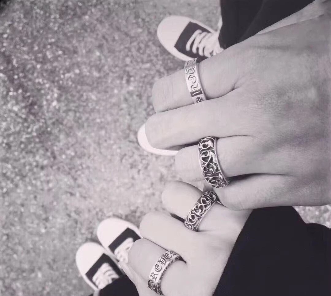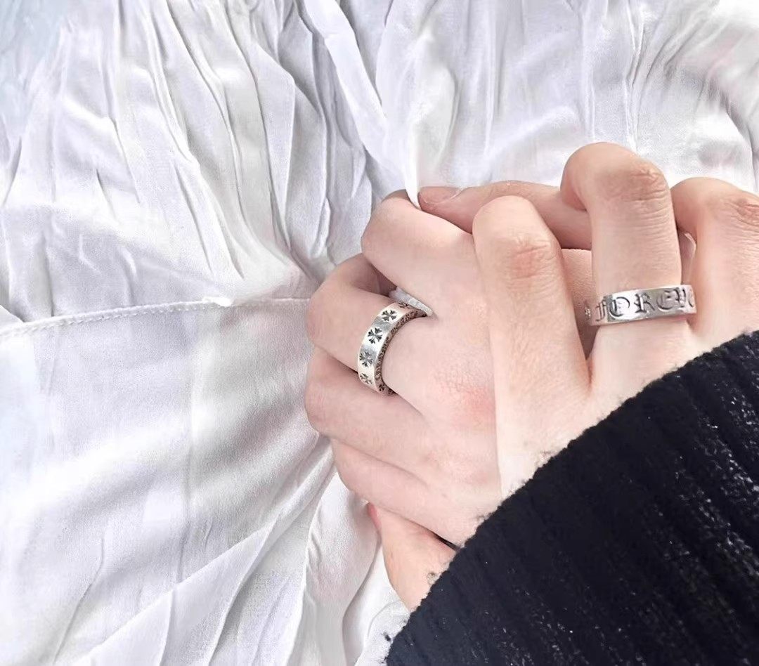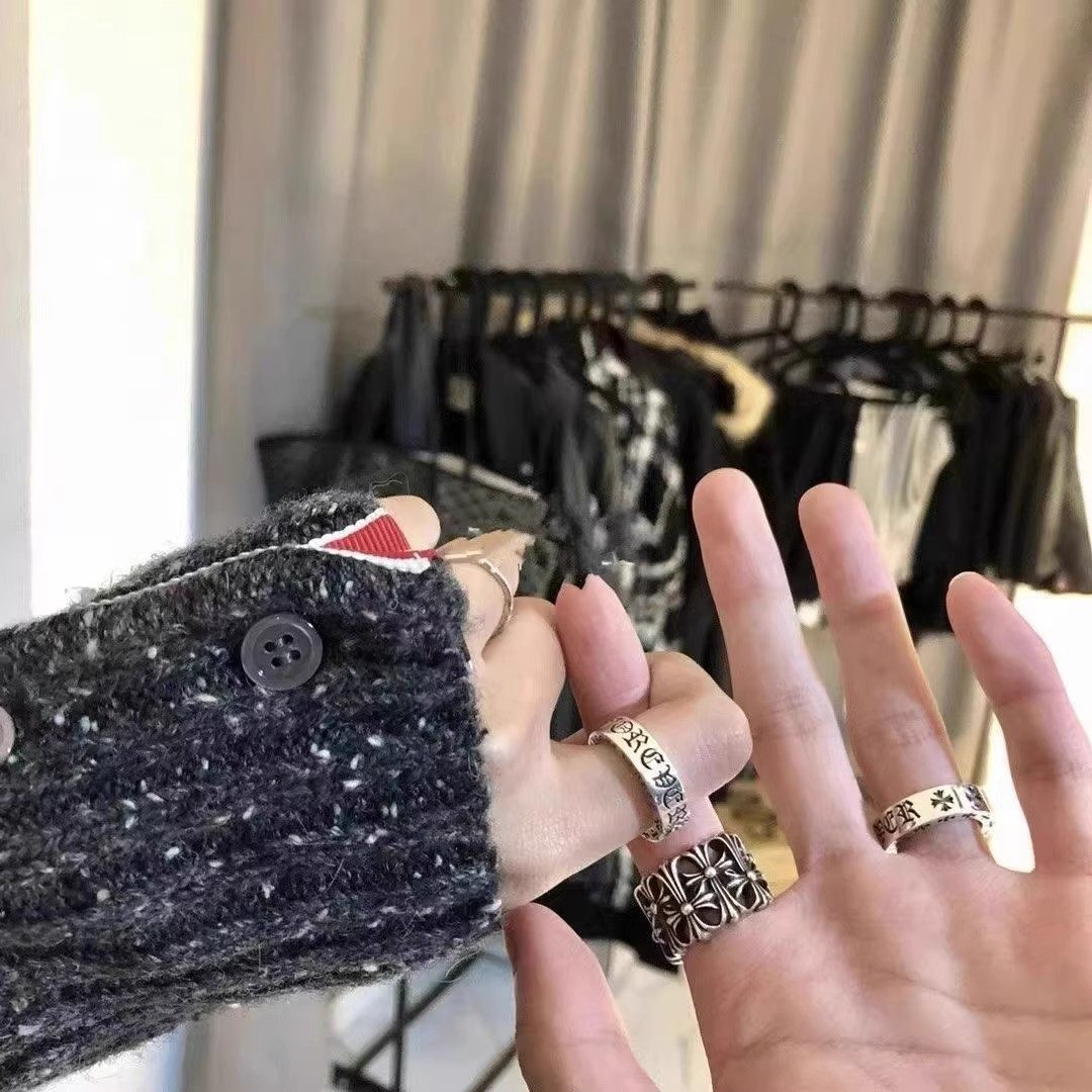 Vintage Eight Gram Trendy Brand 925 Sterling Silver Forever Heart Ring Couple Rings Punk Cross Flower with Diamonds Men's Style