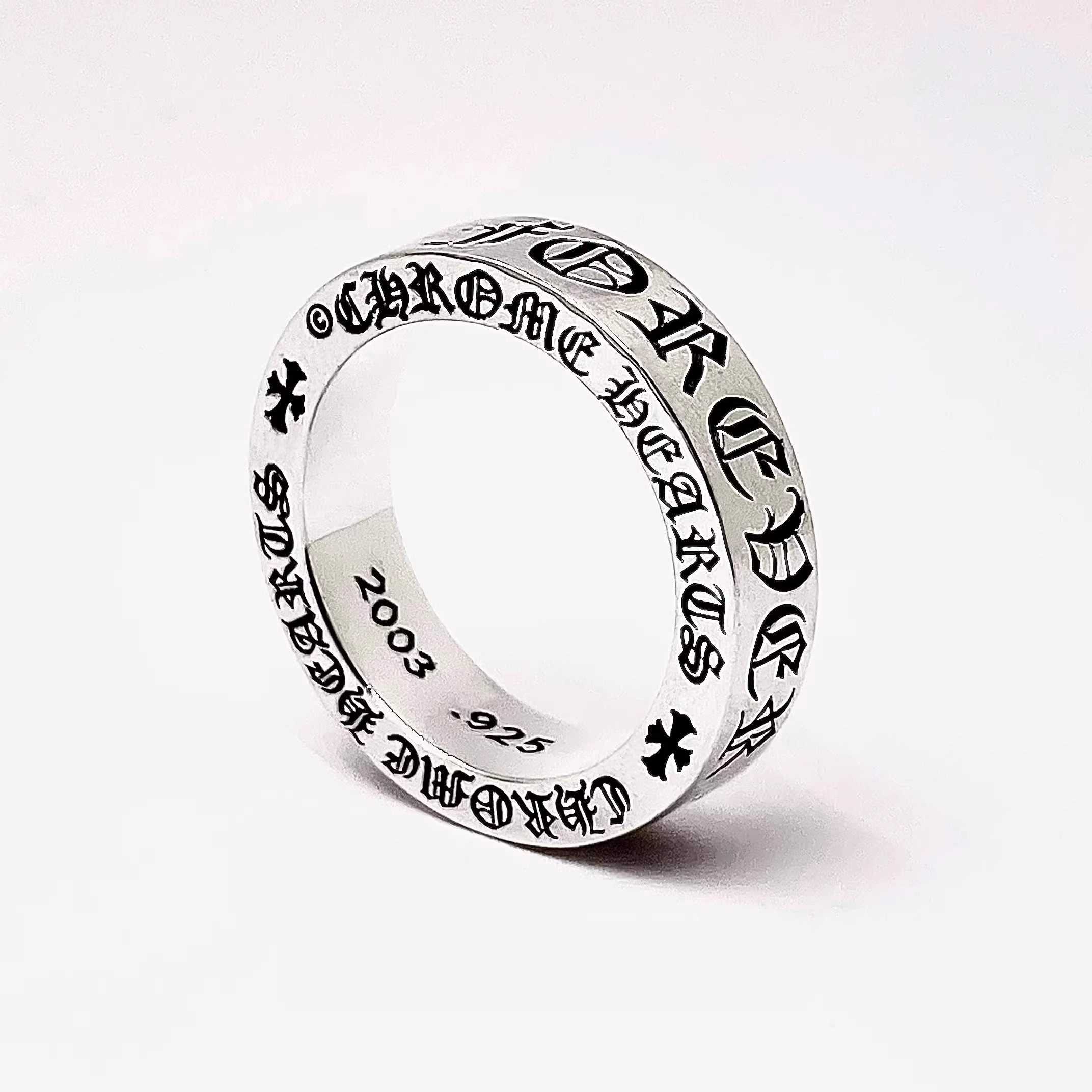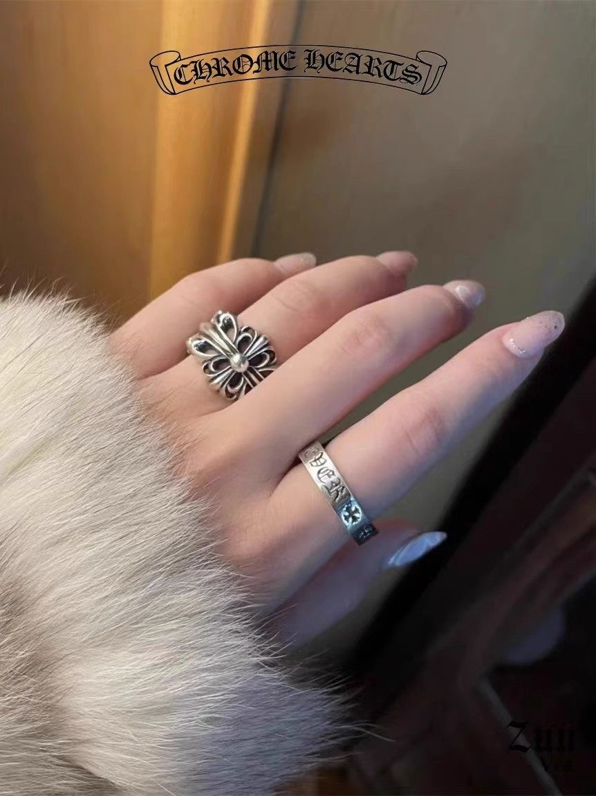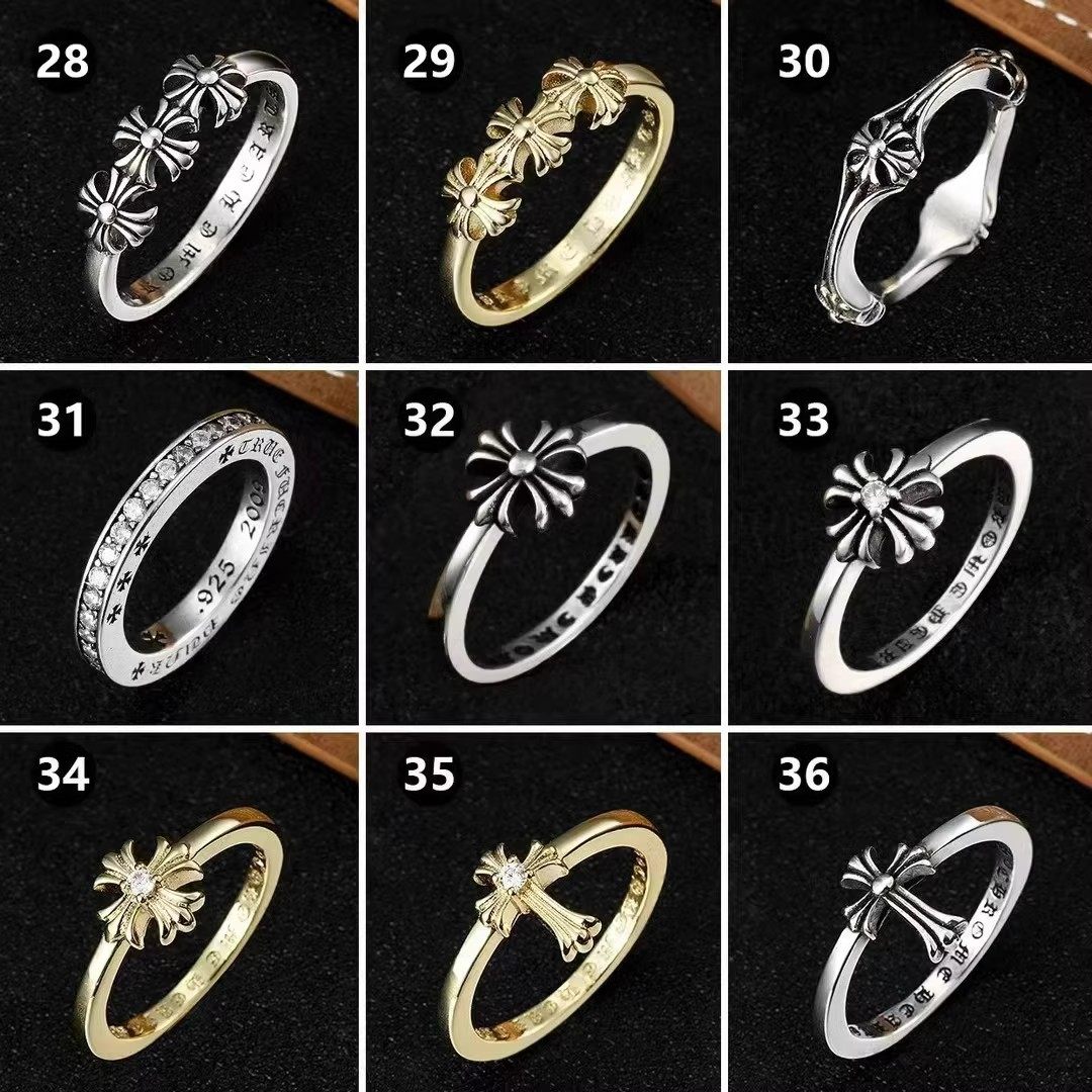 Vintage Eight Gram Trendy Brand 925 Sterling Silver Forever Heart Ring Couple Rings Punk Cross Flower with Diamonds Men's Style