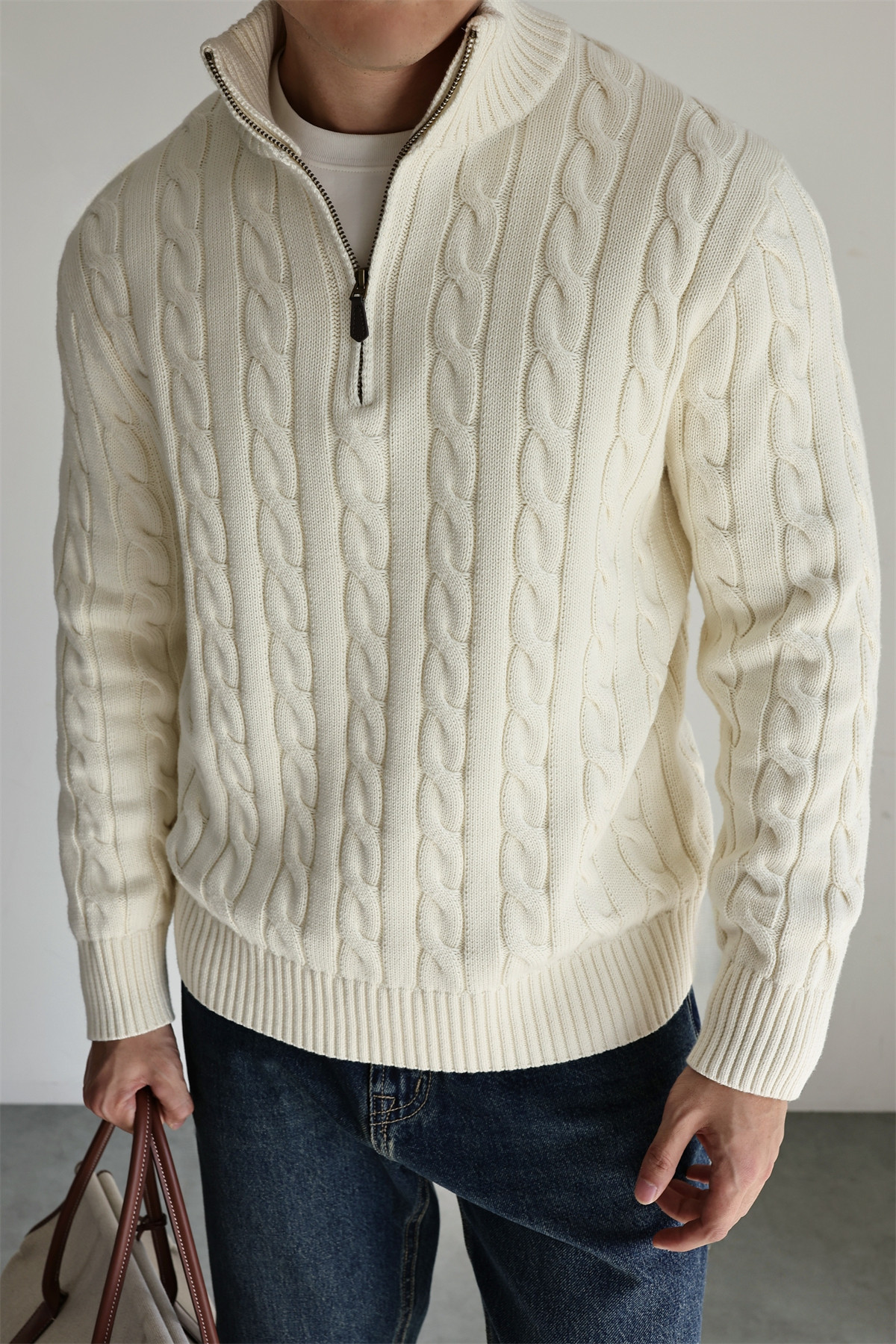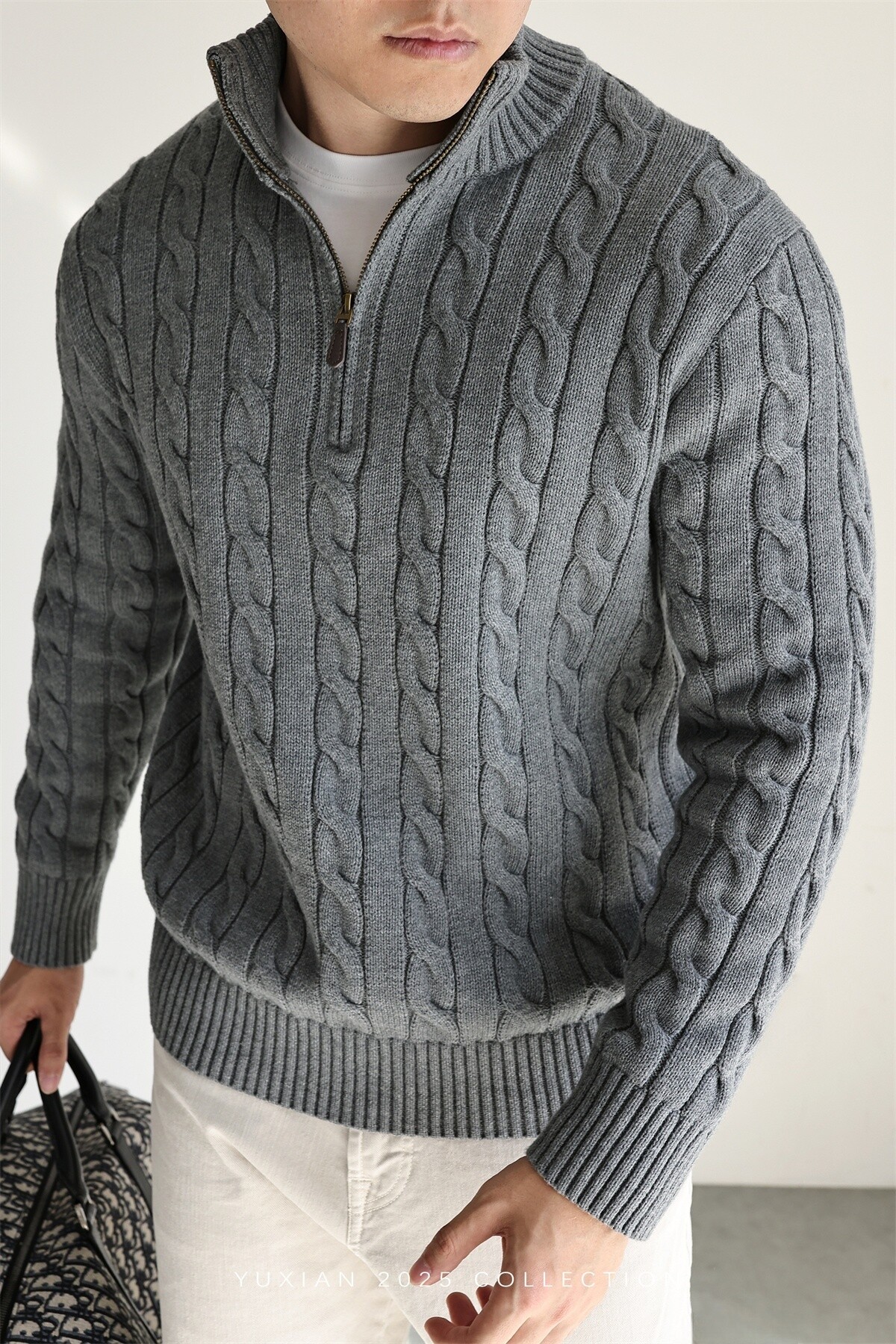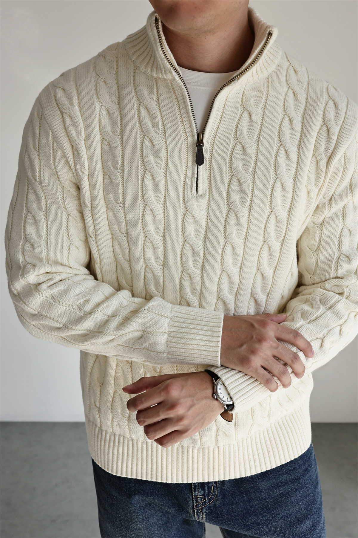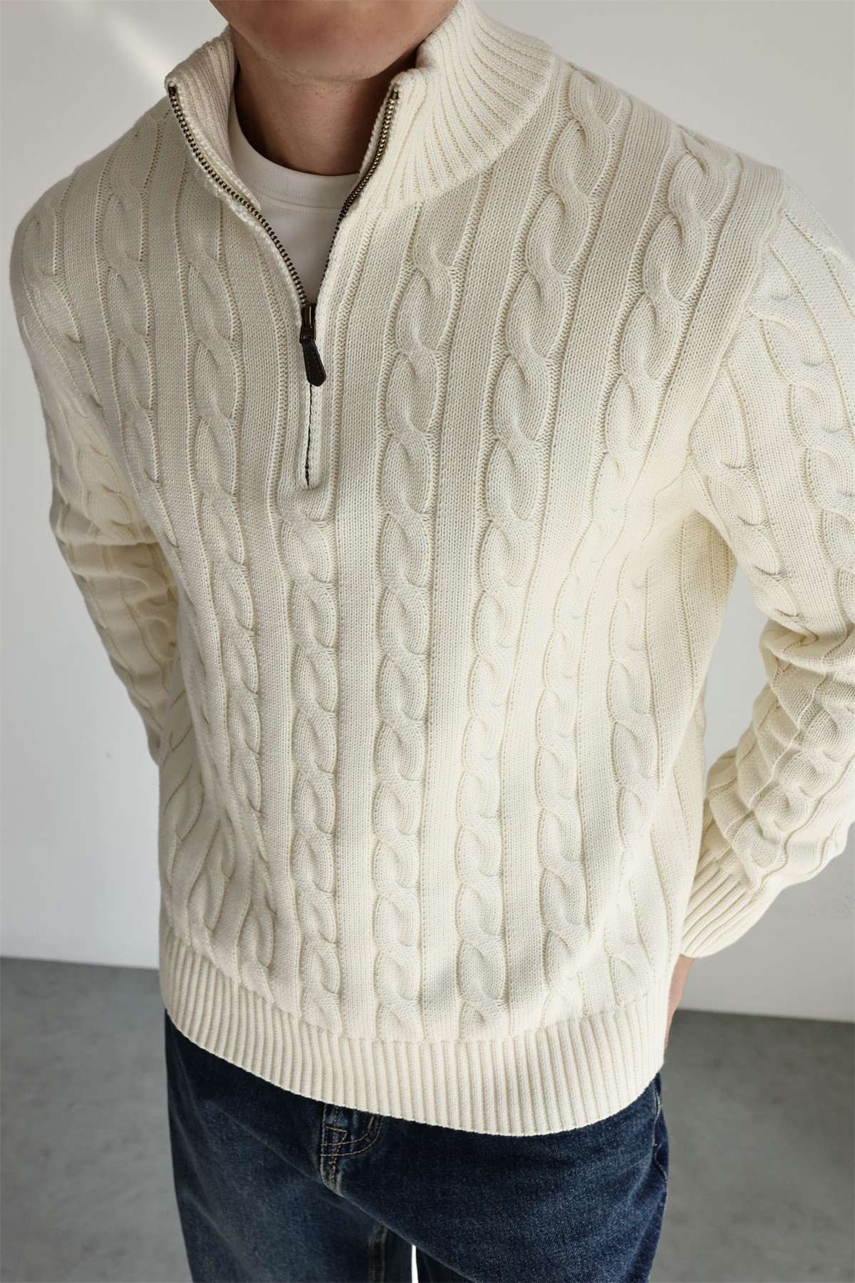 Yuxian Italian Style 100% Combed Cotton Vintage Button Half-Zip Knit Long-Sleeve Pure Cotton Sweater Vintage Autumn and Winter Men's